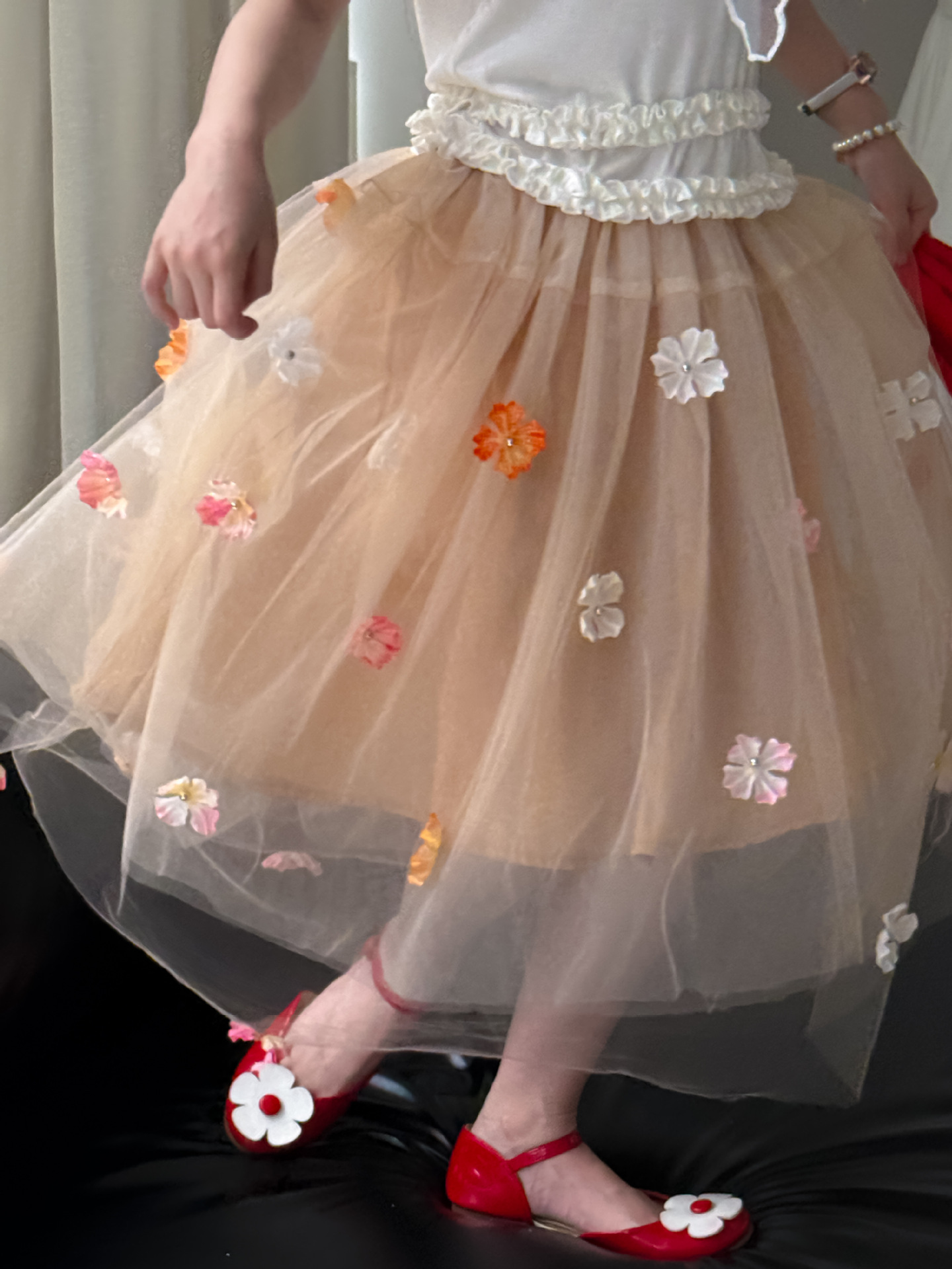 어린이 치마 2025 여름 새 소녀 달콤한 3 차원 꽃 베일 치마 소녀 치마 요정 공주 치마스토어 가기
