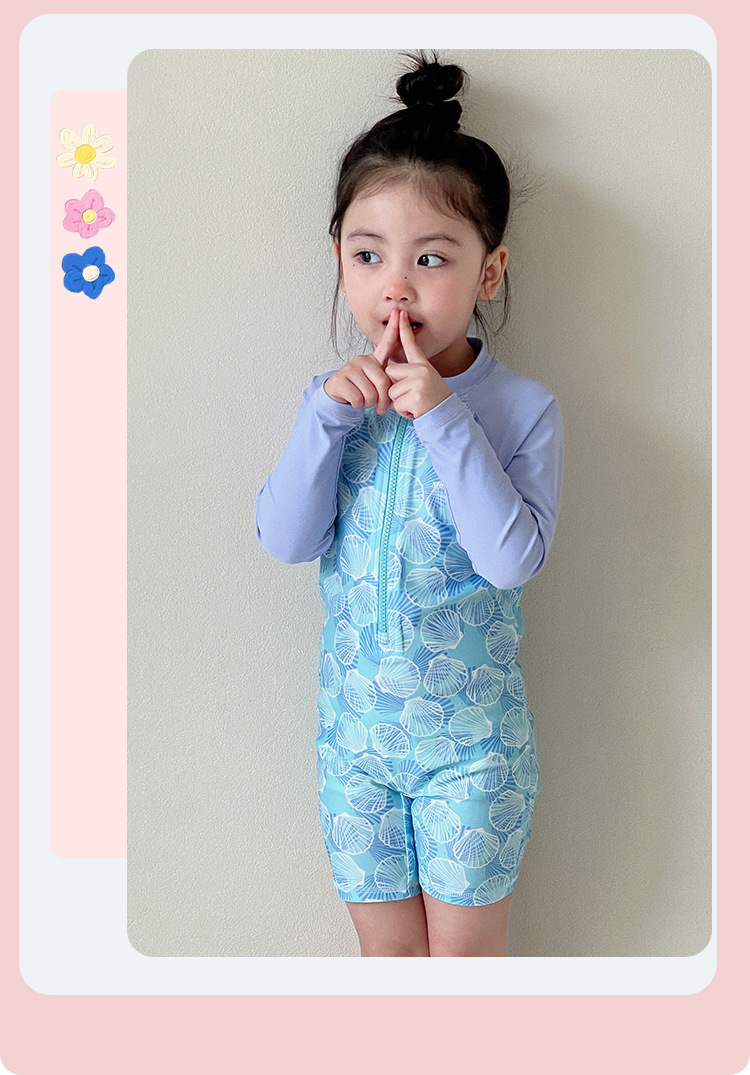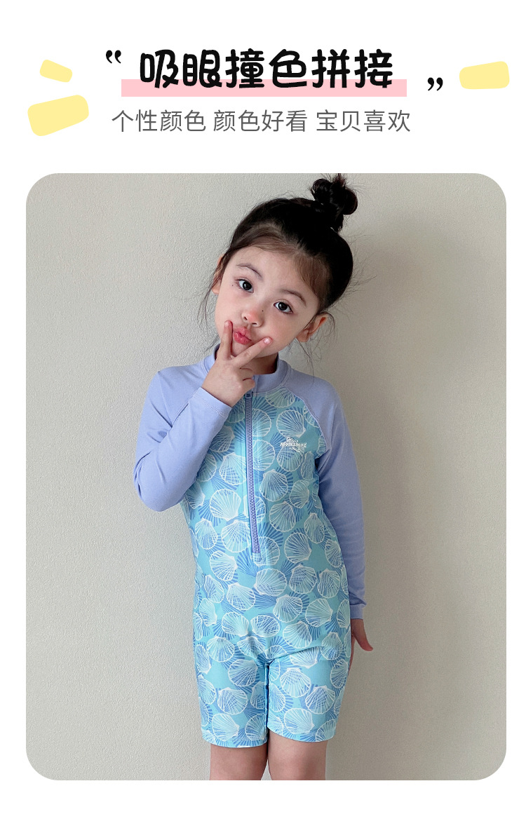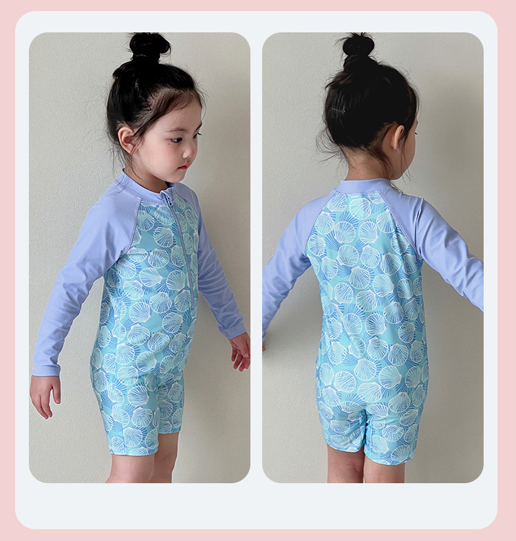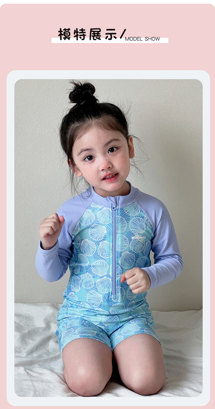 새 어린이 수영복 중형 어린이 긴팔 수영복 투피스 아기 수영복 귀여운 선스크린 수영복스토어 가기