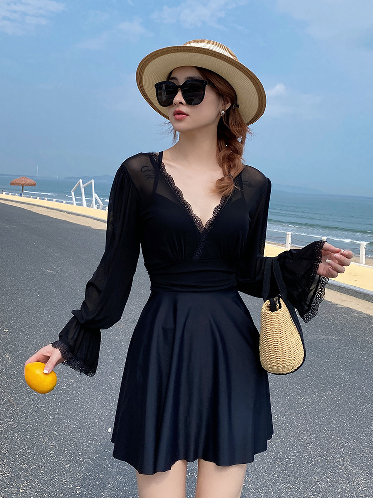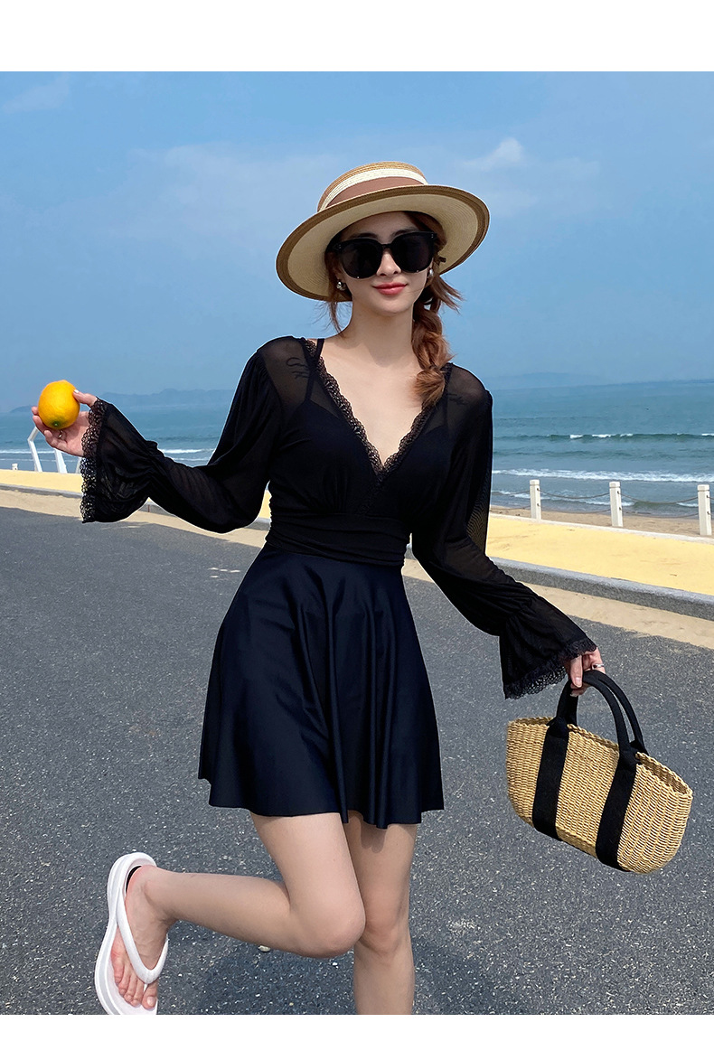 2024 태국 수영복 여성용 여름 슬림 핏 해변 수영복 하이 엔드 백리스 긴팔 새 섹시한 선스크린 V 넥스토어 가기