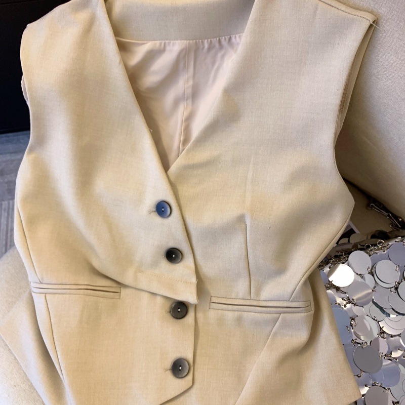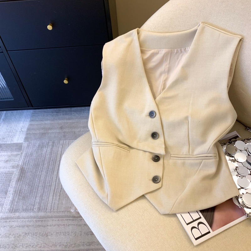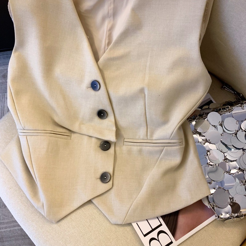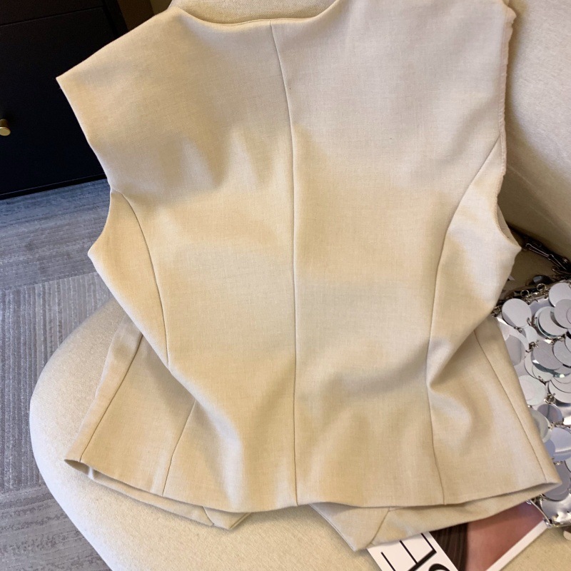 上实拍~老钱风复古v领西装马甲女夏款轻奢高级感背心韩版通勤无袖