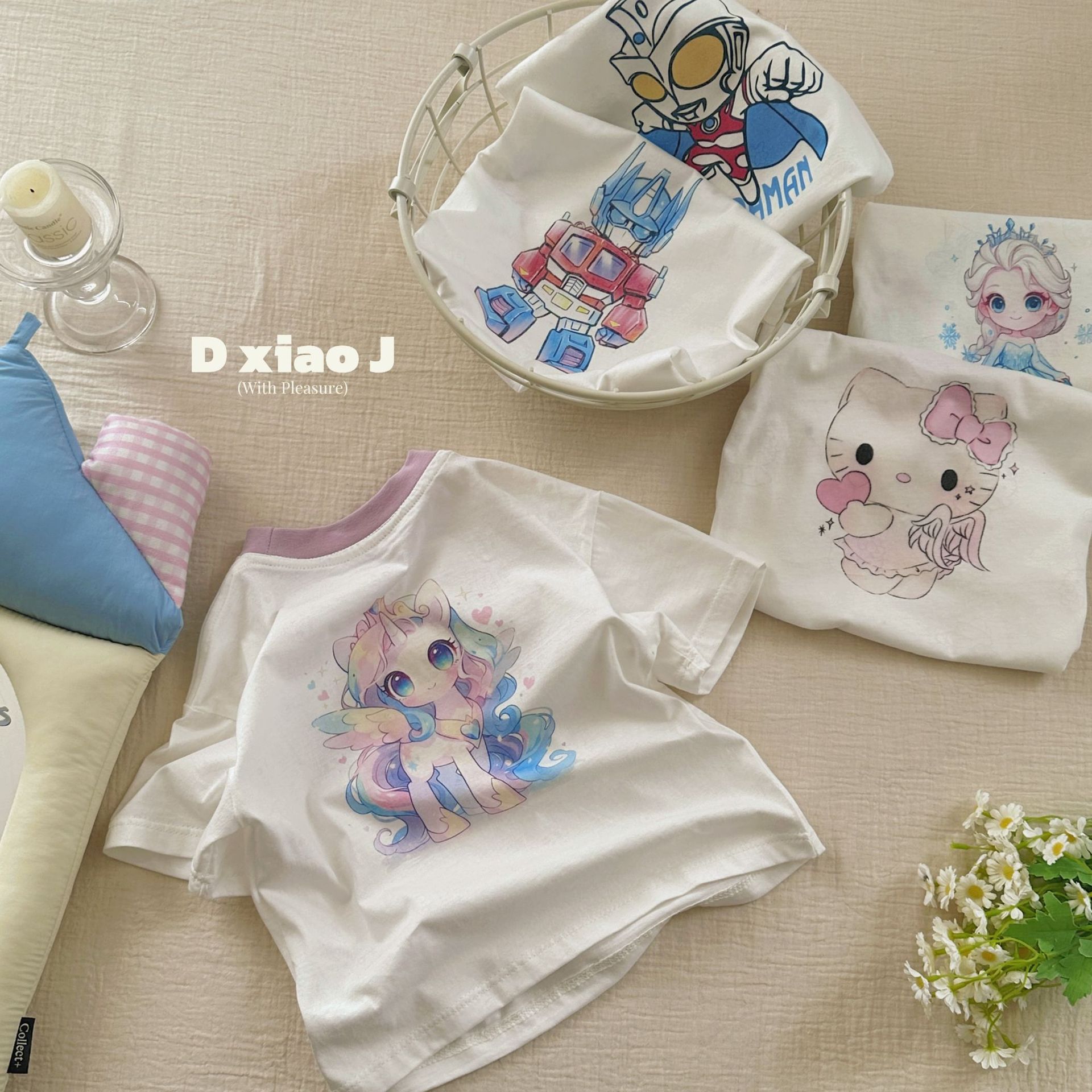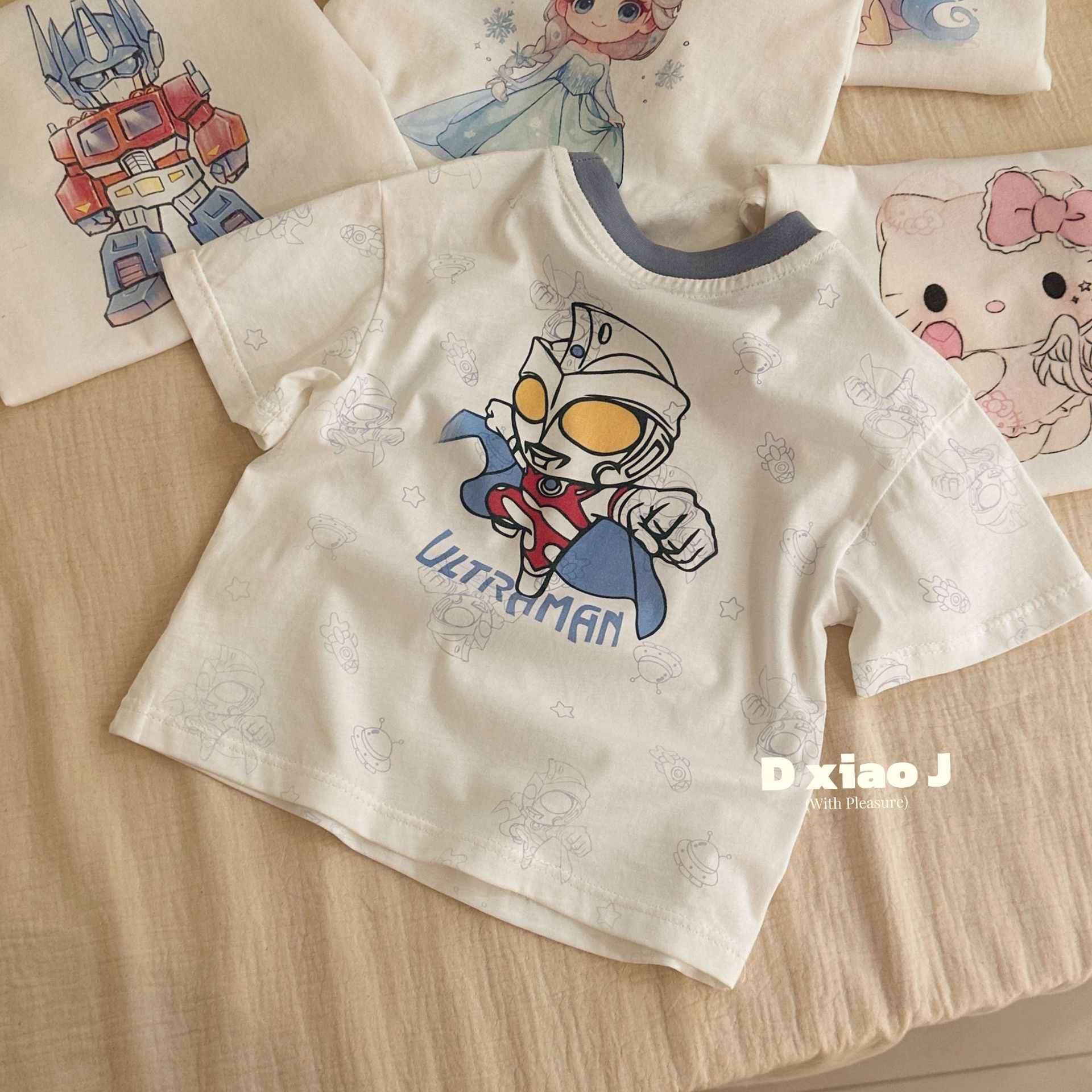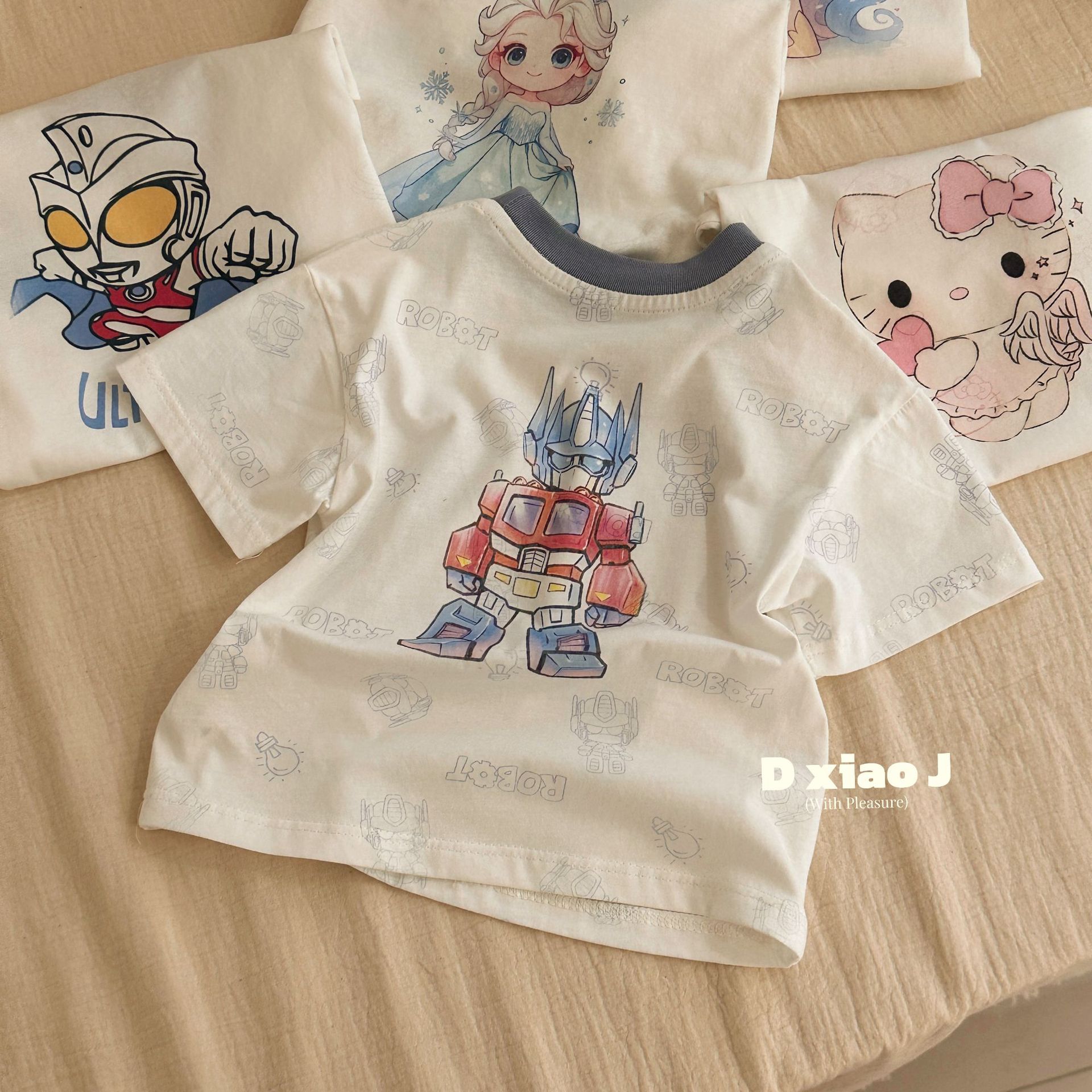 스팟 사이즈 롤 25 새로운 여름 스타일 소년 소녀 의류 마법의 빛 변화 어린이 만화 반팔 티셔츠 탑