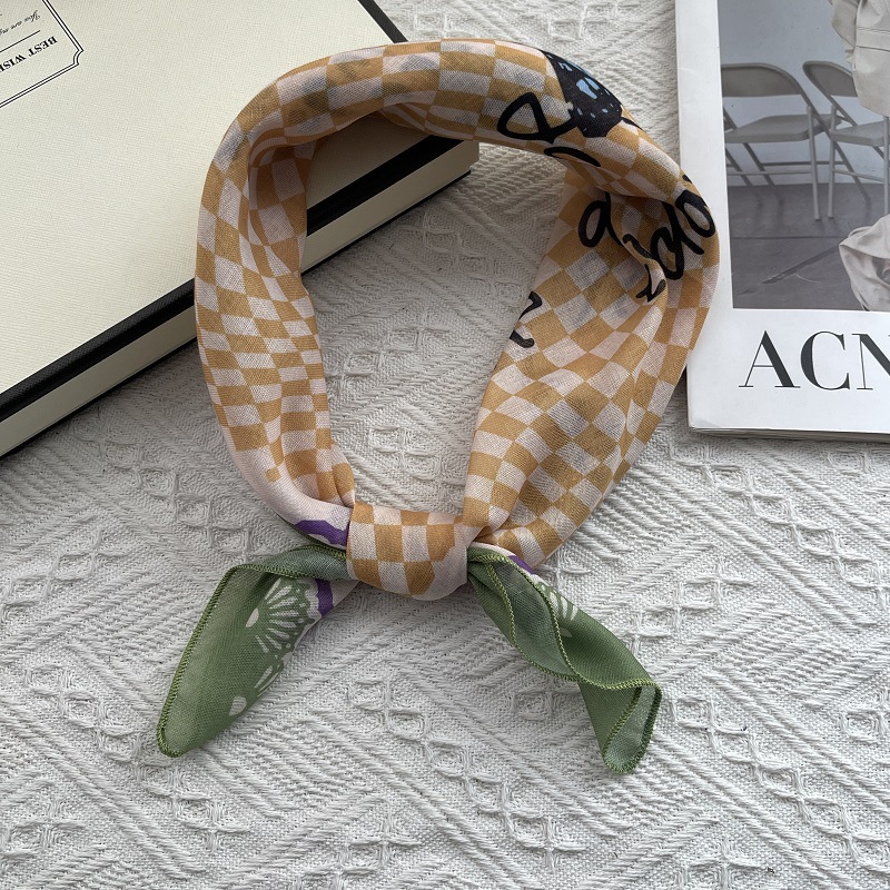 한국 스타일 작은 광장 스카프 여성 여름 2025 새로운 스타일 고급 스타일 목 스카프 보호 스카프 넥타이 헤어 스카프