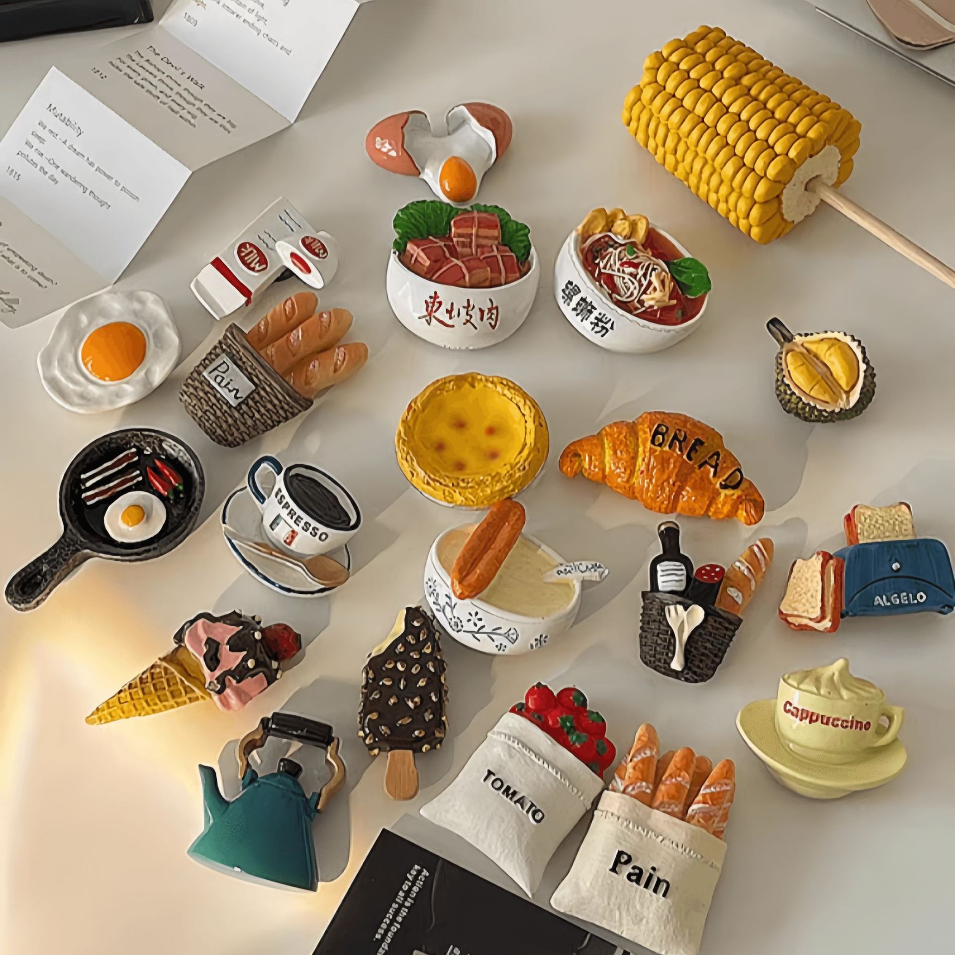 창의적인 가전제품 가정용 자석 스티커 2025년 계란찜, 두리안 아이스크림 등 다양한 음식 만화 냉장고 자석