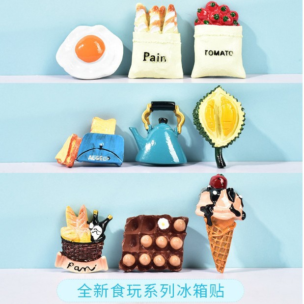 창의적인 가전제품 가정용 자석 스티커 2025년 계란찜, 두리안 아이스크림 등 다양한 음식 만화 냉장고 자석스토어 가기