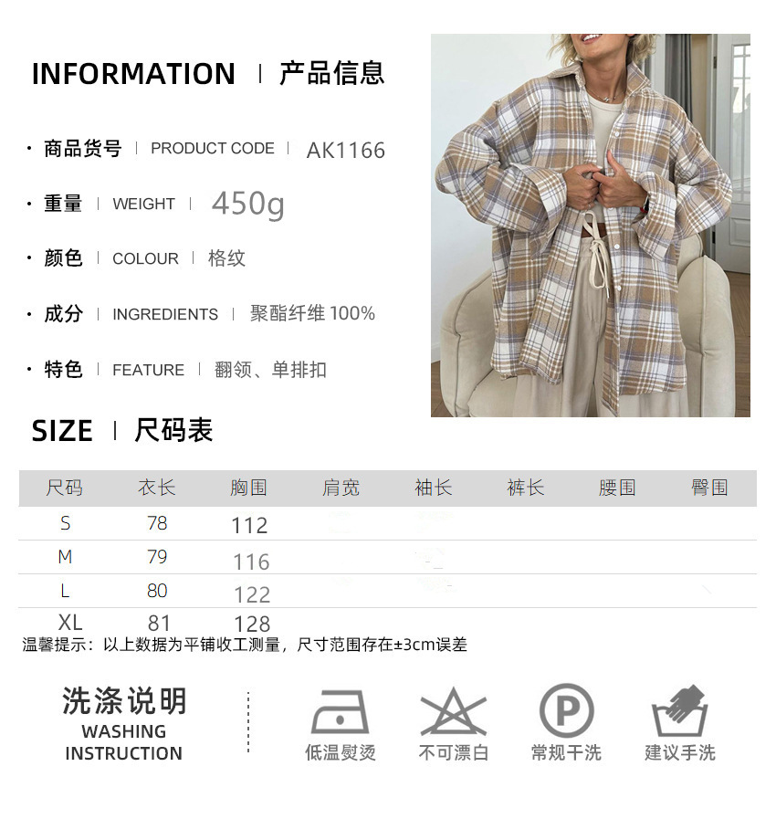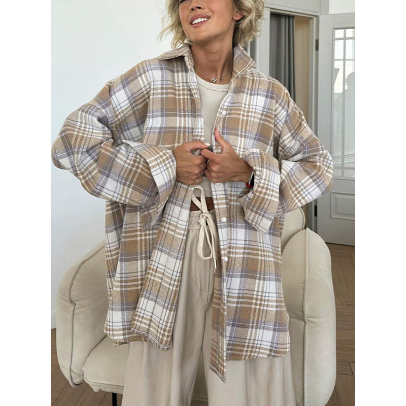 가을 미국 복고풍 패션 격자 무늬 셔츠 여성용 대형 마일라드 긴 소매 옷깃 셔츠 재킷스토어 가기