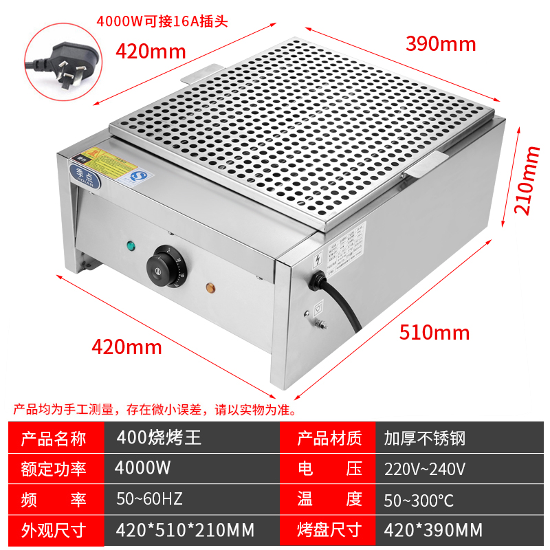 • <<400 넓어진 BBQ King은 16A 플러그를 수용할 수 있습니다>>