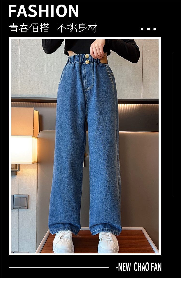 국경 도매 어린이 바지 소녀 청바지 봄과 가을 여성 넓은 다리 바지 어린이 봄 스트레이트 바지 한국 조수스토어 가기