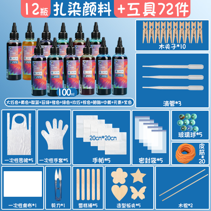 • 3가지 색상의 물감 + 도구 72개 [손수건 5개 포함]