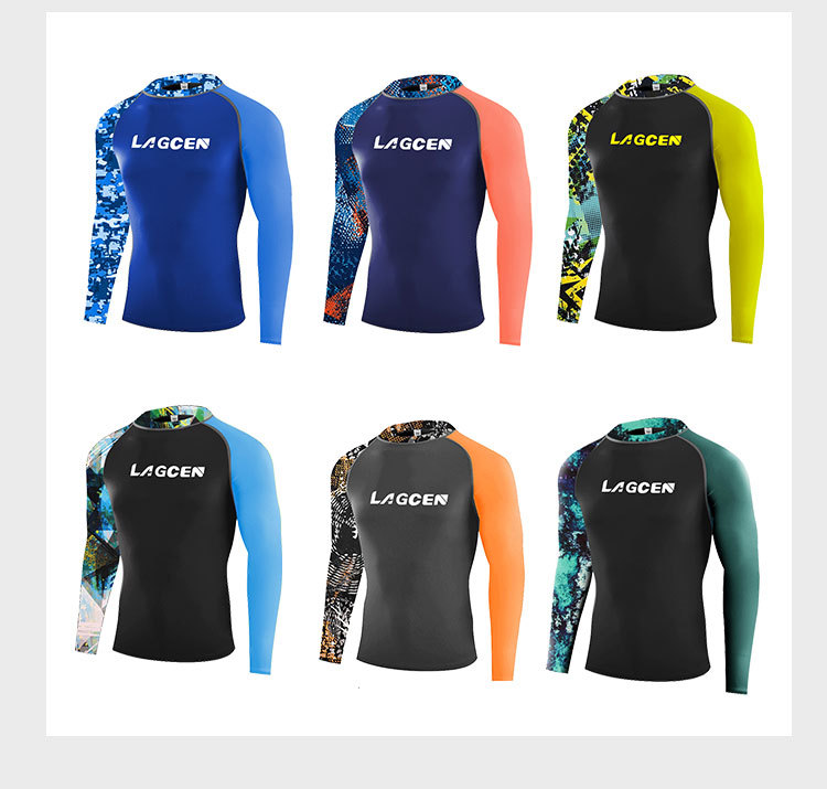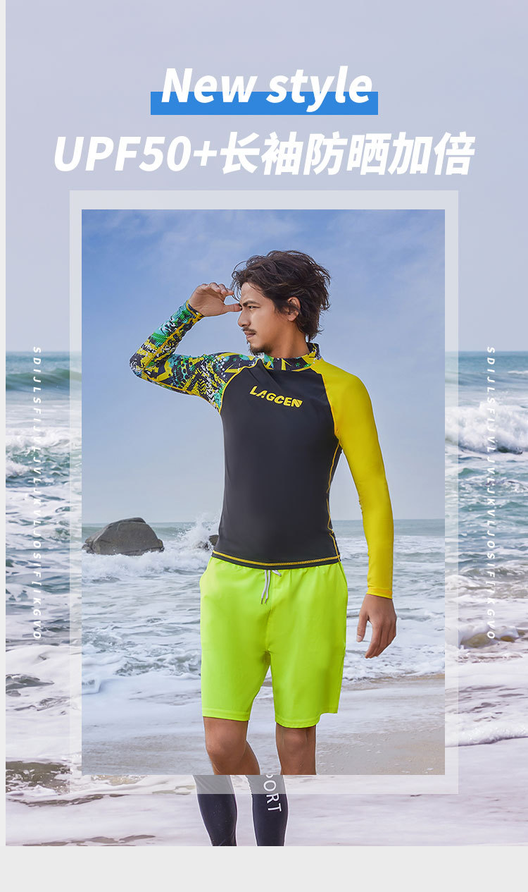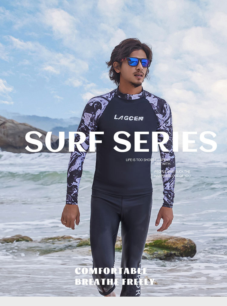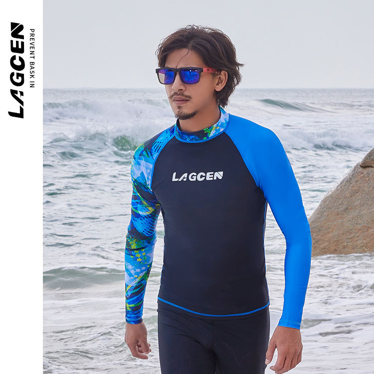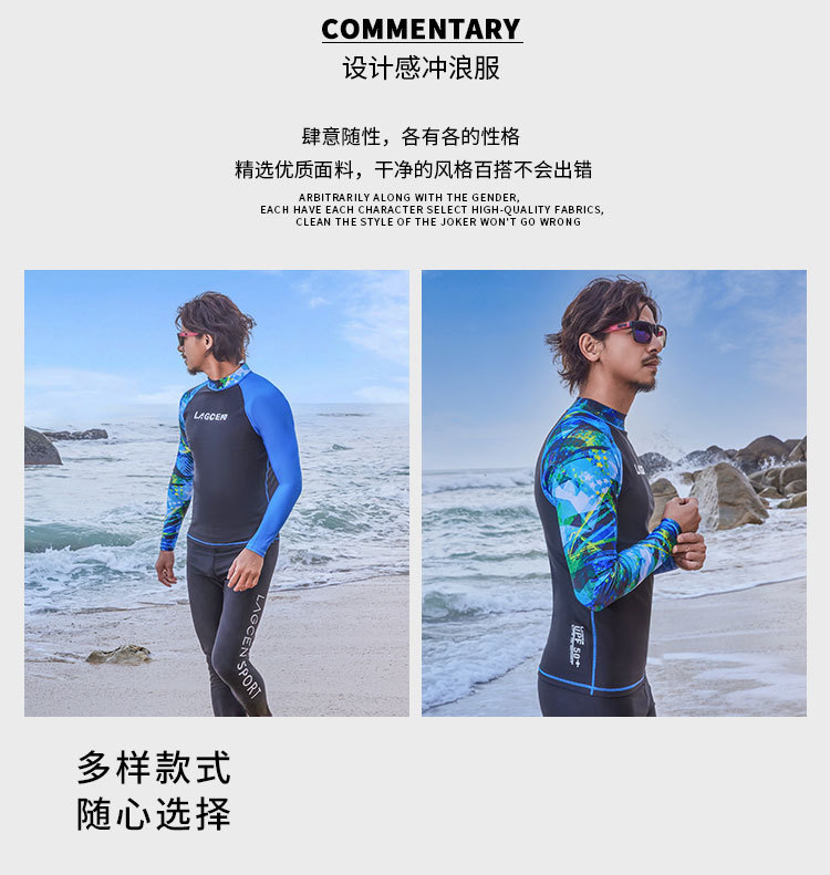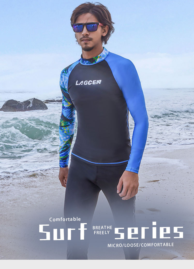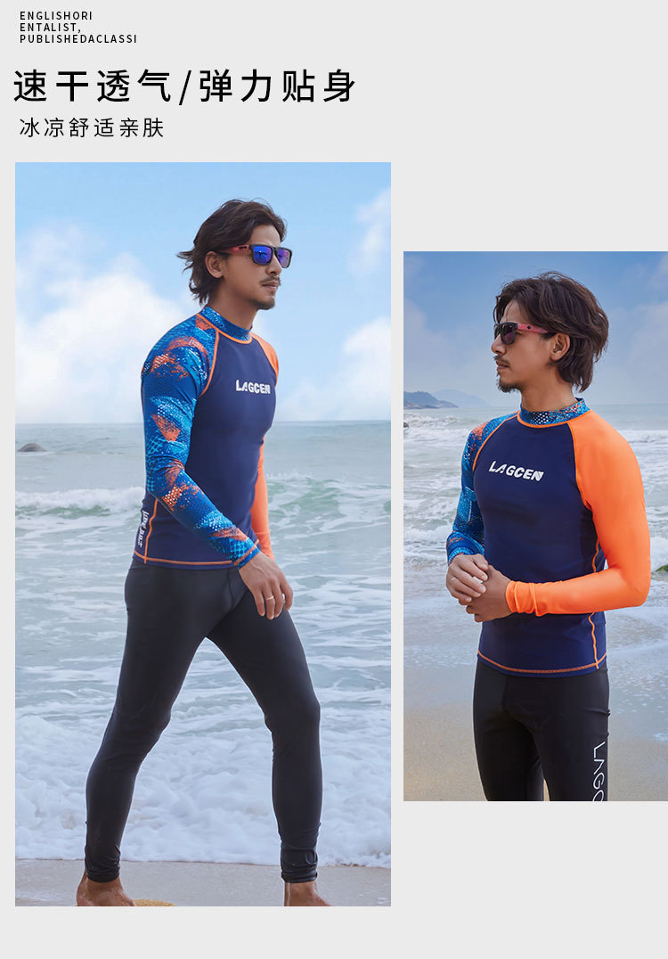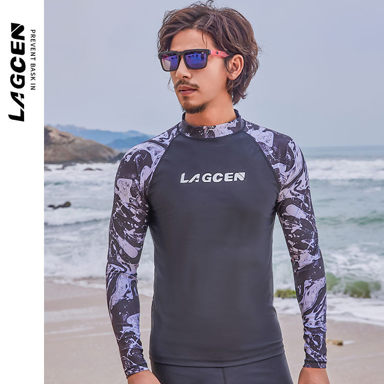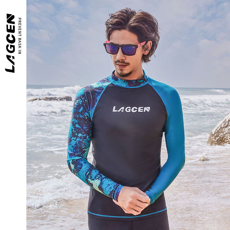 LAGCEN 새로운 도착 한국 다이빙 세트 남자 긴팔 보수 슬리밍 스플리트 빠른 건조 태양 보호 수영복 서핑 세트스토어 가기