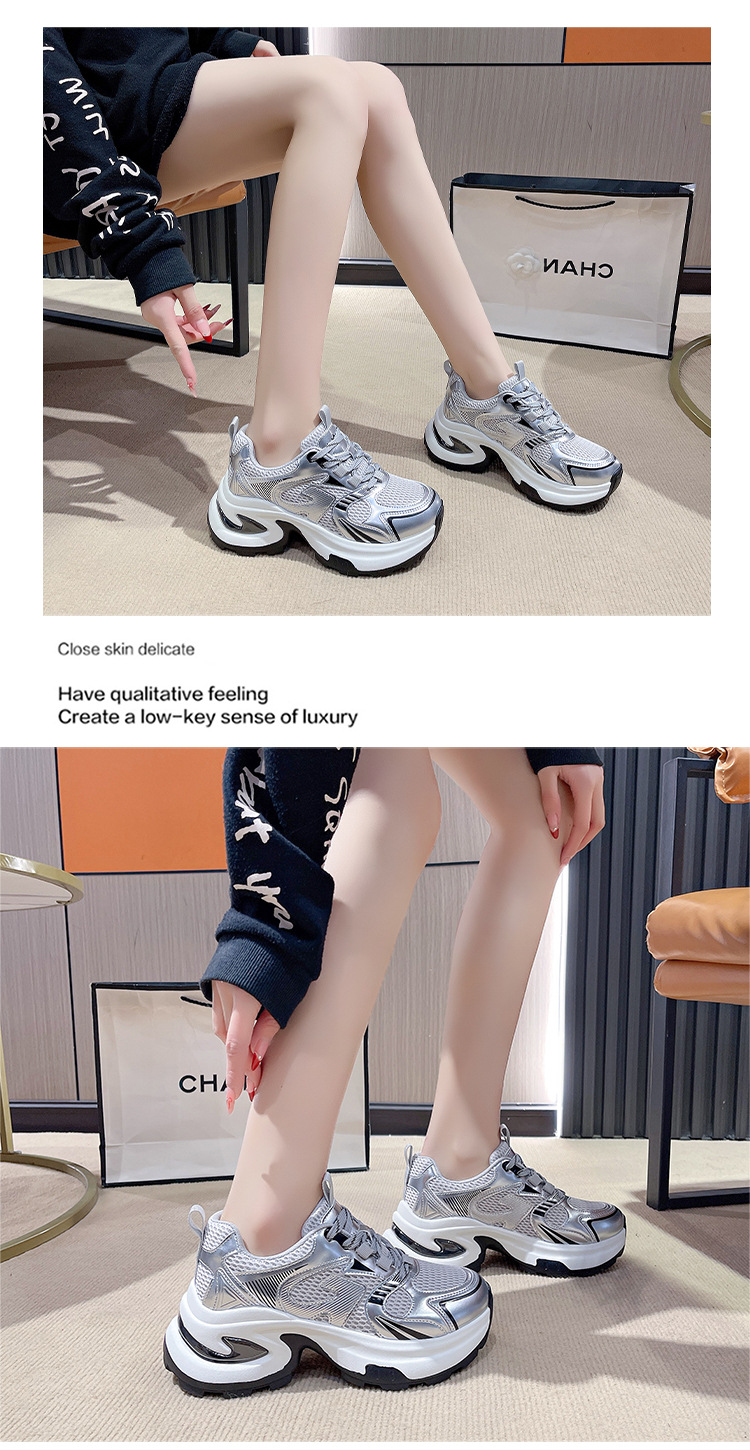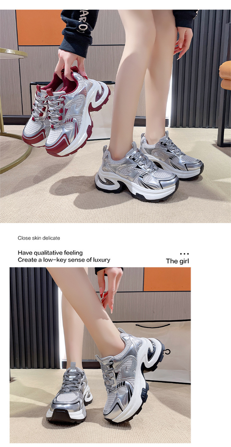 토레 신발 여성 2025 새로운 봄과 여름 통기성 메쉬 얇은 플랫폼 실버 캐주얼 스포츠 여성 신발 증가