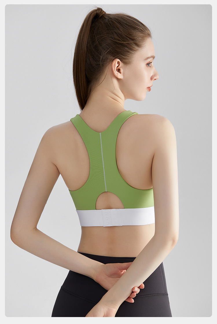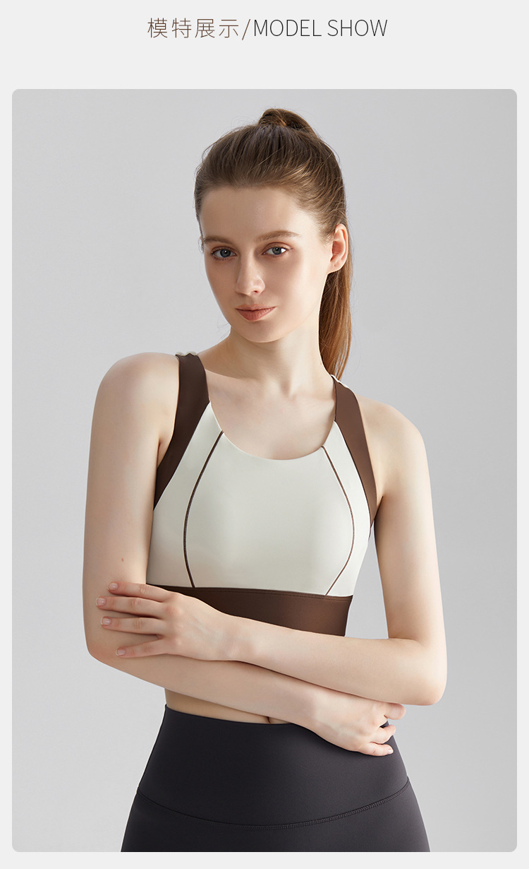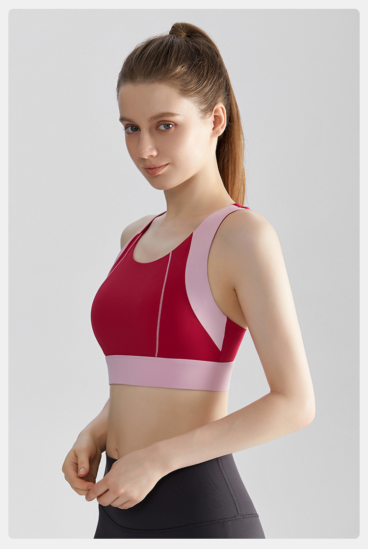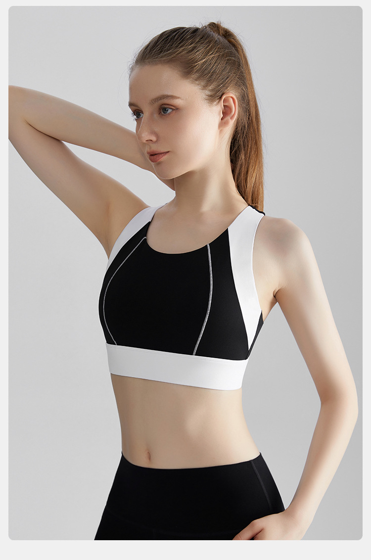 여름 새로운 대비 컬러 스포츠 속옷 여성의 고강도 달리기 요가 의류 충격 방지 브래지어 고정 컵 아름다운 뒤 조끼