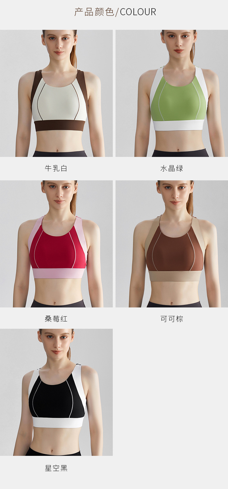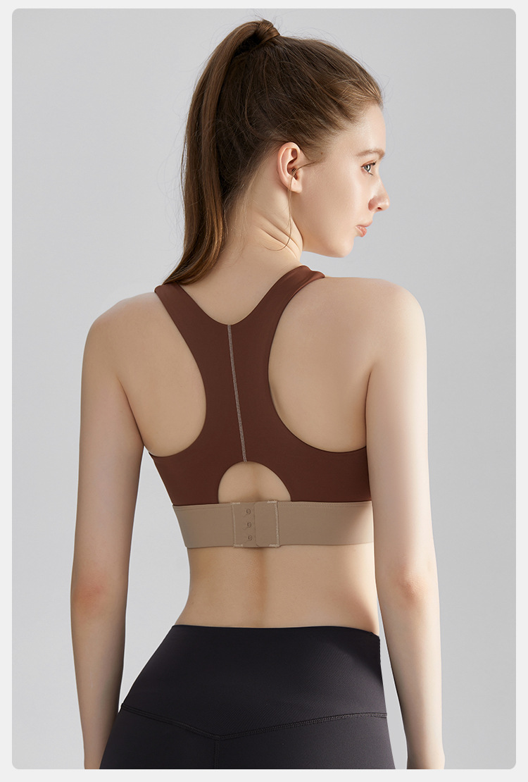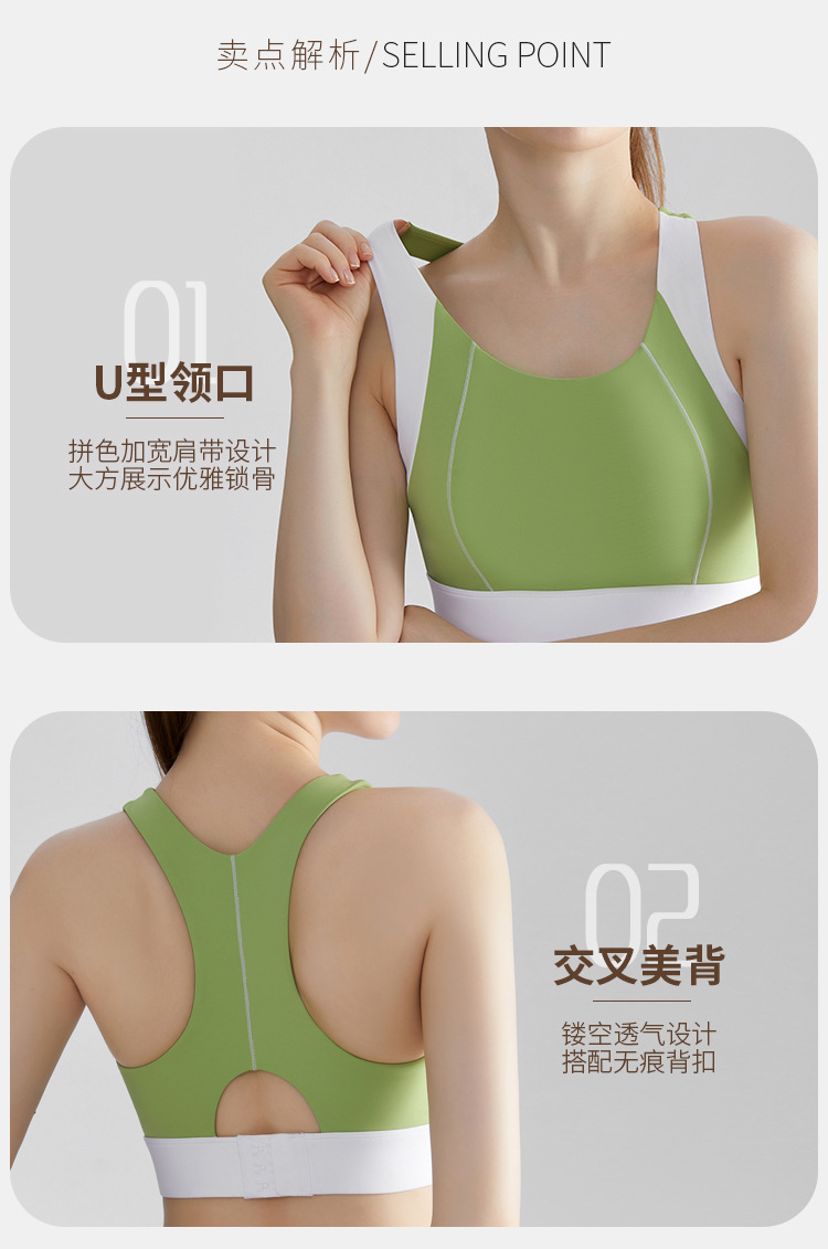여름 새로운 대비 컬러 스포츠 속옷 여성의 고강도 달리기 요가 의류 충격 방지 브래지어 고정 컵 아름다운 뒤 조끼