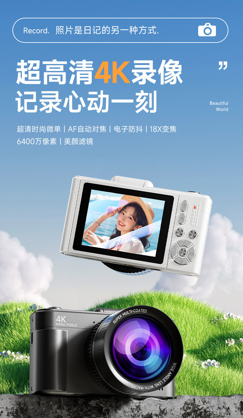 신제품 플립 스크린 카메라 HD 디지털 카메라 복고풍 마이크로 단일 CCD 플립 스크린 학생 캠퍼스는 자화상 뷰티 사진을 찍을 수 있습니다.스토어 가기