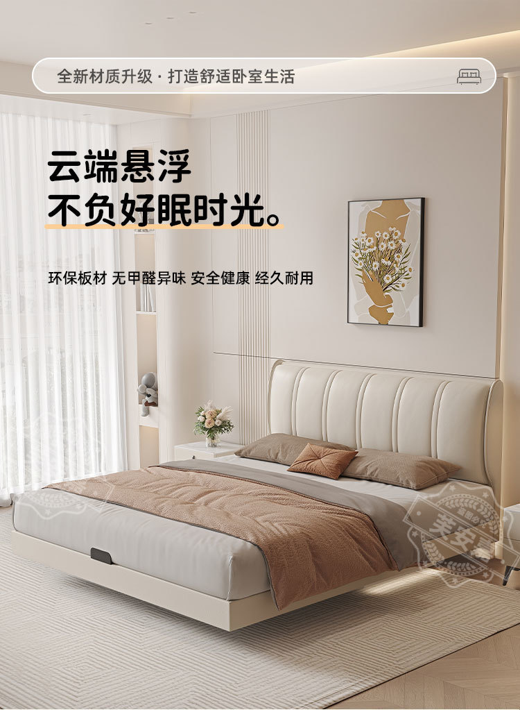 서스펜션 침대 마스터 침실 더블 침대 라이트 럭셔리 하이 엔드 1.2m 현대 간단한 부드러운 침대 프렌치 크림 매달려 국경 도매