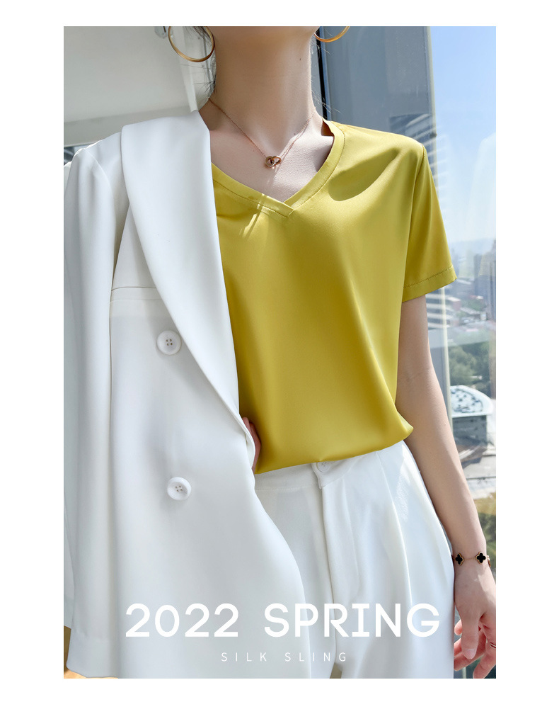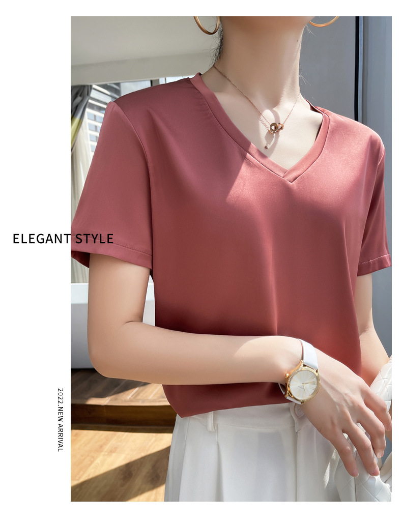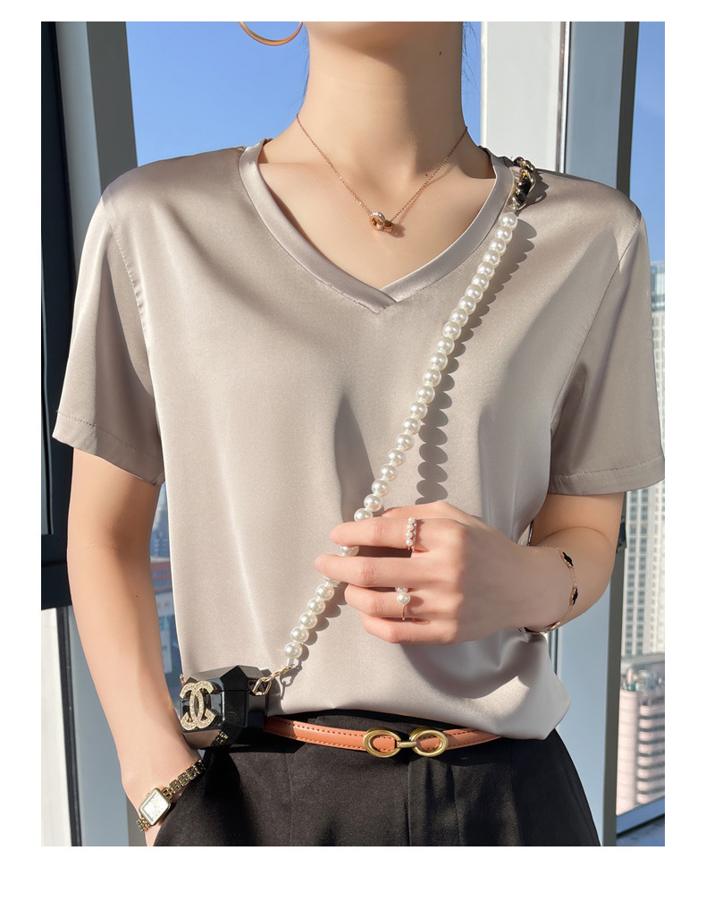 트리아세테이트 여름 여성 티셔츠 반팔 루즈 실크 멀베리 실크 새틴 바닥 라운드 넥 이너 슈트 탑 반소매