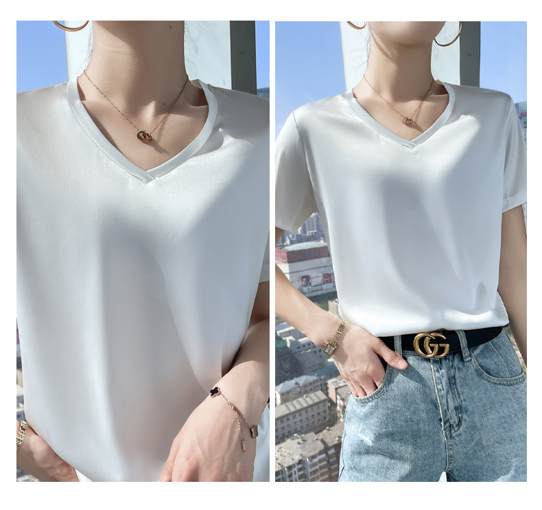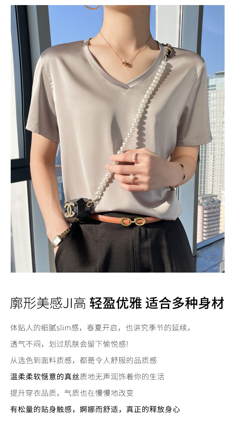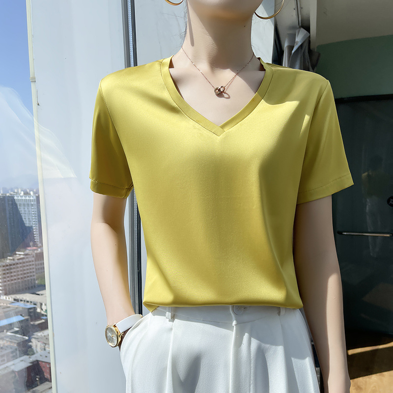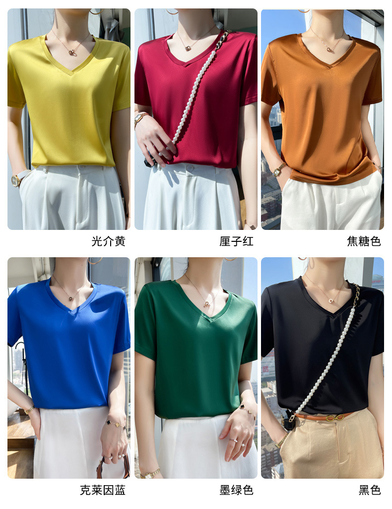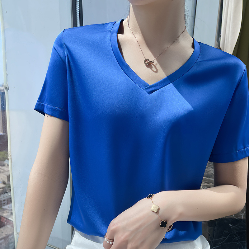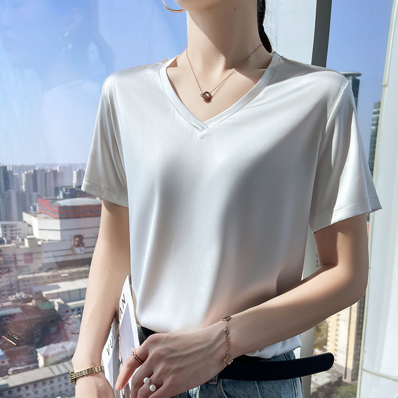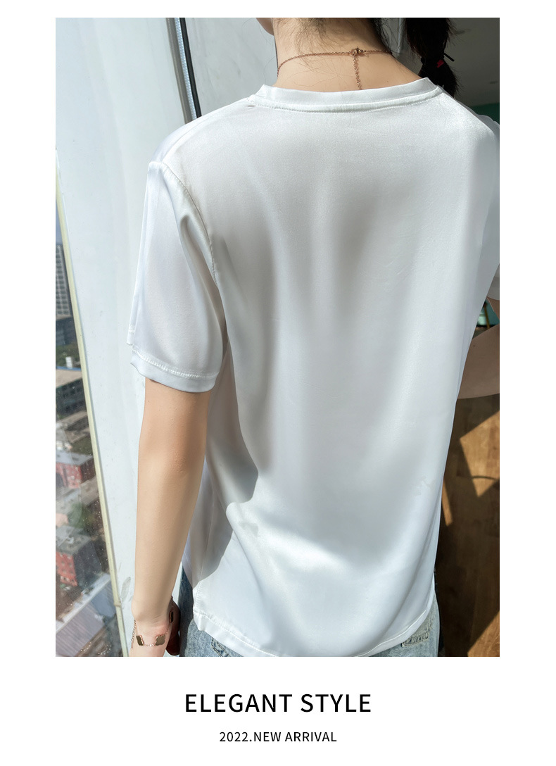 트리아세테이트 여름 여성 티셔츠 반팔 루즈 실크 멀베리 실크 새틴 바닥 라운드 넥 이너 슈트 탑 반소매스토어 가기