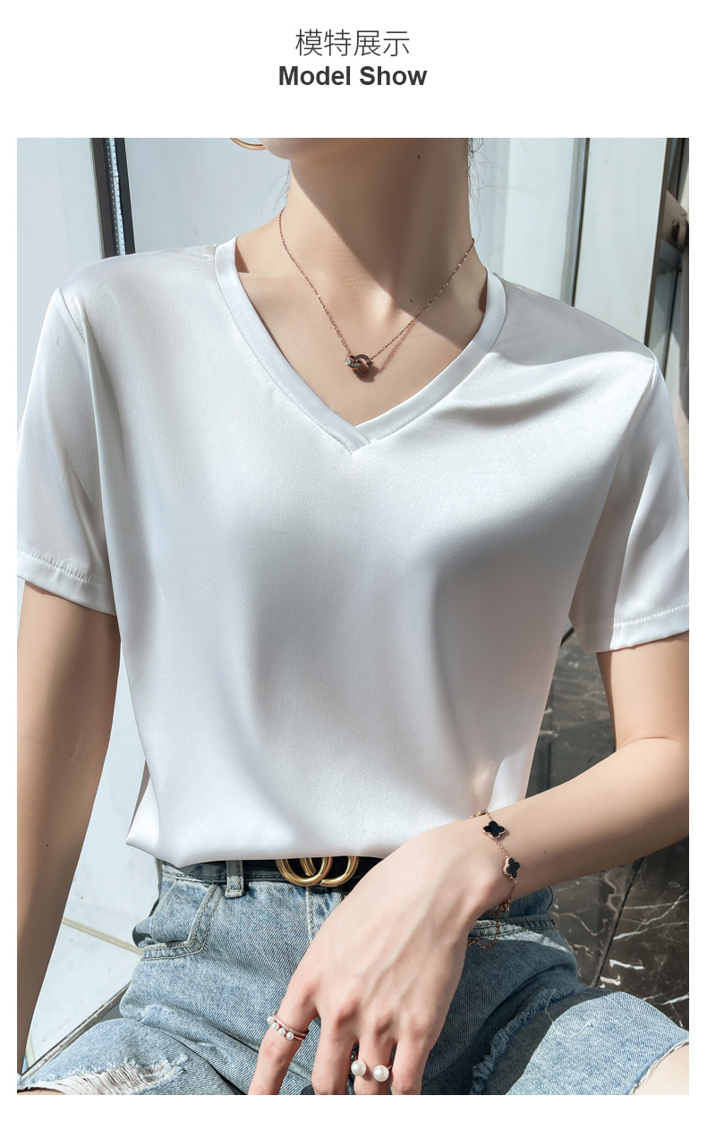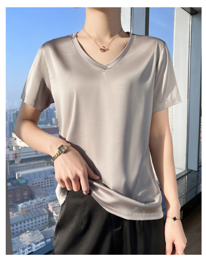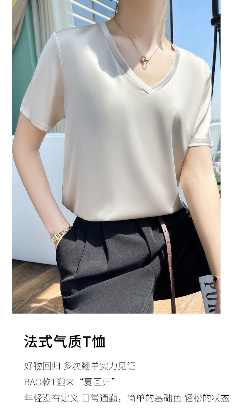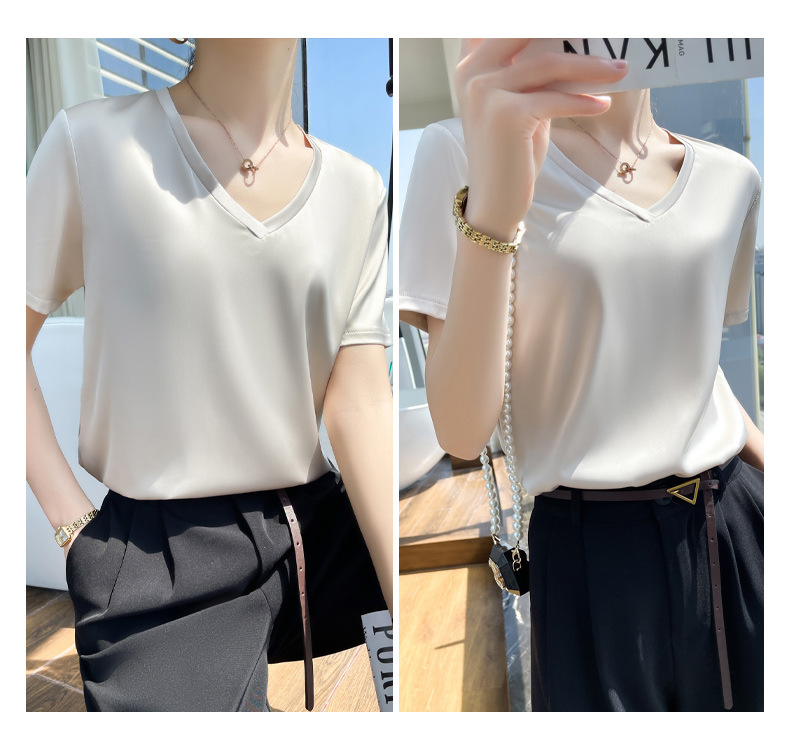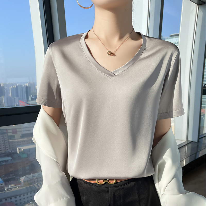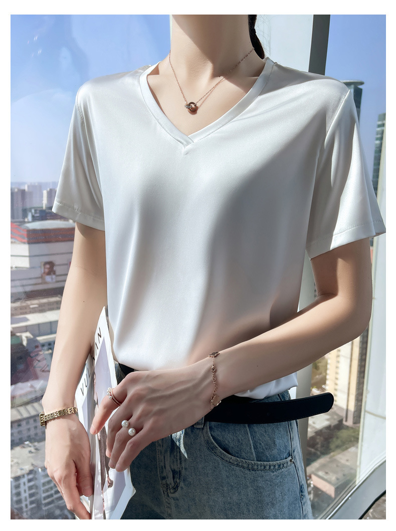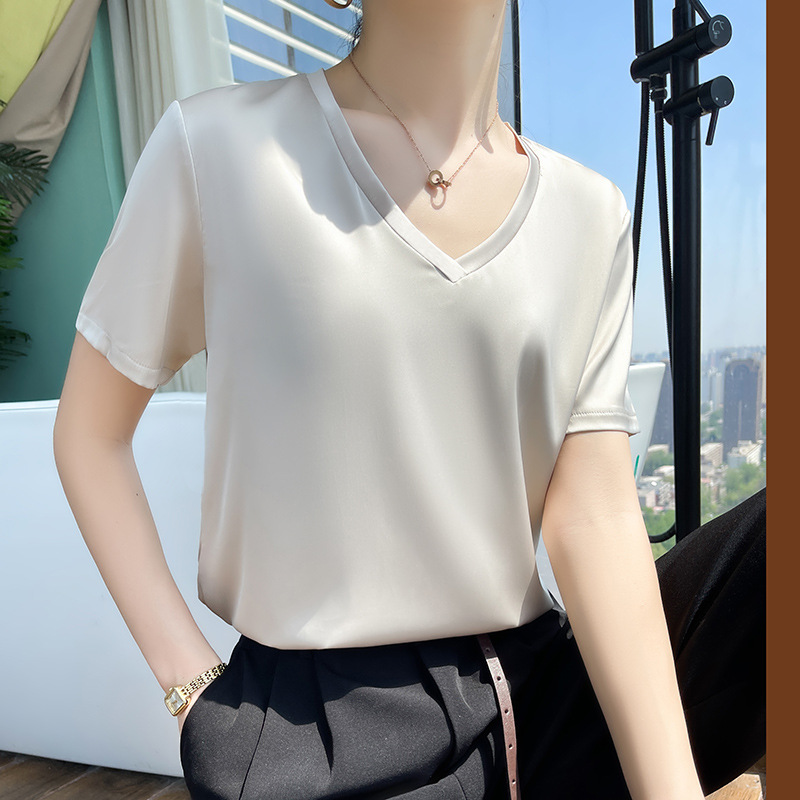트리아세테이트 여름 여성 티셔츠 반팔 루즈 실크 멀베리 실크 새틴 바닥 라운드 넥 이너 슈트 탑 반소매스토어 가기