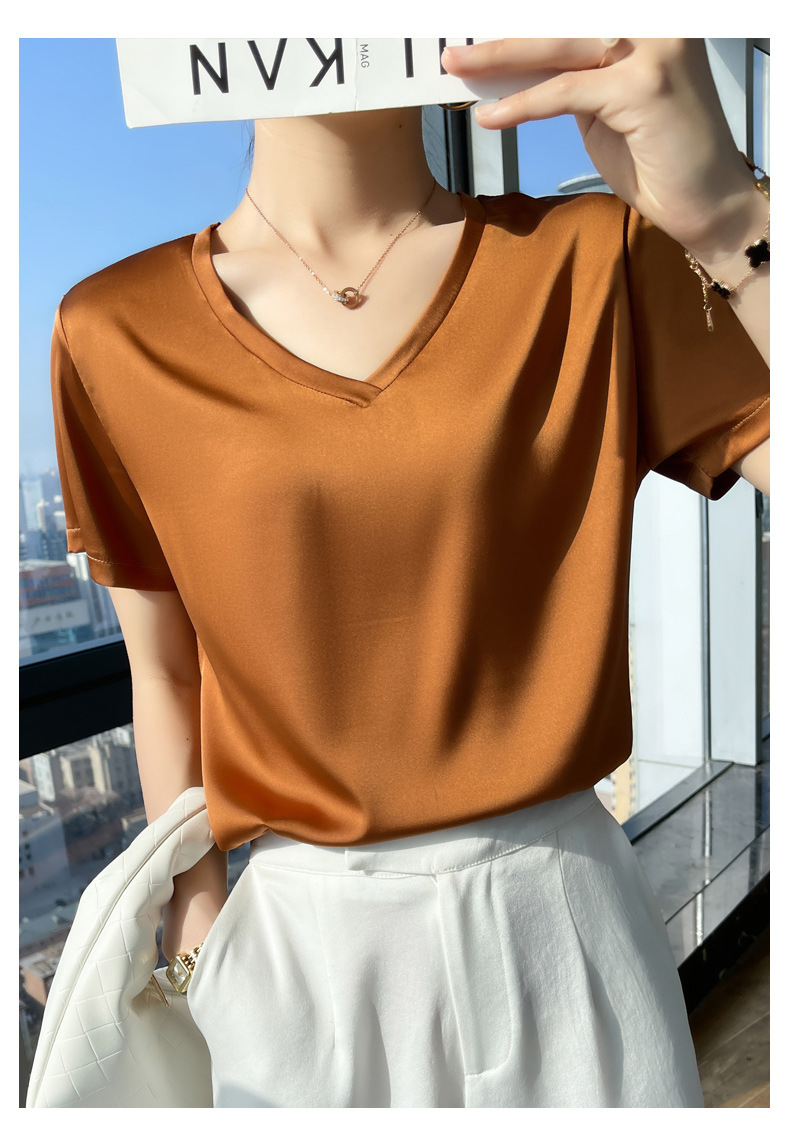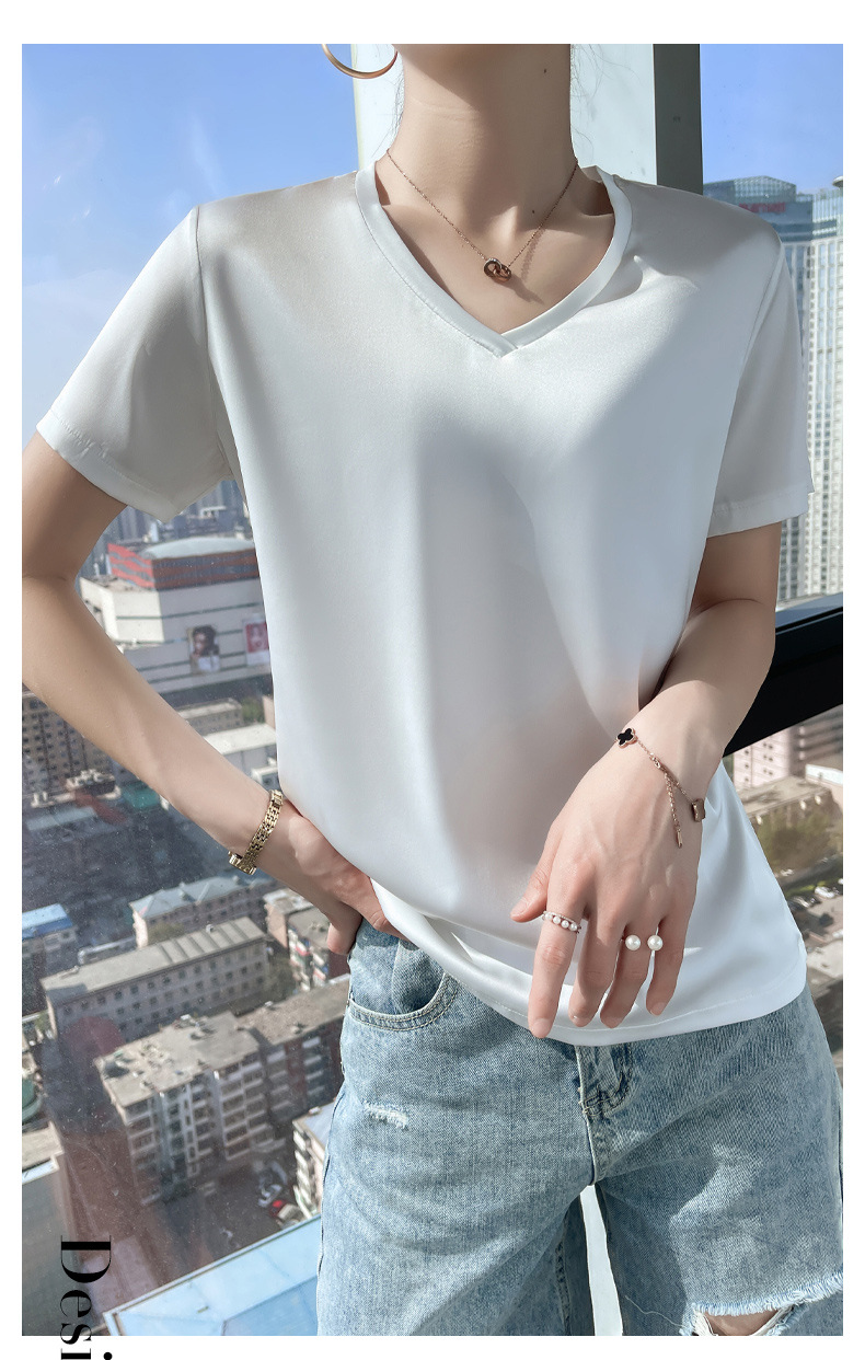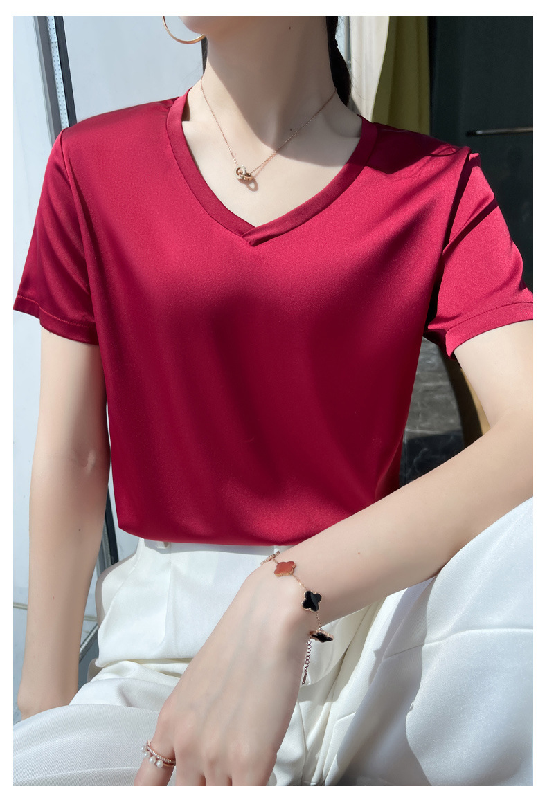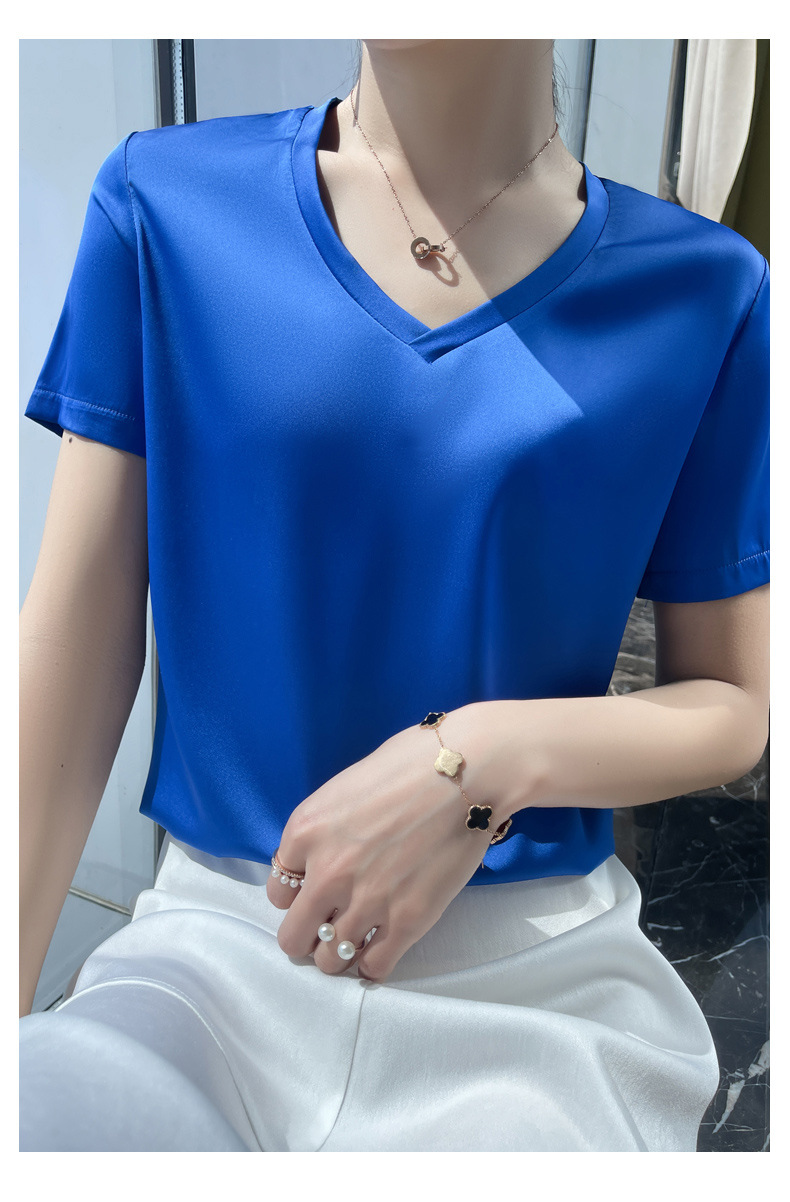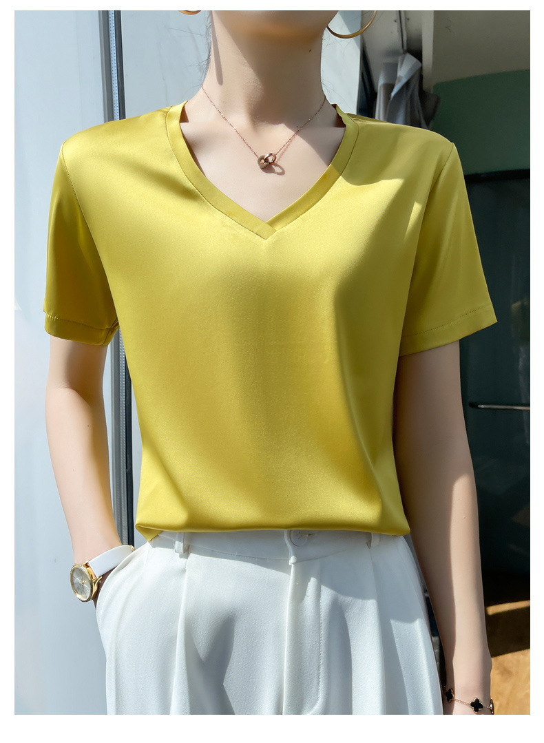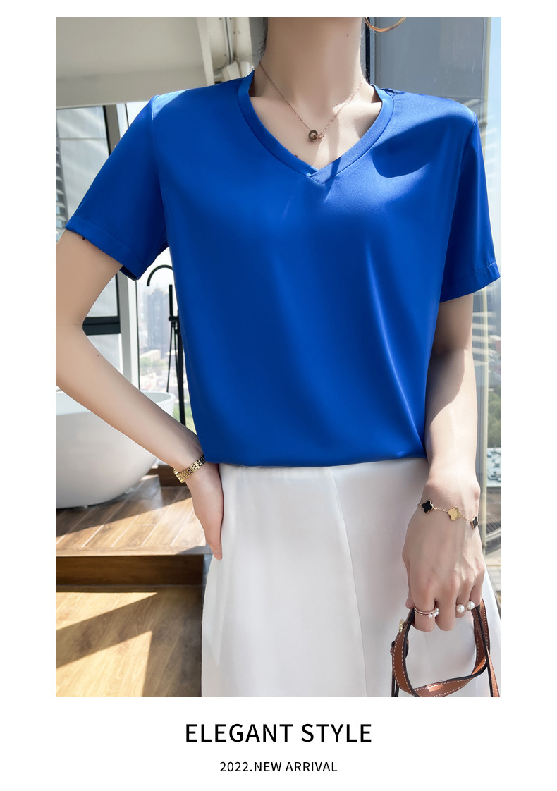 트리아세테이트 여름 여성 티셔츠 반팔 루즈 실크 멀베리 실크 새틴 바닥 라운드 넥 이너 슈트 탑 반소매스토어 가기