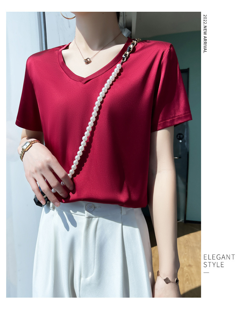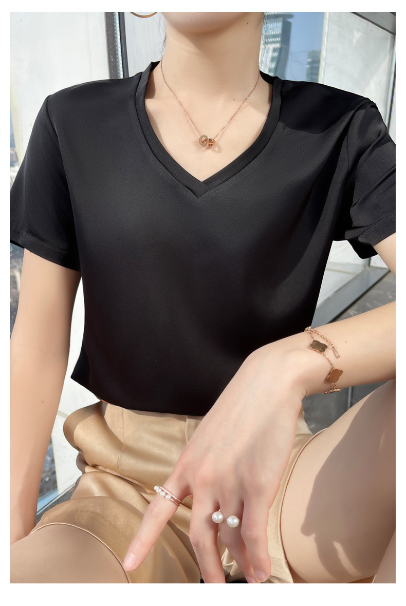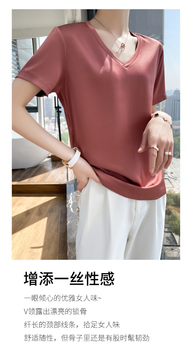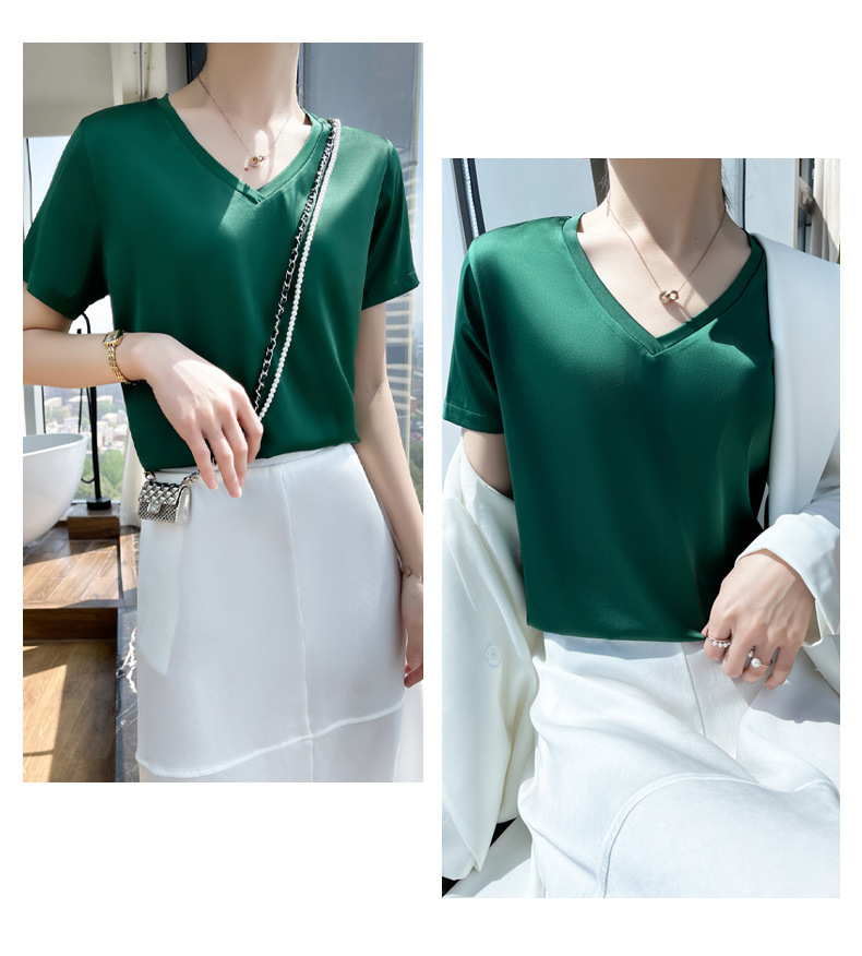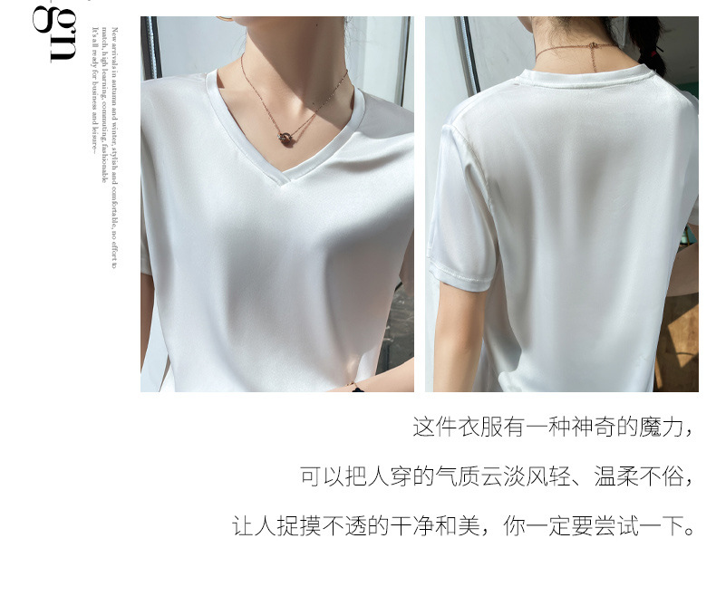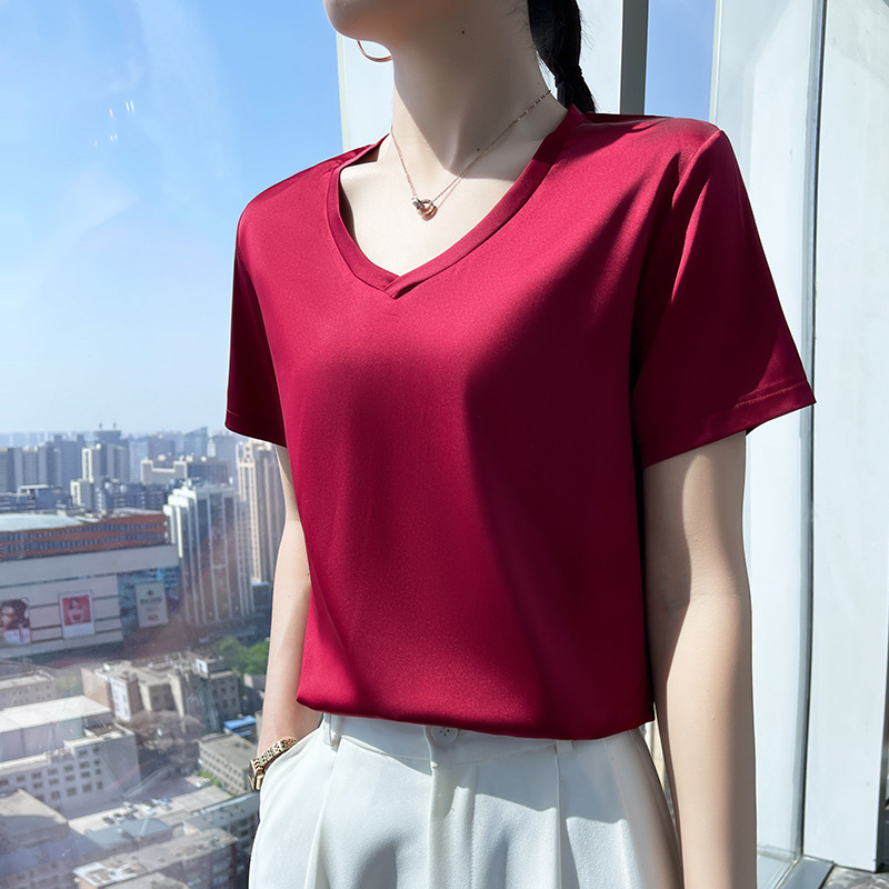 트리아세테이트 여름 여성 티셔츠 반팔 루즈 실크 멀베리 실크 새틴 바닥 라운드 넥 이너 슈트 탑 반소매스토어 가기