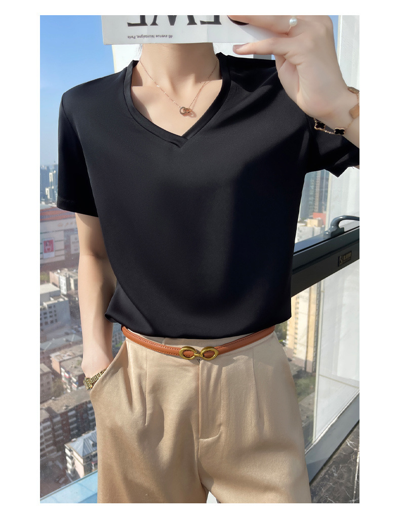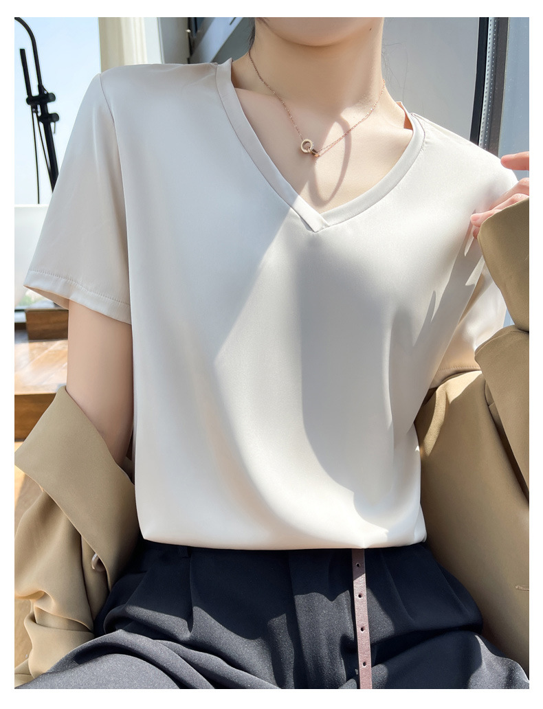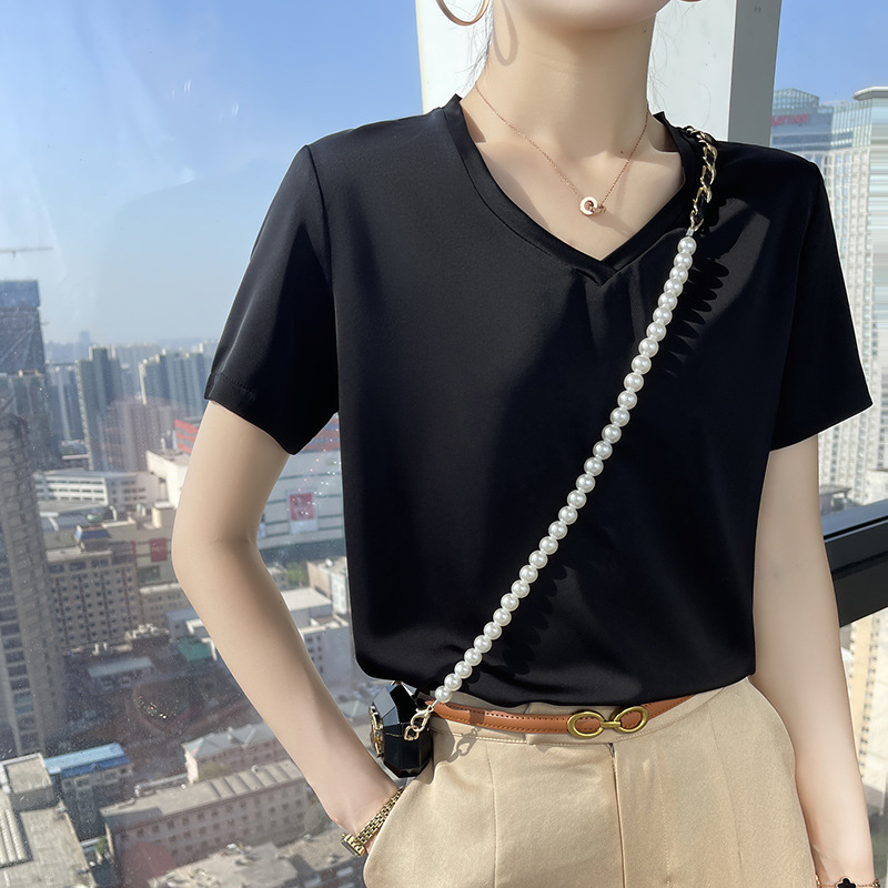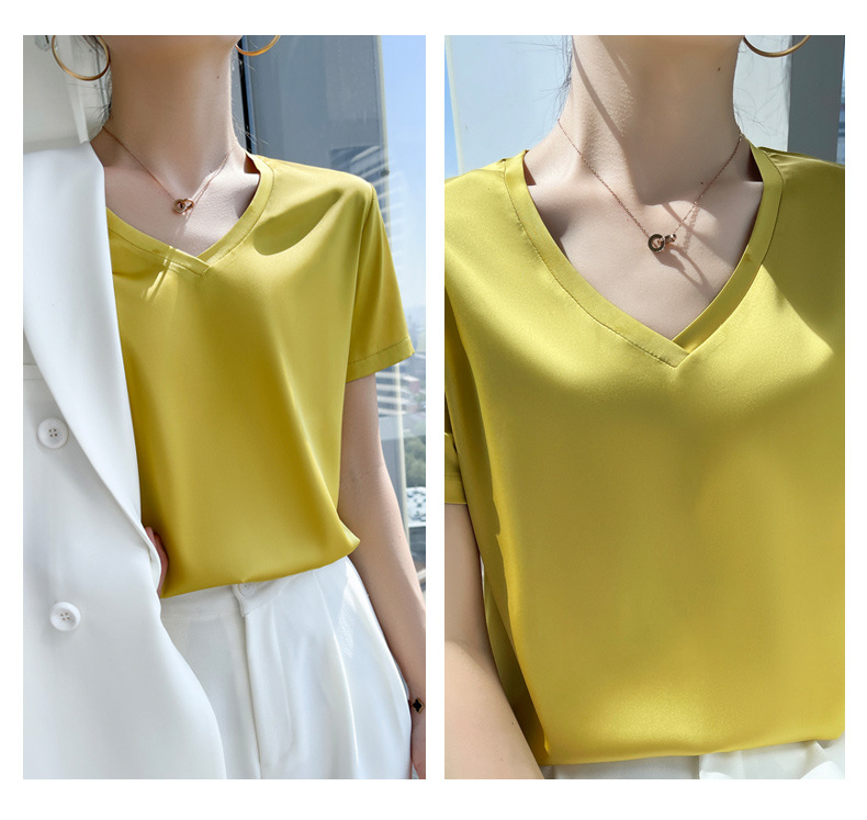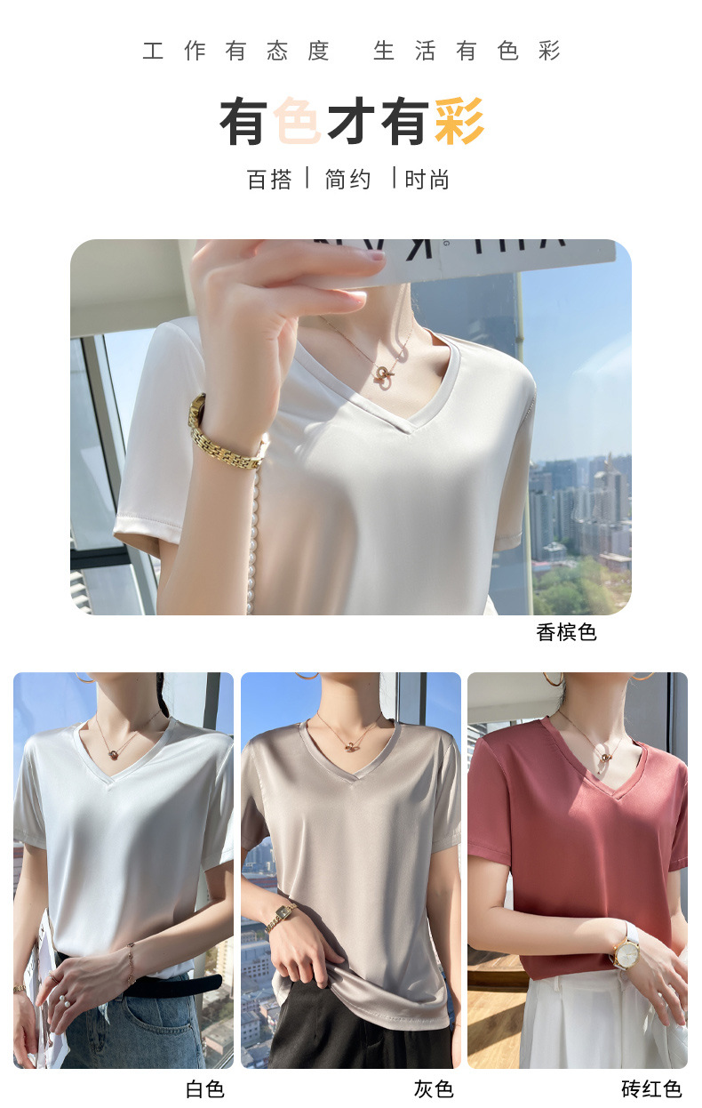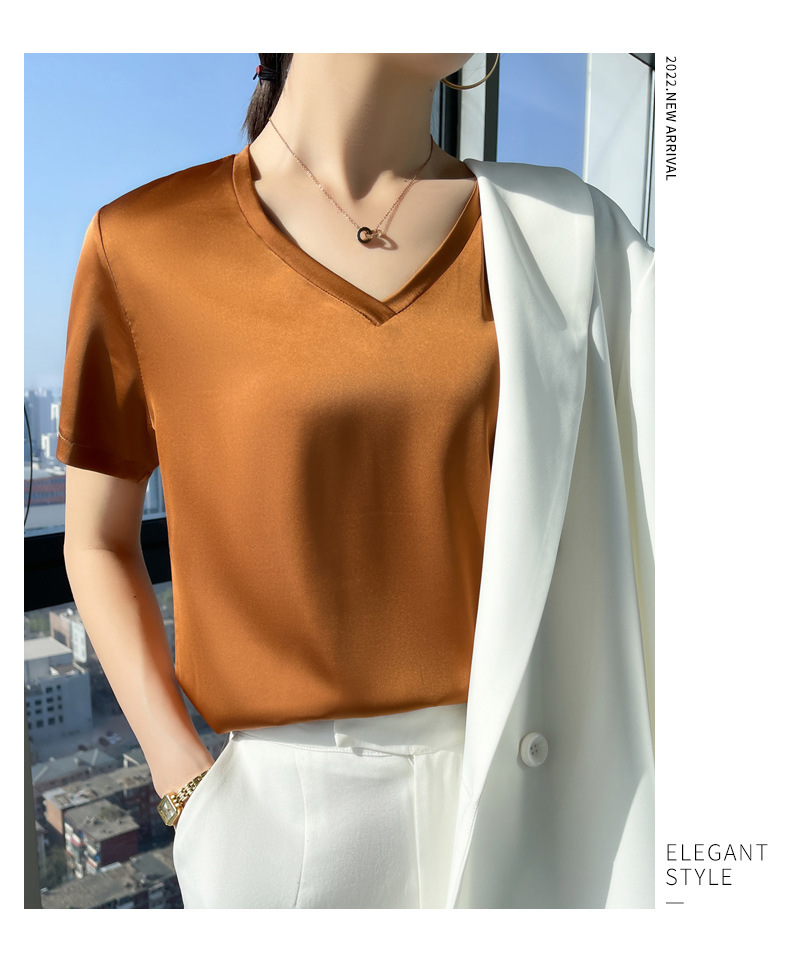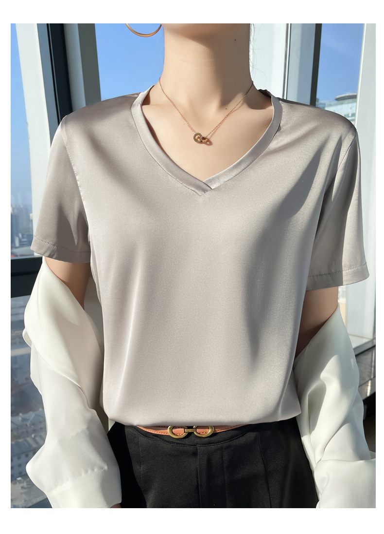 트리아세테이트 여름 여성 티셔츠 반팔 루즈 실크 멀베리 실크 새틴 바닥 라운드 넥 이너 슈트 탑 반소매스토어 가기