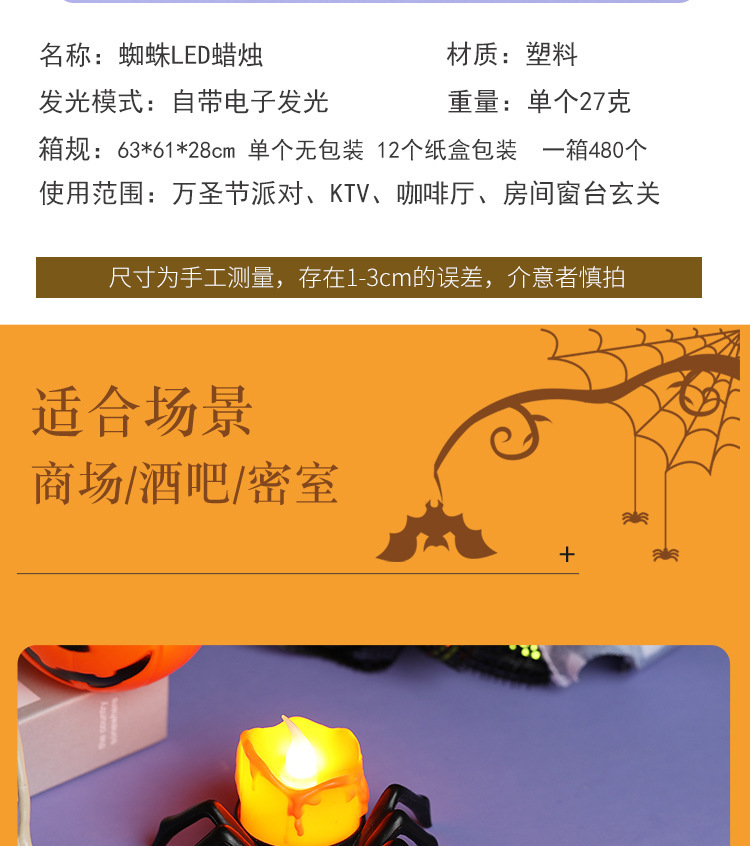 할로윈 호박 등불 어린이 빛나는 거미 두개골 전자 촛불 장식 바 창 장면 레이아웃 장식스토어 가기