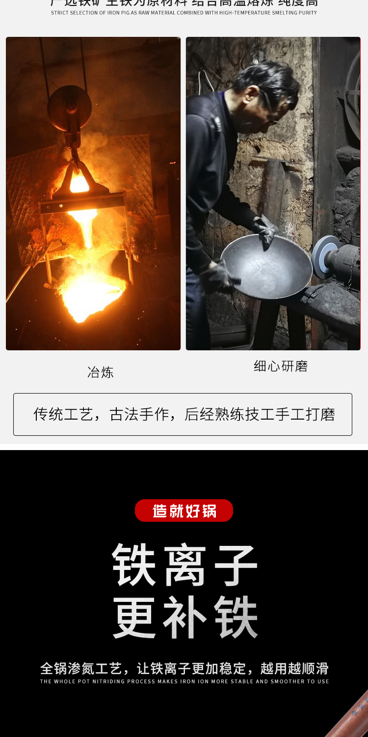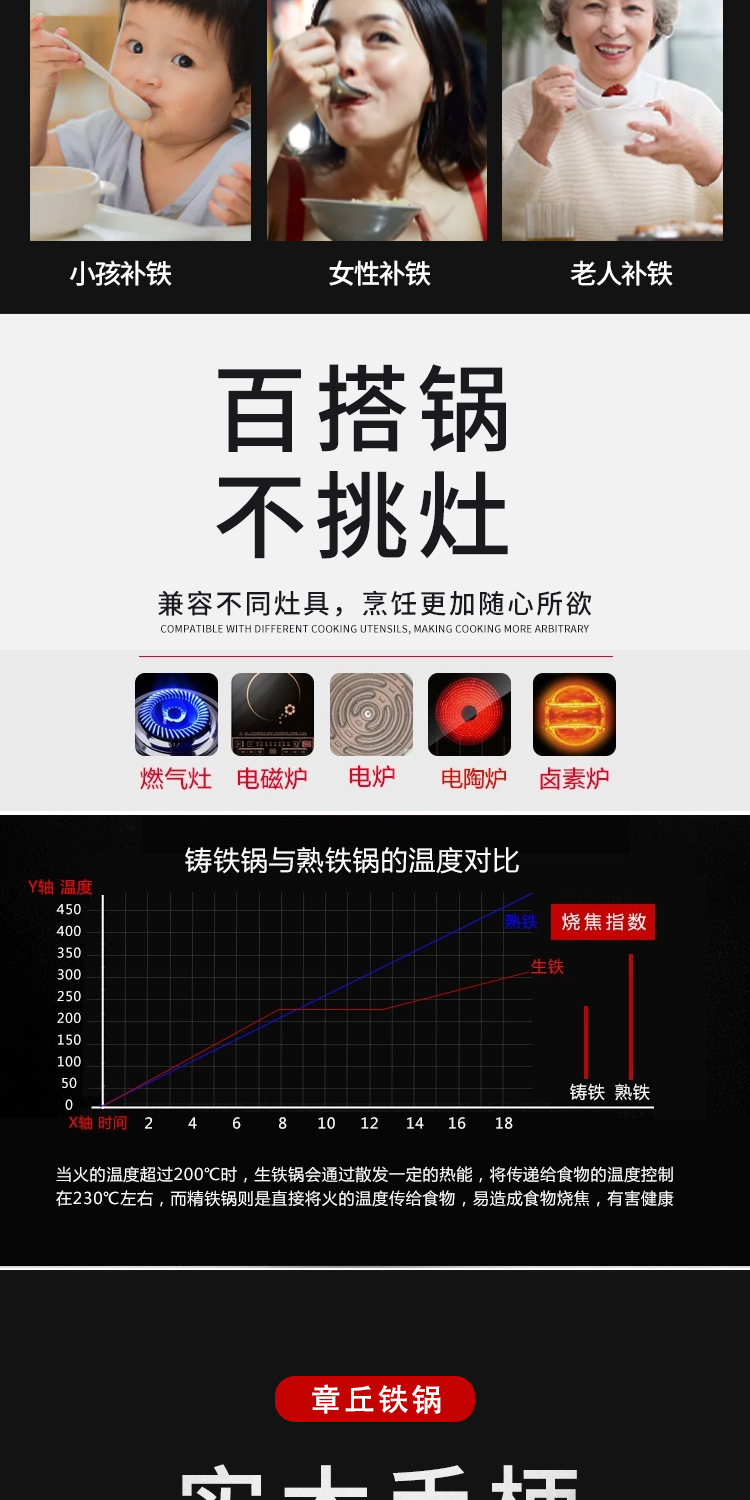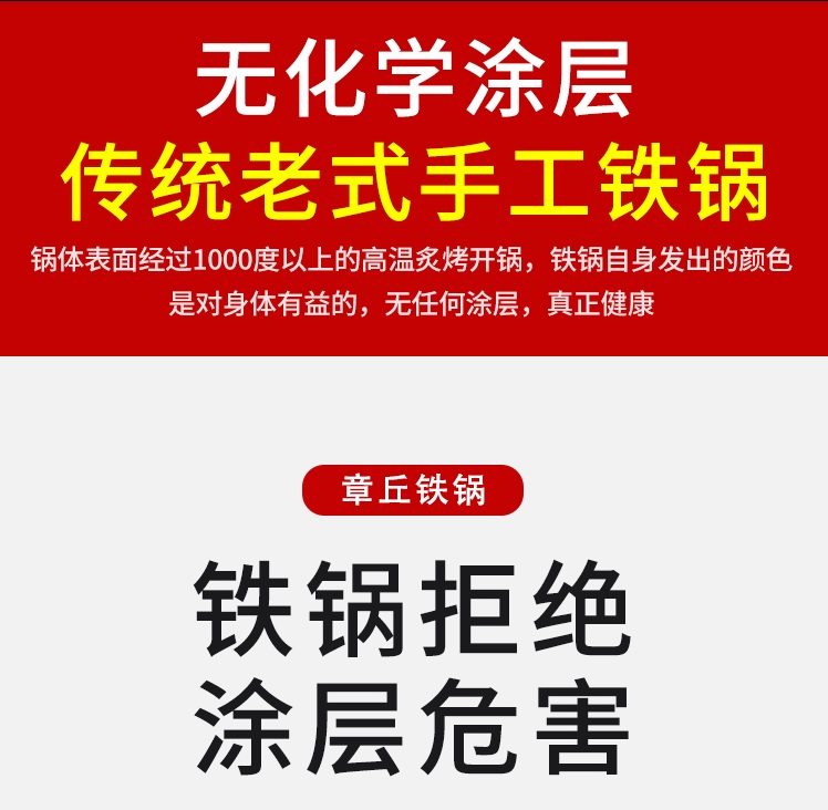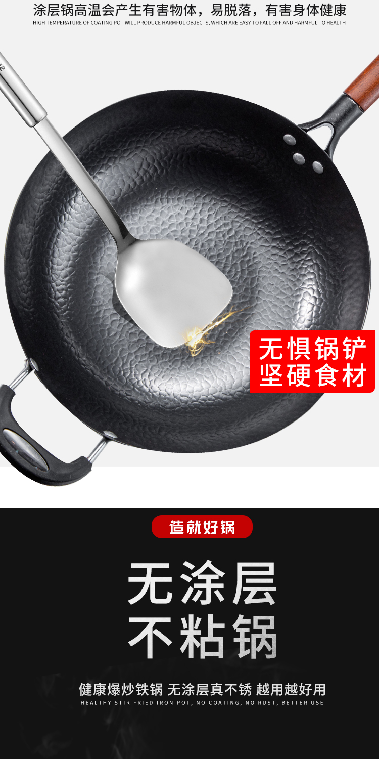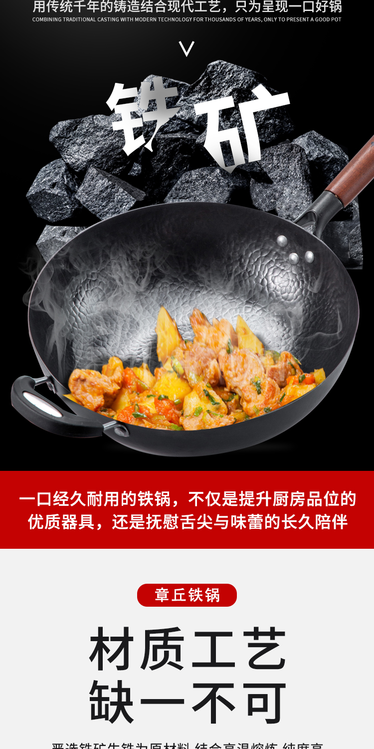 Zhangqiu 구식 수제 철 냄비 가정용 비 스틱 Wok 코팅되지 않은 가스 스토브 특수 유도 쿠커 플랫 왕 타오 원