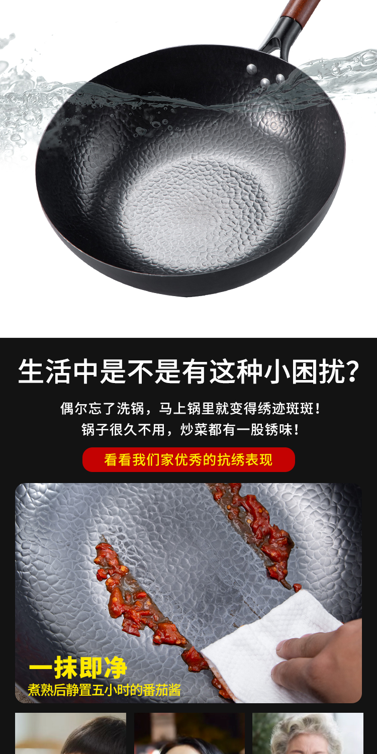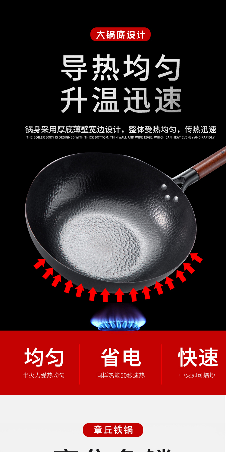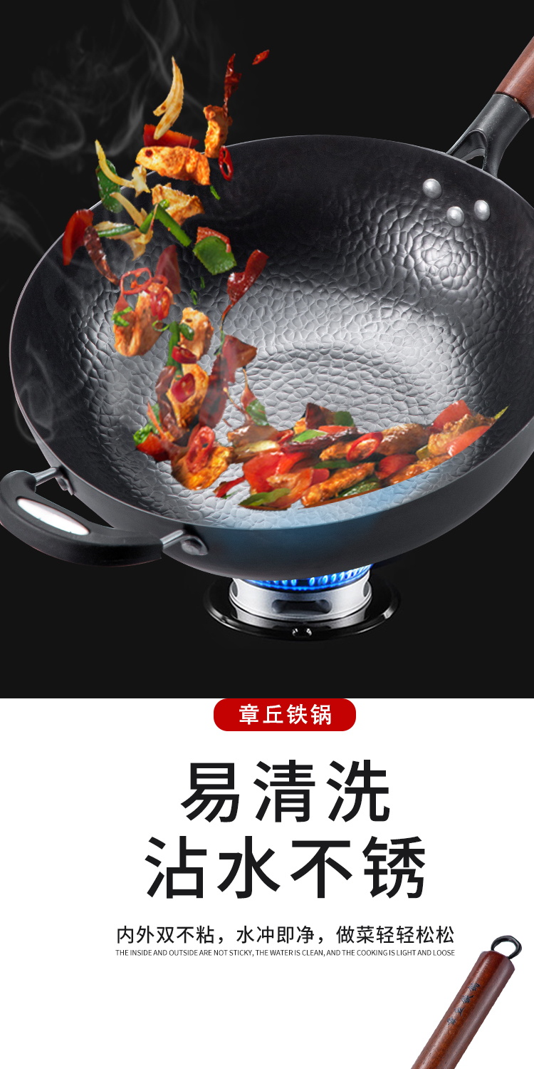 Zhangqiu 구식 수제 철 냄비 가정용 비 스틱 Wok 코팅되지 않은 가스 스토브 특수 유도 쿠커 플랫 왕 타오 원스토어 가기
