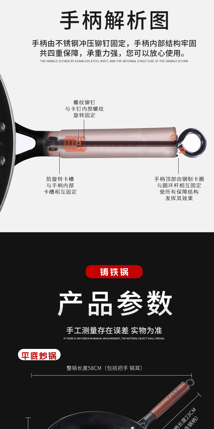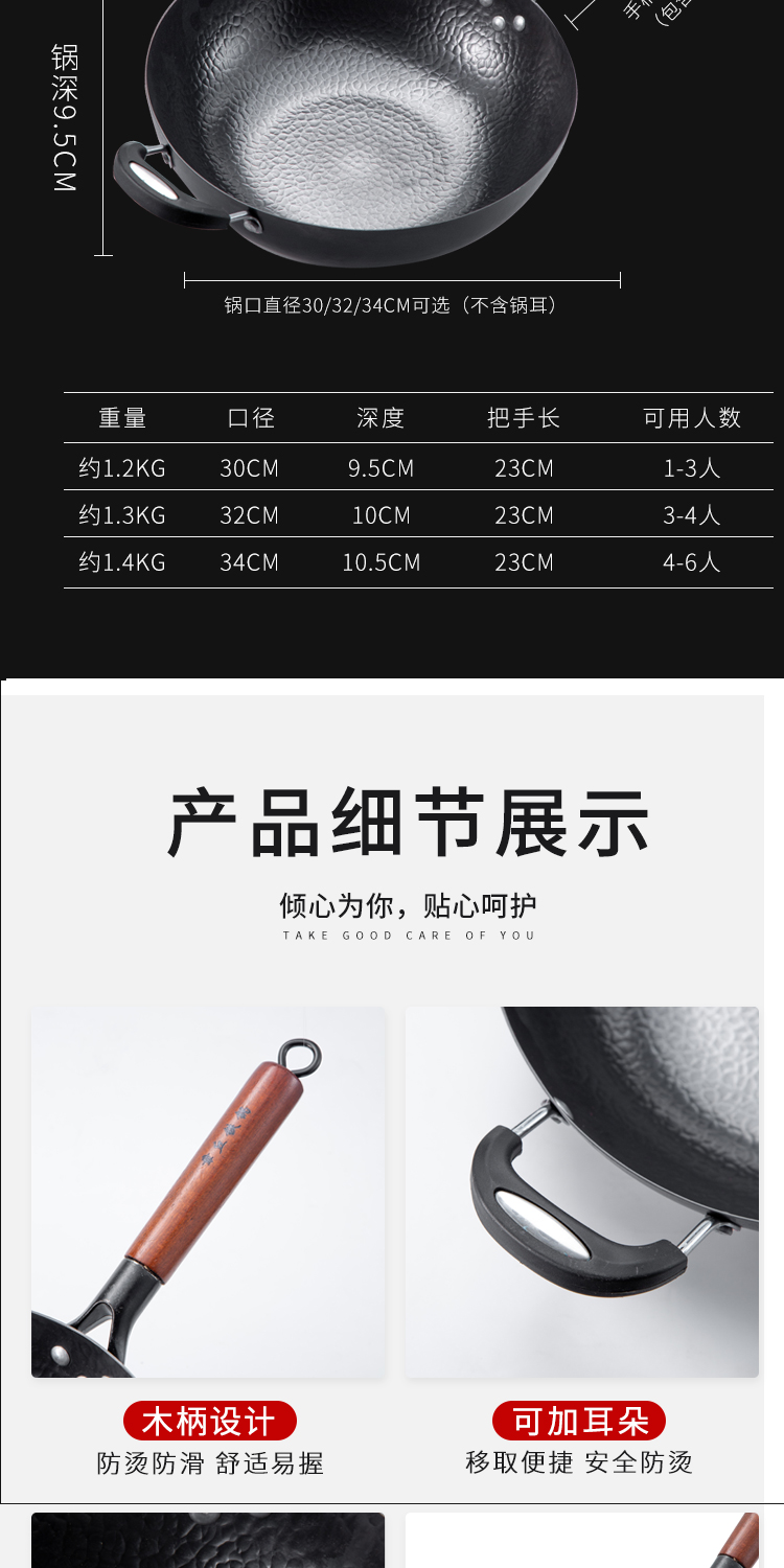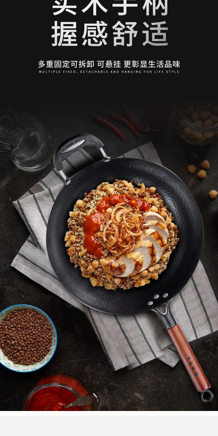 Zhangqiu 구식 수제 철 냄비 가정용 비 스틱 Wok 코팅되지 않은 가스 스토브 특수 유도 쿠커 플랫 왕 타오 원스토어 가기
