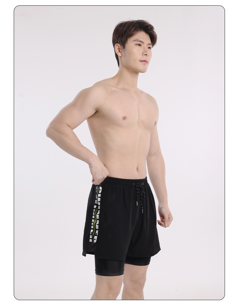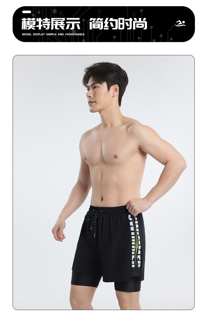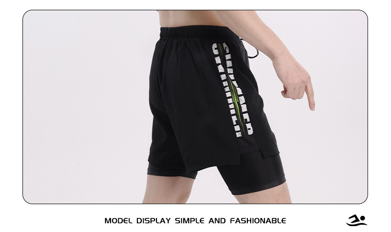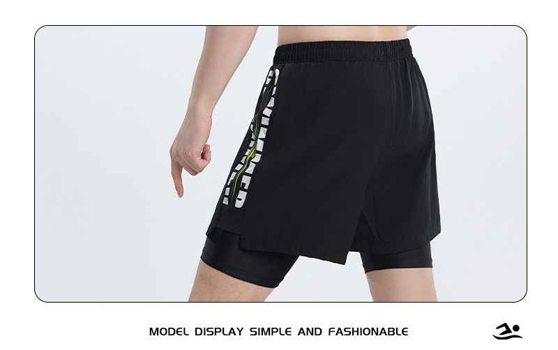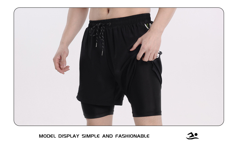 수영 트렁크 남성 수영 트렁크 빠른 건조 이중층 수영 트렁크 안티 당황스러운 수영 복서 세트 비치 바지 온천 수영 트렁크