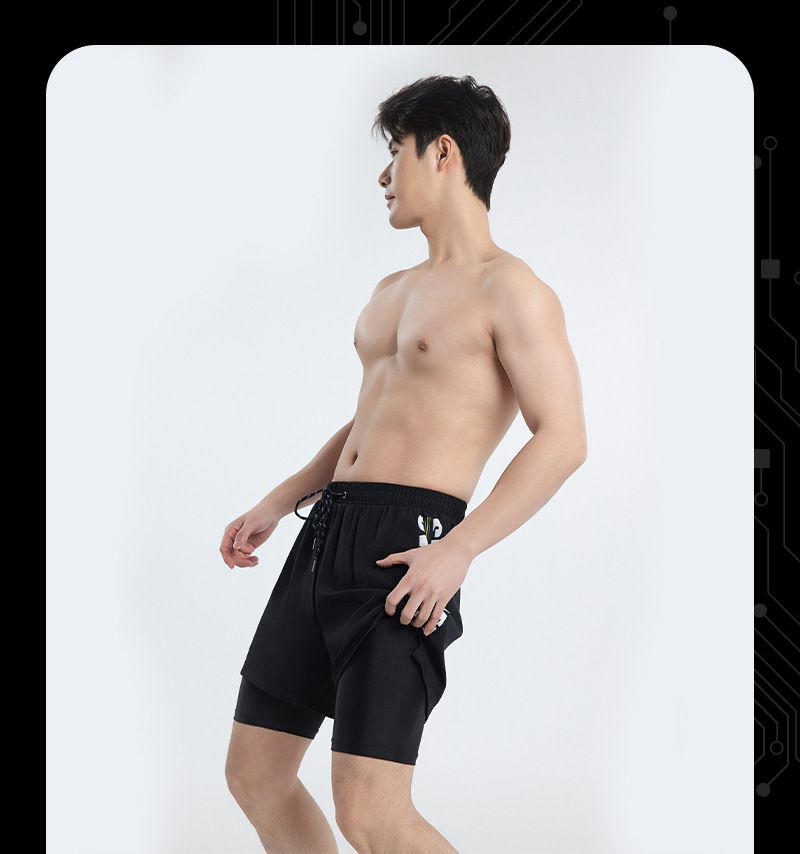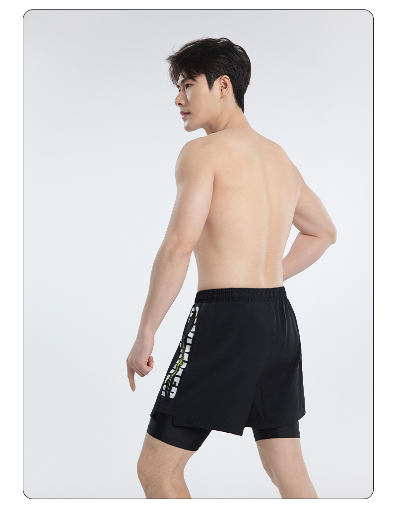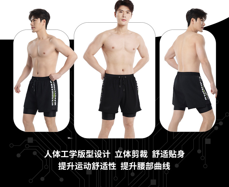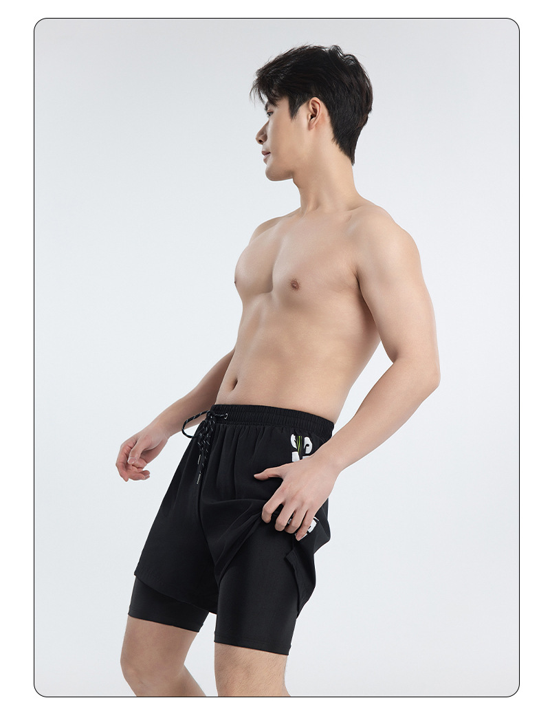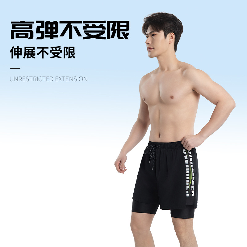 수영 트렁크 남성 수영 트렁크 빠른 건조 이중층 수영 트렁크 안티 당황스러운 수영 복서 세트 비치 바지 온천 수영 트렁크