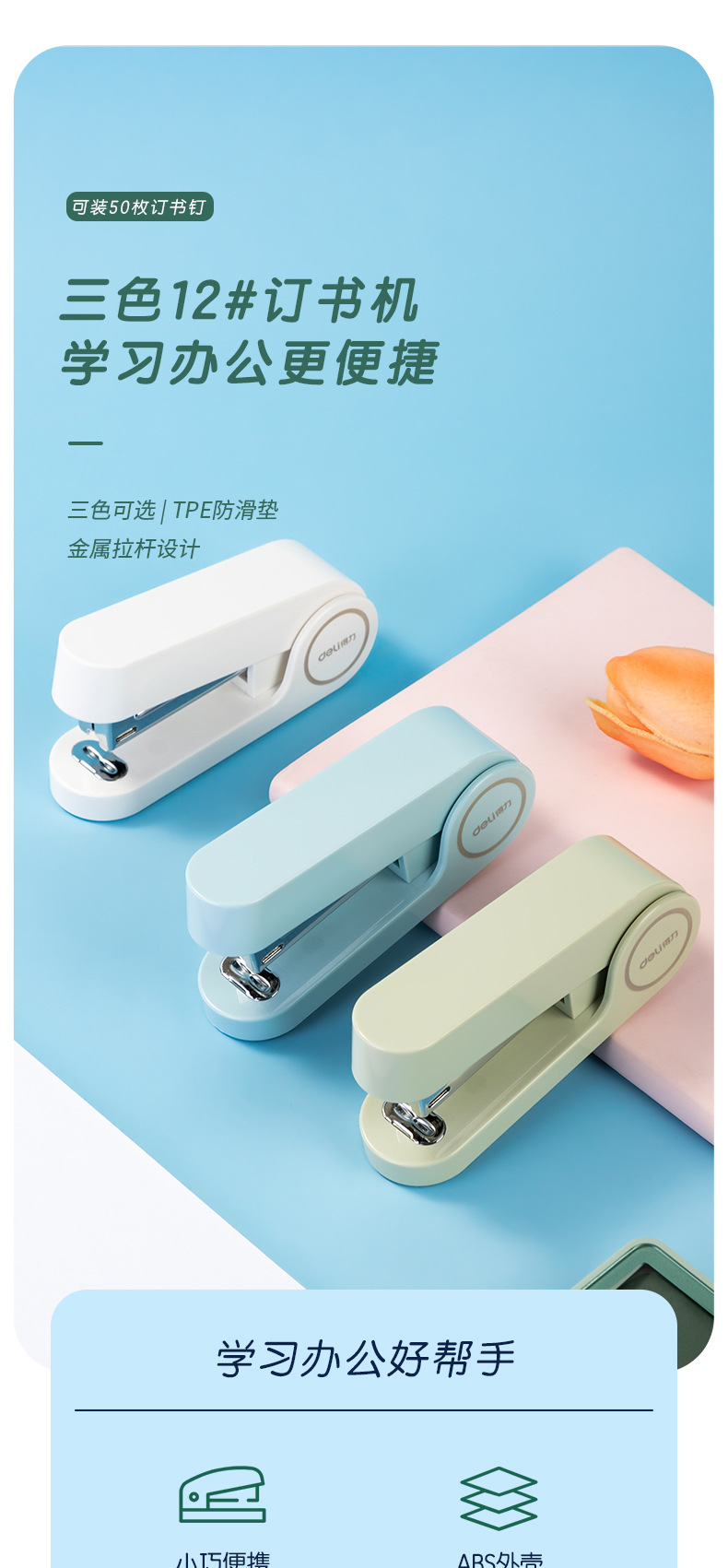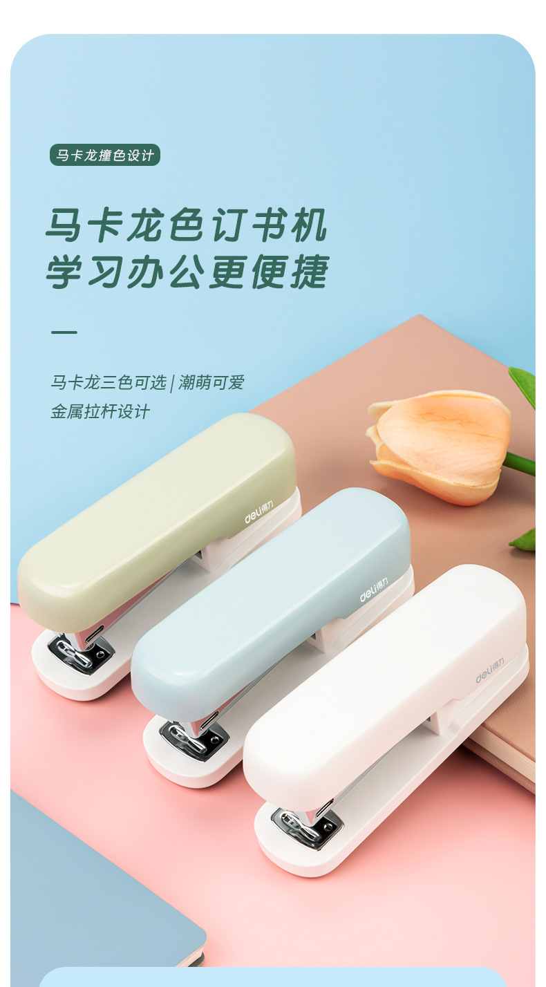 Deli Macaron 스테이플러 12 # 스몰 사이즈 사무용품 미끄럼 방지 스테이플러 학습 문구 도매 스테이플러