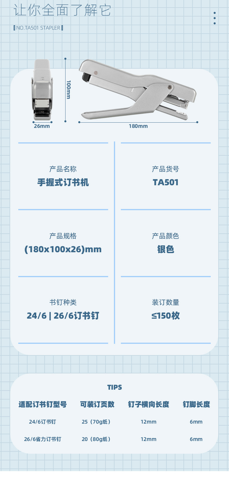 • TA501 휴대용 [20페이지 못박기 가능] 실버