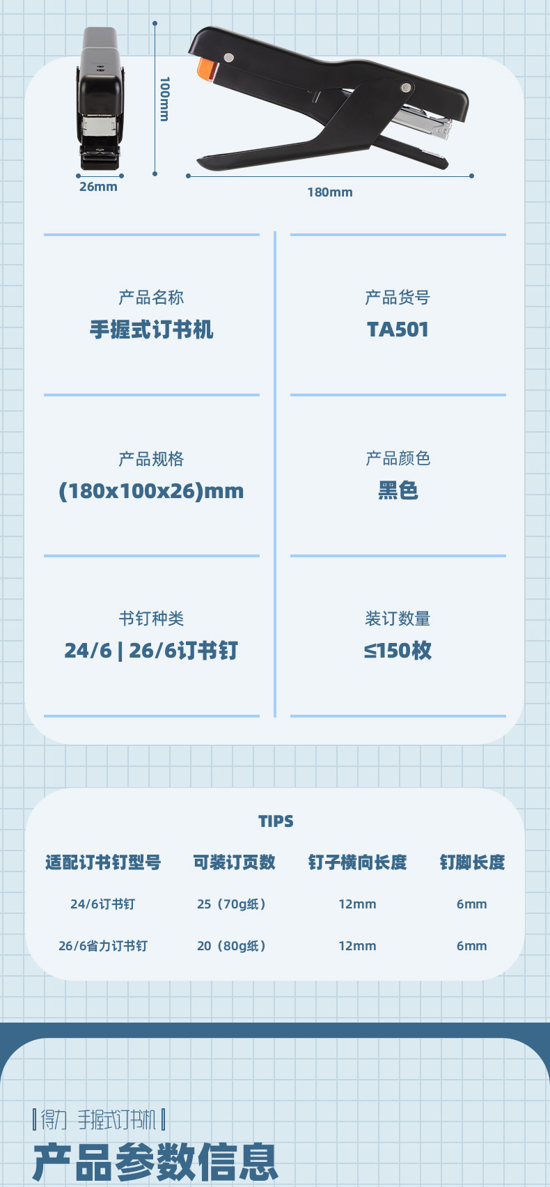 • TA501 휴대용 [20페이지 못박기 가능] 검정색