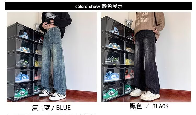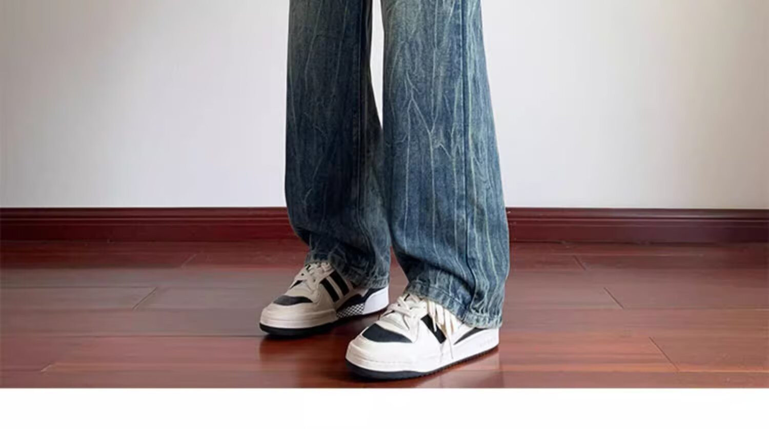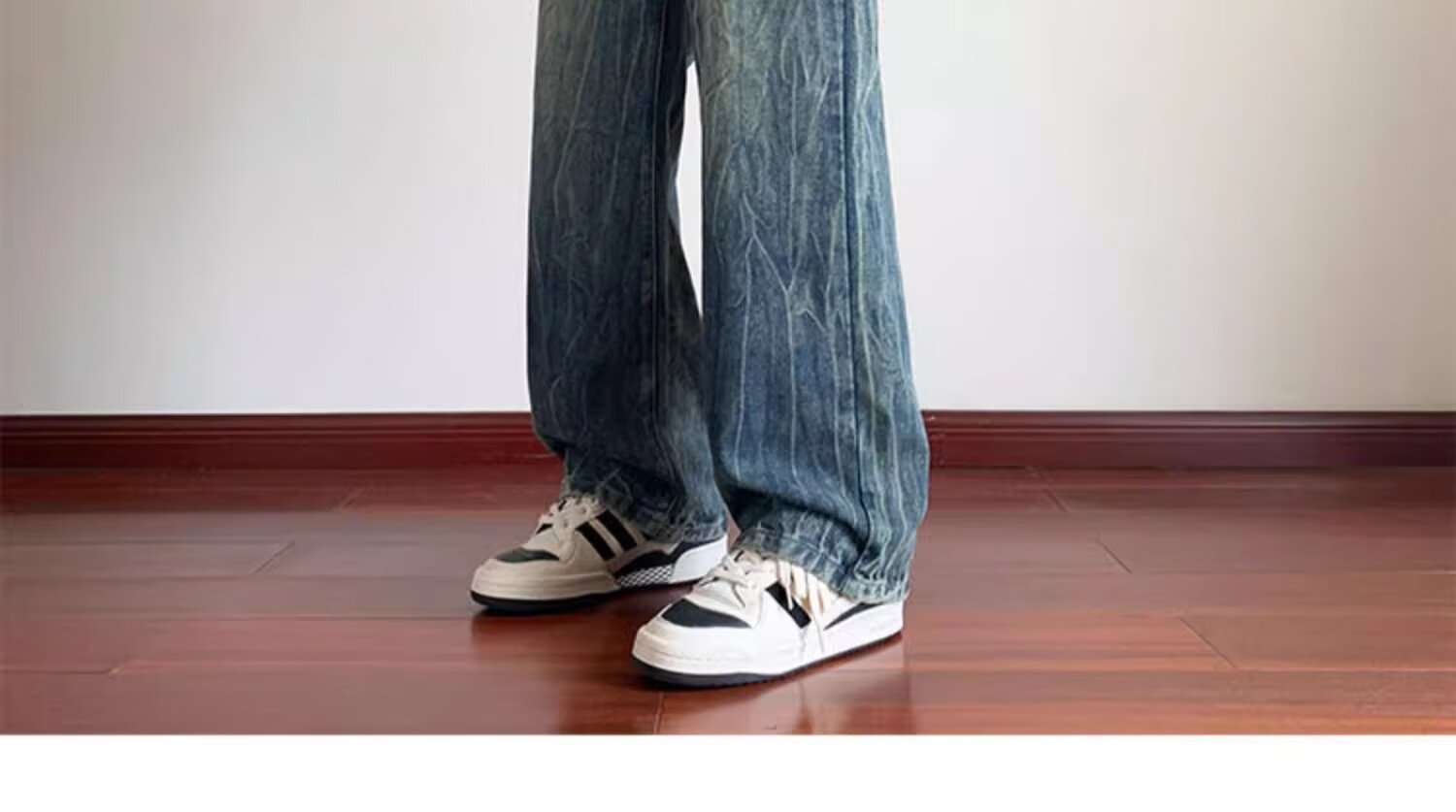 새로운 레트로 클렌핏 청바지 남성 봄 트렌디 브랜드 하이 스트리트 플루튼 핸섬 느슨한 넓은 다리 스트레이트 캐주얼 바지스토어 가기