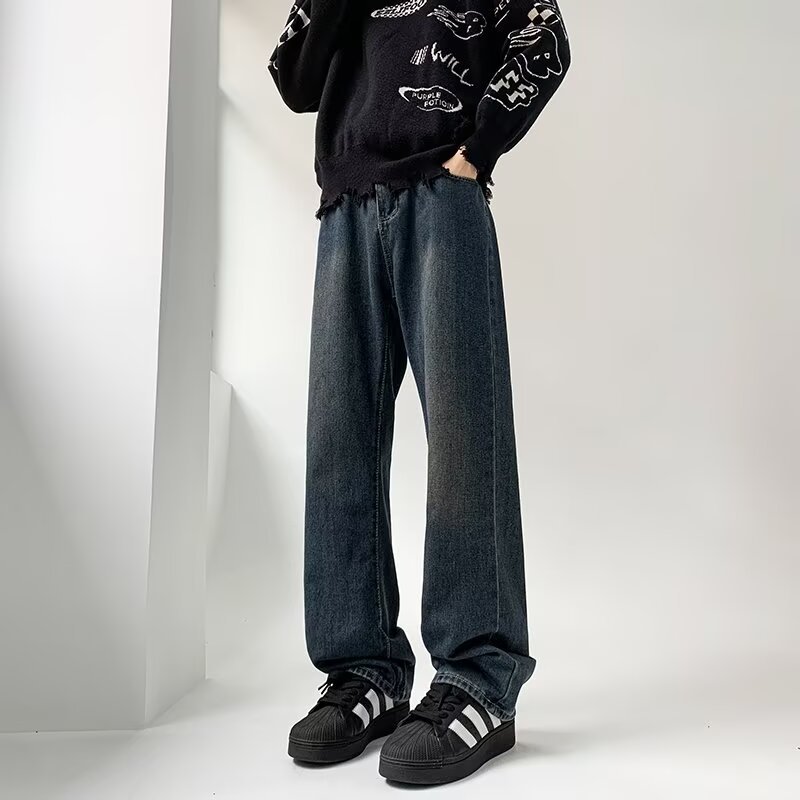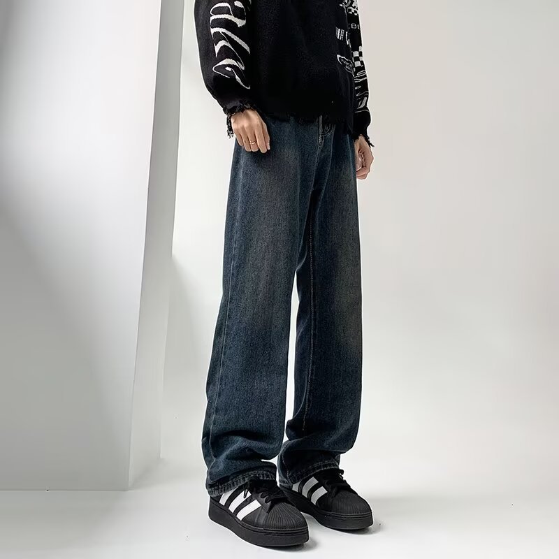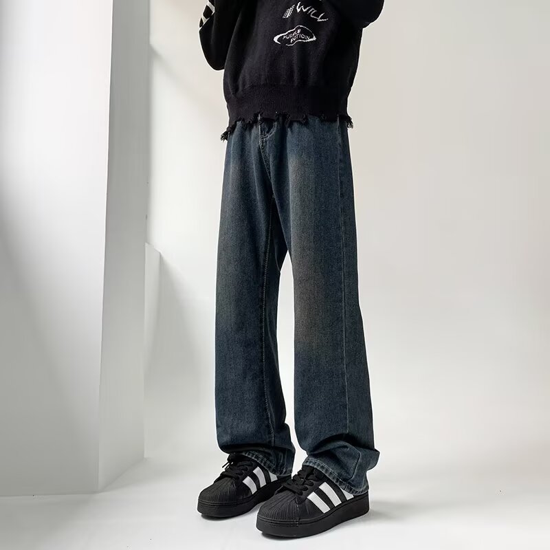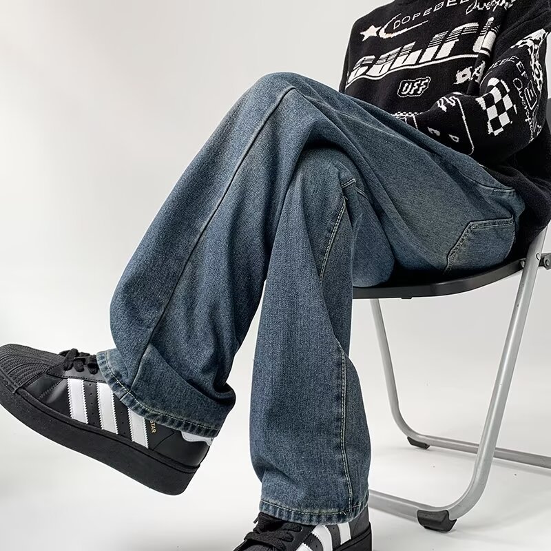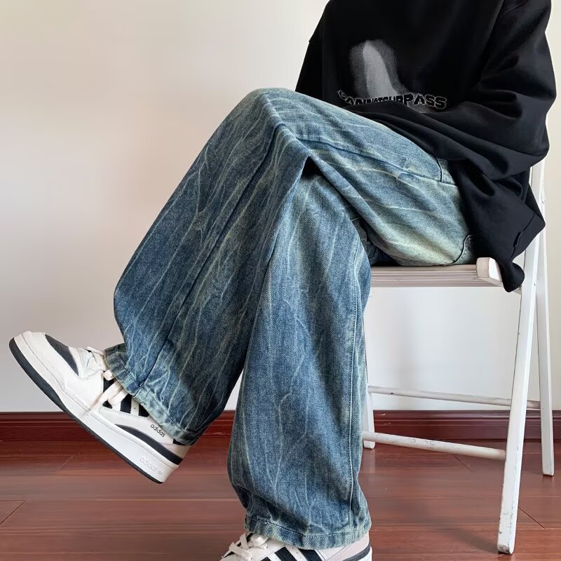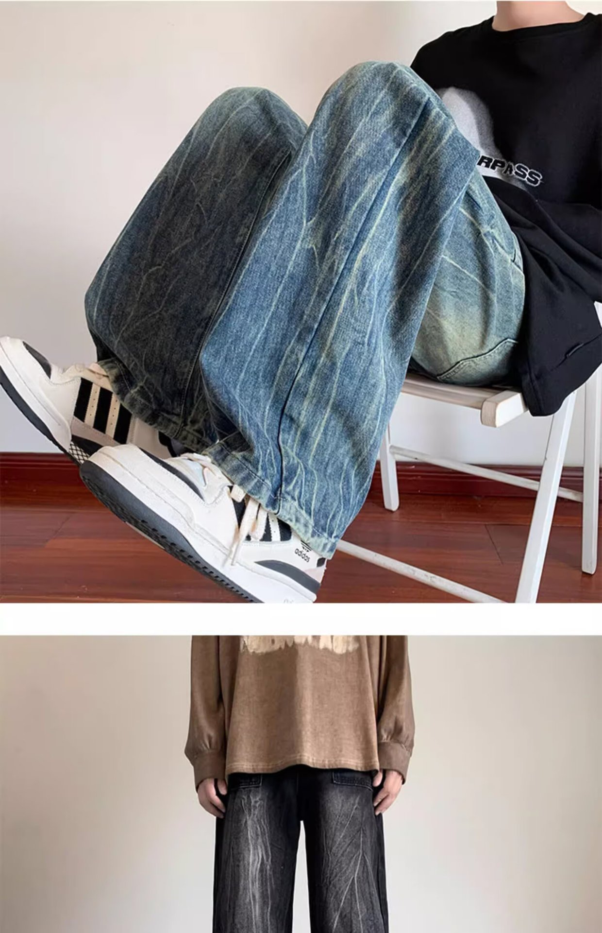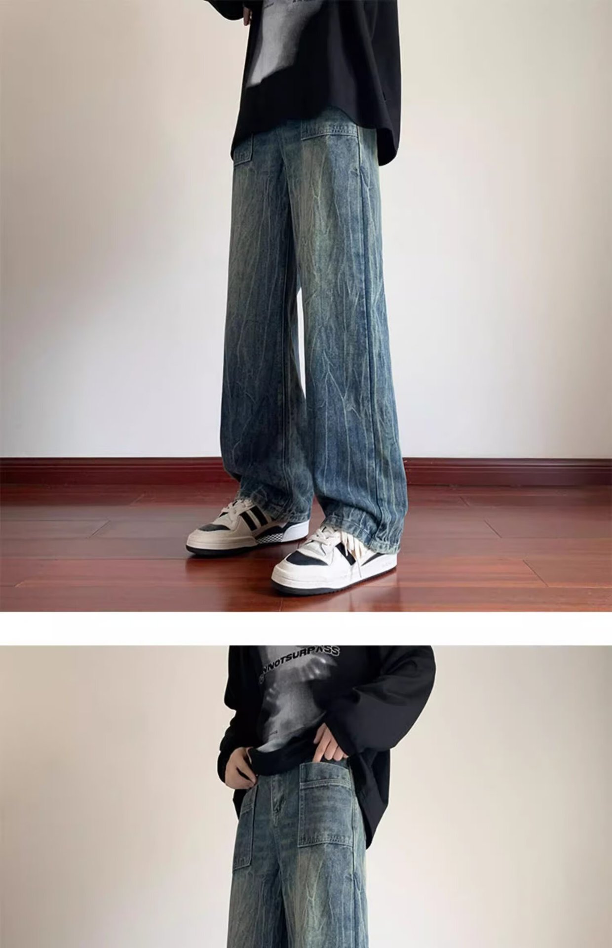 새로운 레트로 클렌핏 청바지 남성 봄 트렌디 브랜드 하이 스트리트 플루튼 핸섬 느슨한 넓은 다리 스트레이트 캐주얼 바지