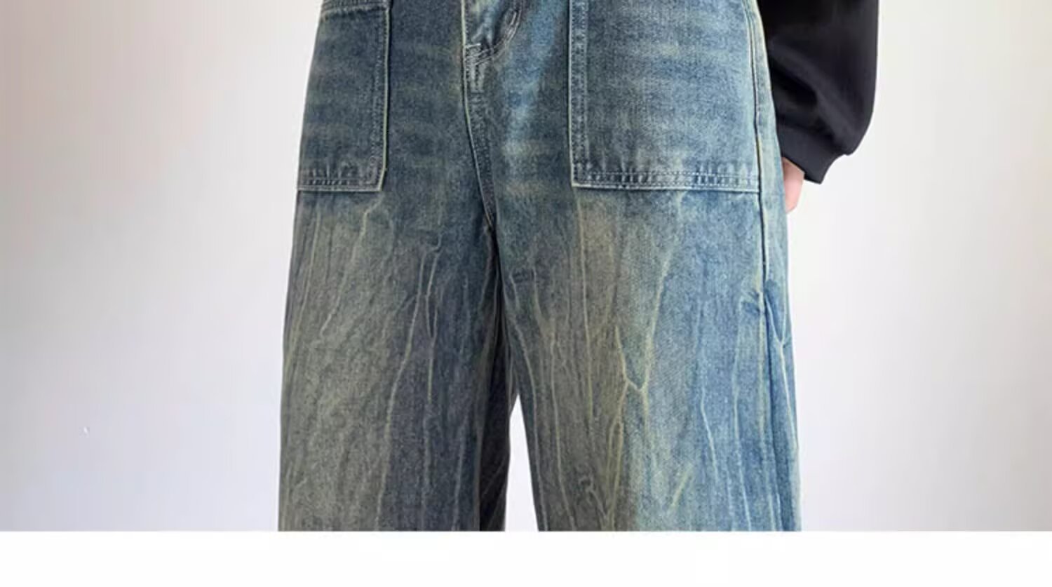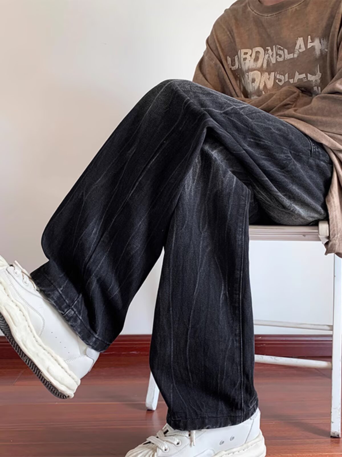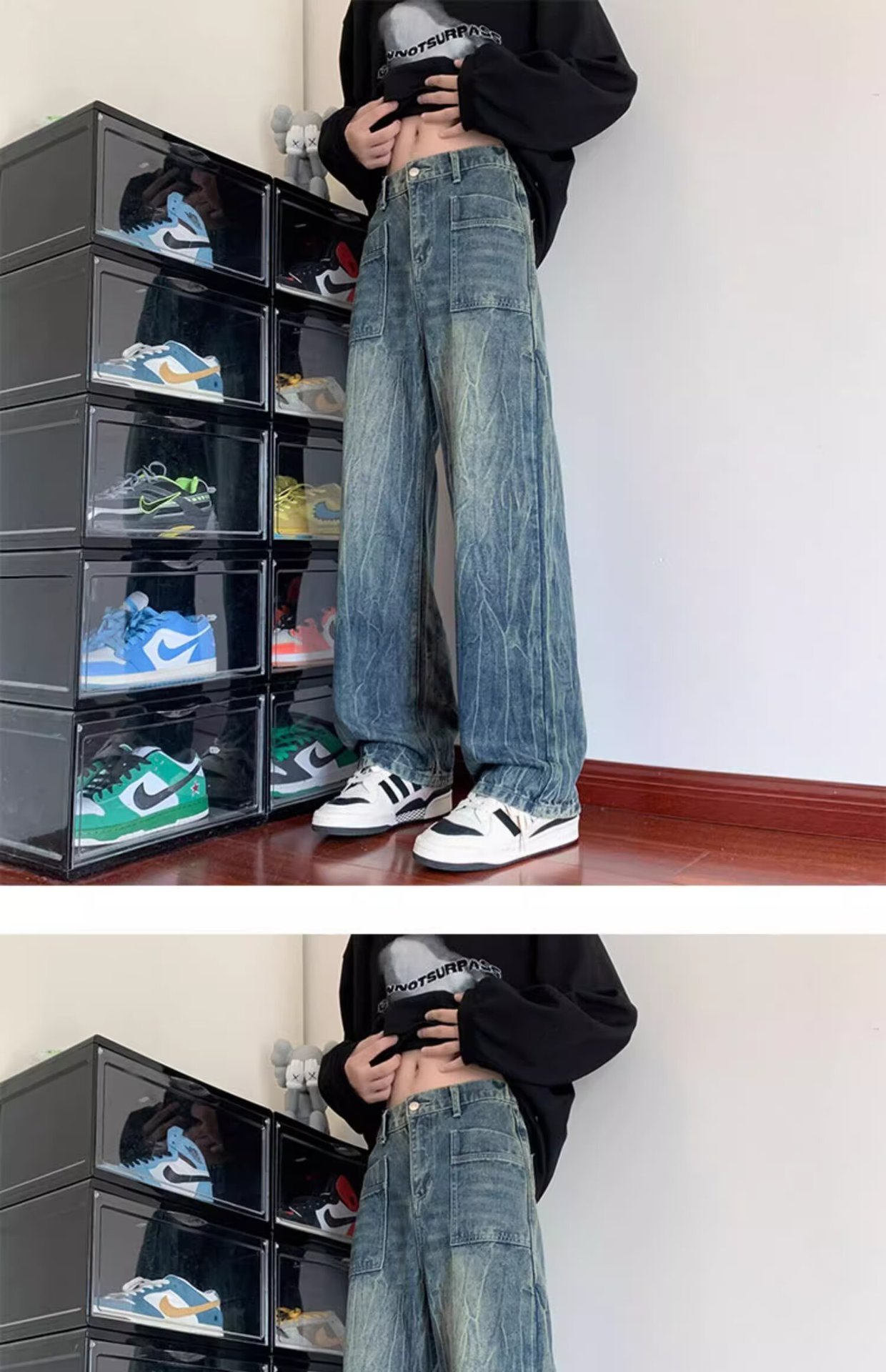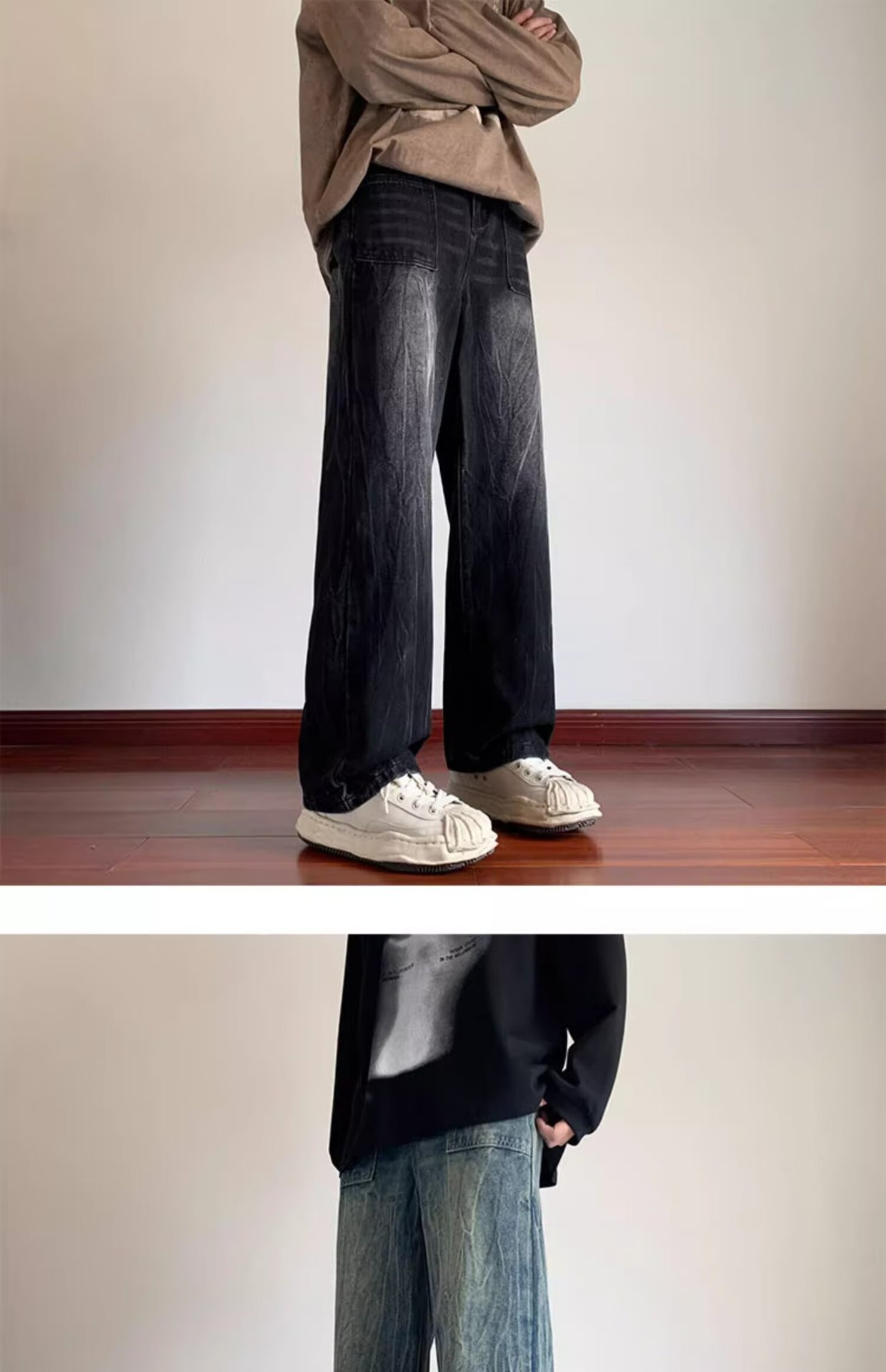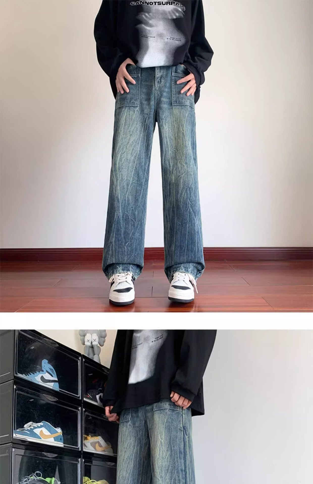 새로운 레트로 클렌핏 청바지 남성 봄 트렌디 브랜드 하이 스트리트 플루튼 핸섬 느슨한 넓은 다리 스트레이트 캐주얼 바지