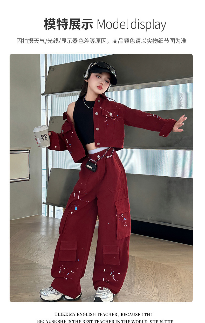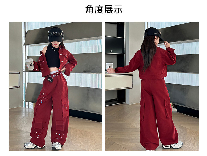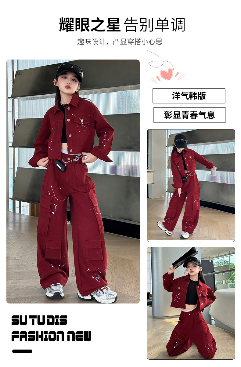 앙골라 소녀 봄과 가을 세트 한국 패션 소녀 서양식 렌더링 붉은 큰 아이들 세트 2025 데님스토어 가기