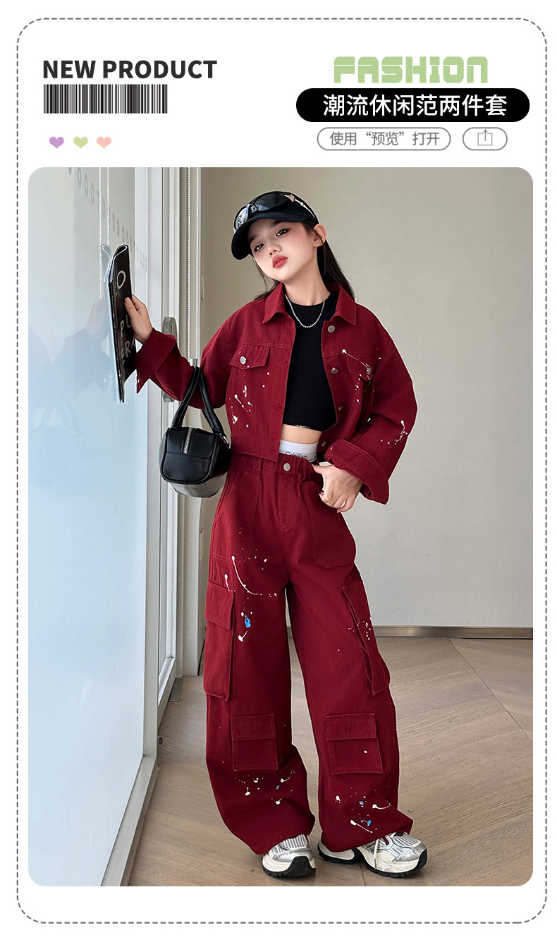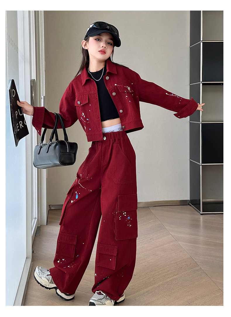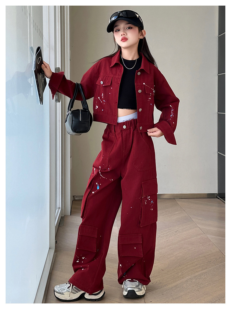 앙골라 소녀 봄과 가을 세트 한국 패션 소녀 서양식 렌더링 붉은 큰 아이들 세트 2025 데님