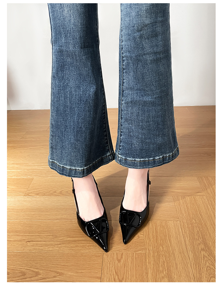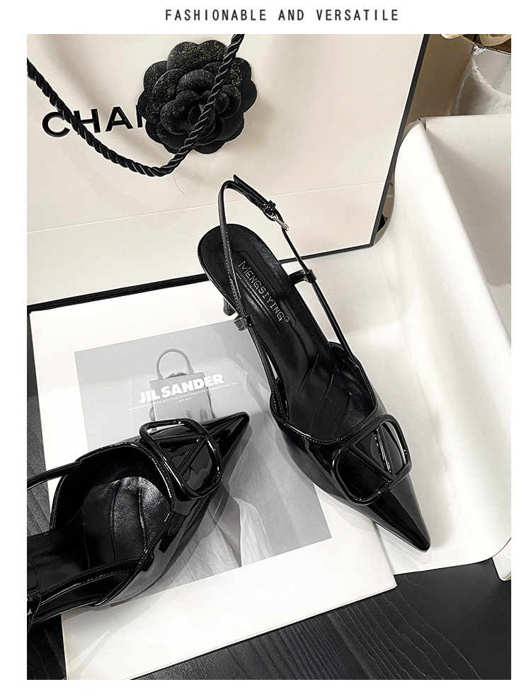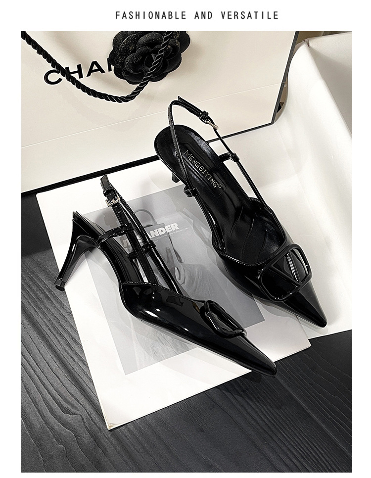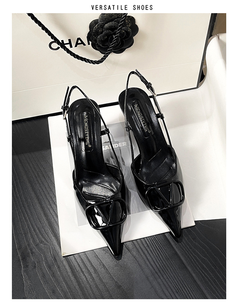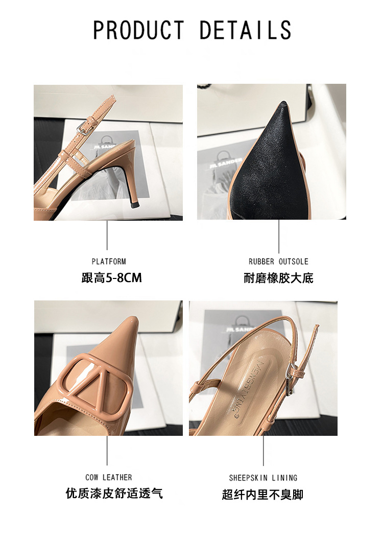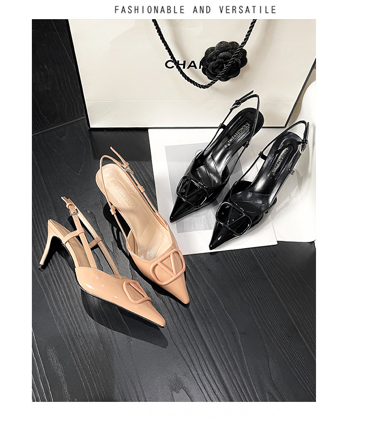 누드 하이힐 여성 2025 년 봄과 여름 새로운 프랑스 뾰족한 V-버클 하이힐 후면 빈 스틸레토 우아한 샌들