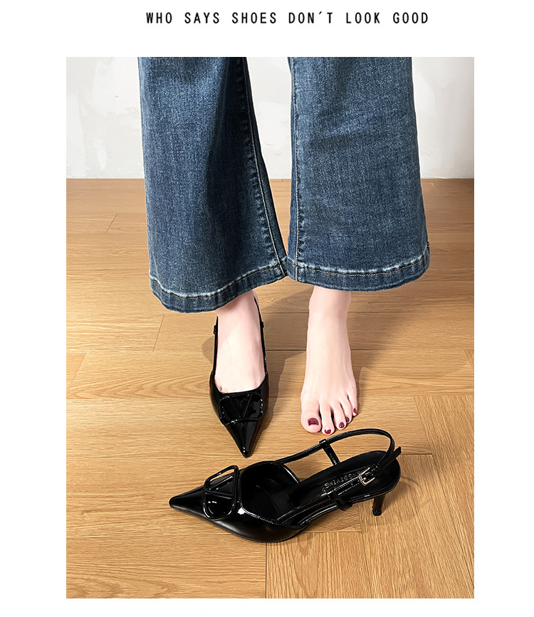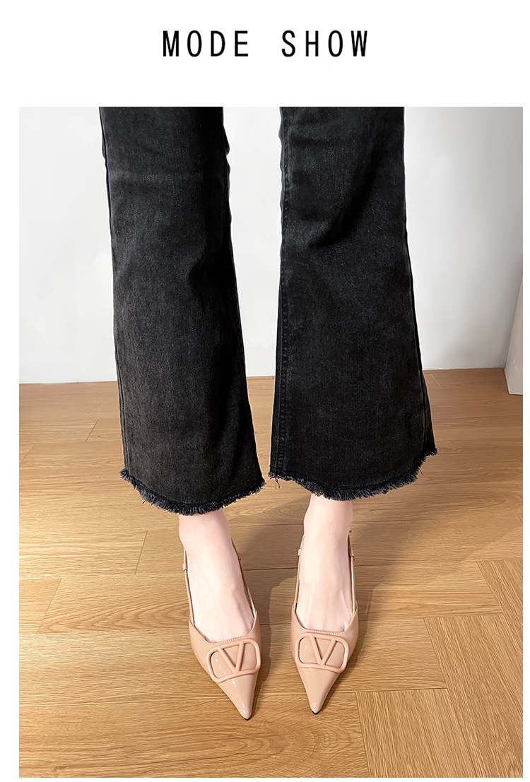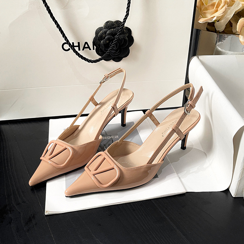 누드 하이힐 여성 2025 년 봄과 여름 새로운 프랑스 뾰족한 V-버클 하이힐 후면 빈 스틸레토 우아한 샌들스토어 가기