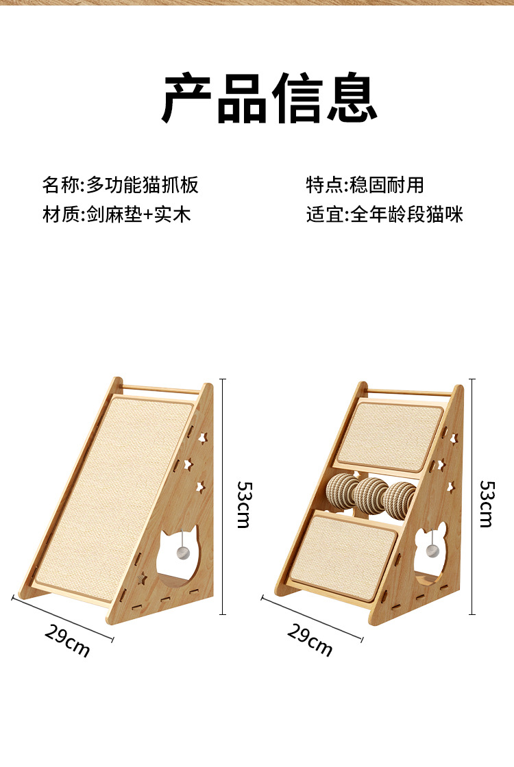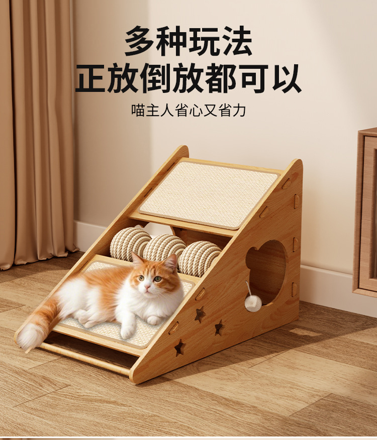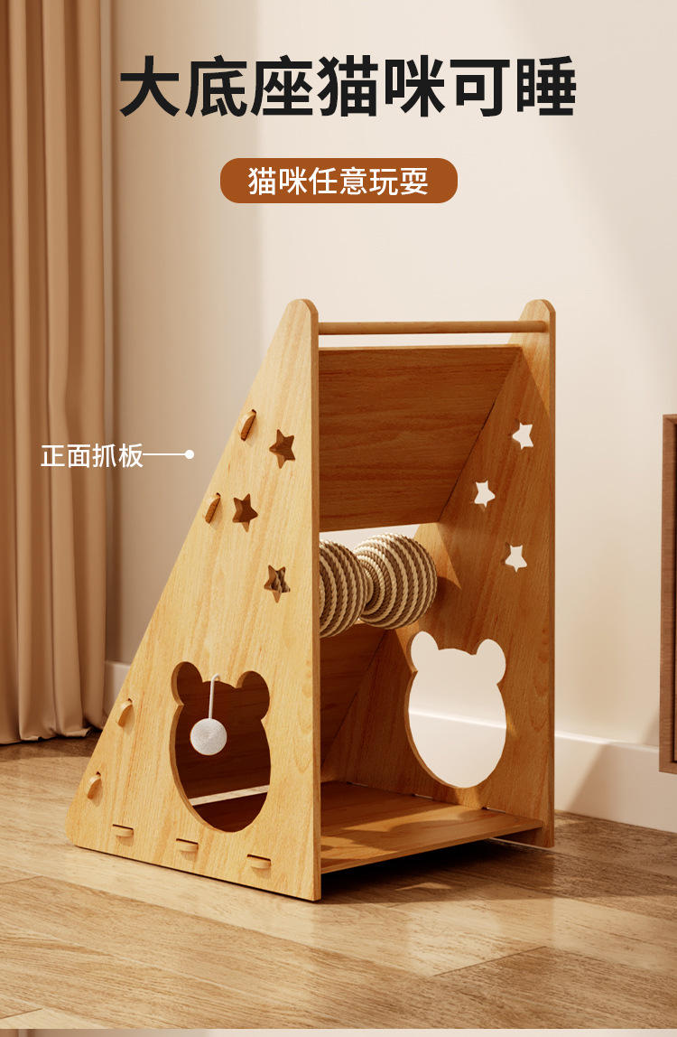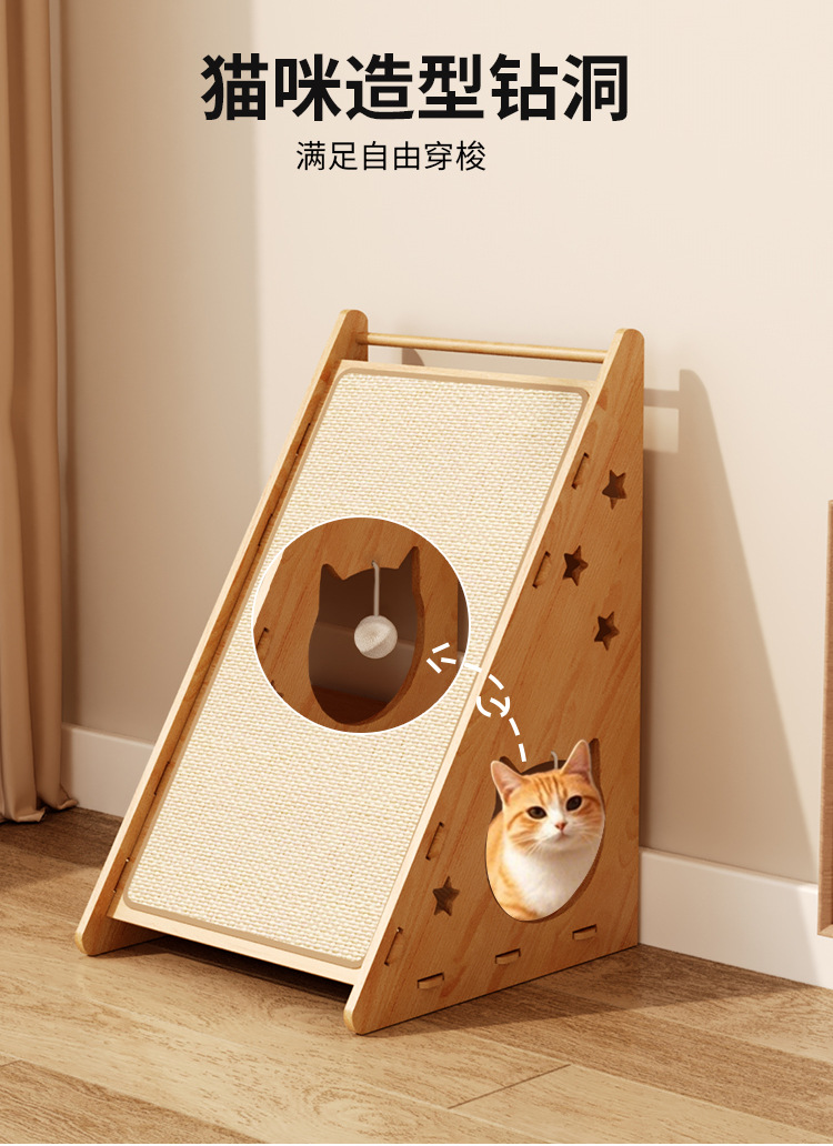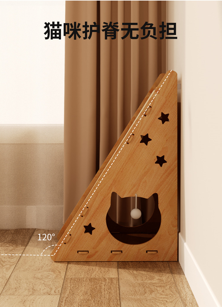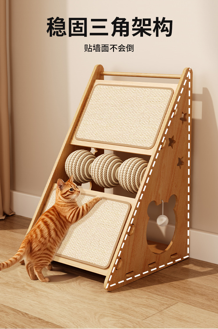 • 공이 있는 수직 삼각형 고양이 긁는 기둥
