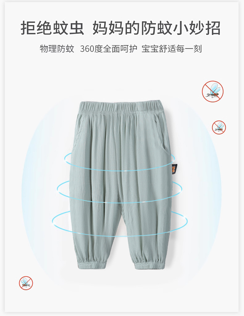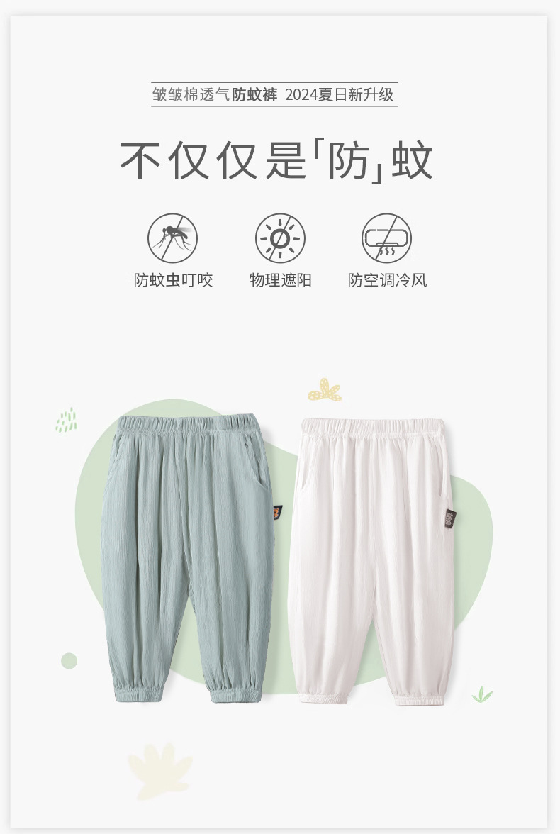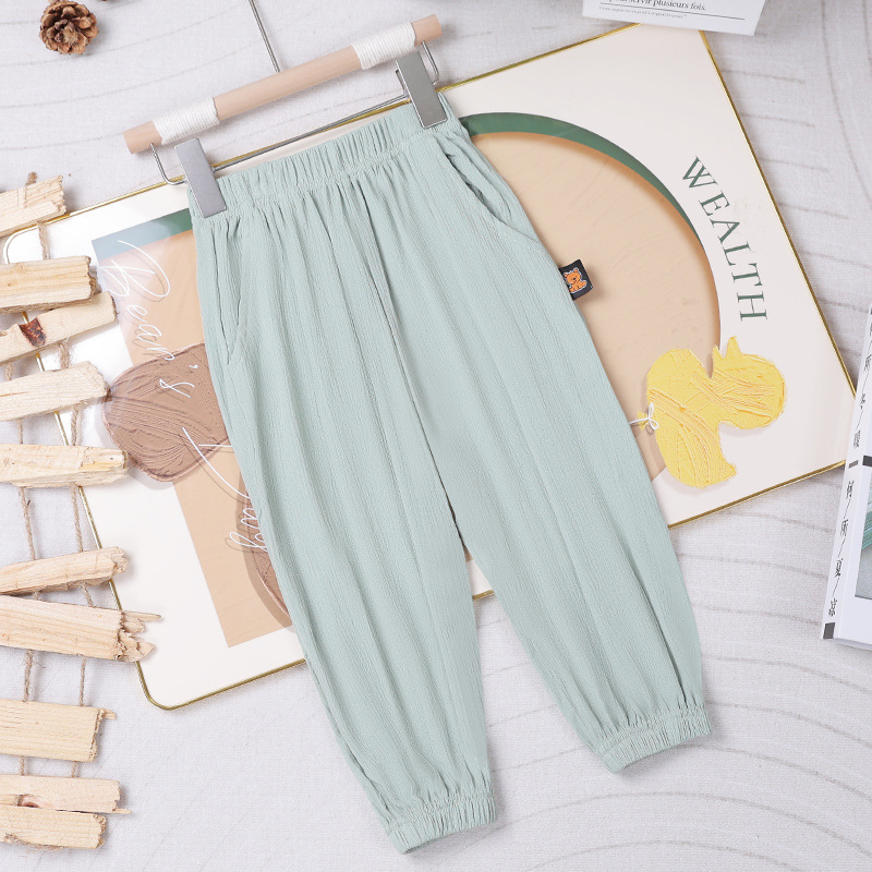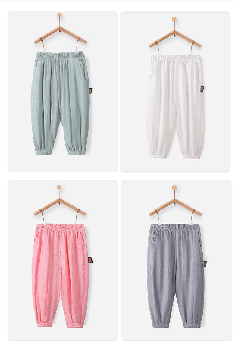 2025 어린이 통기성 단색 포켓 모기 방지 바지 중소 소년 소녀 캐주얼 바지 주름진 발 쿨 바지 배치스토어 가기