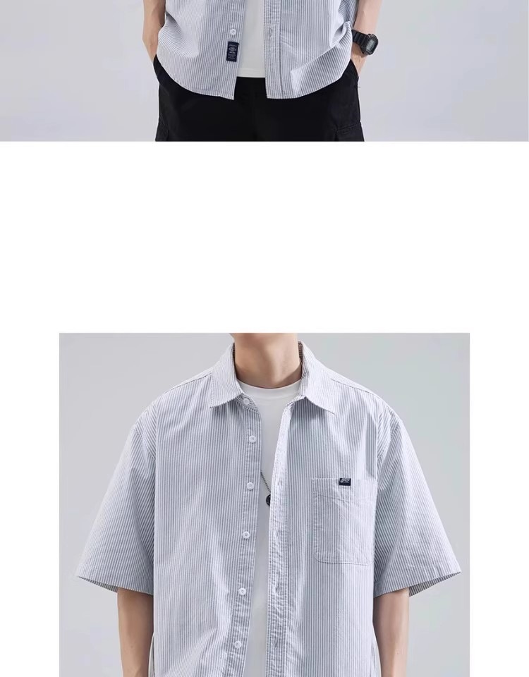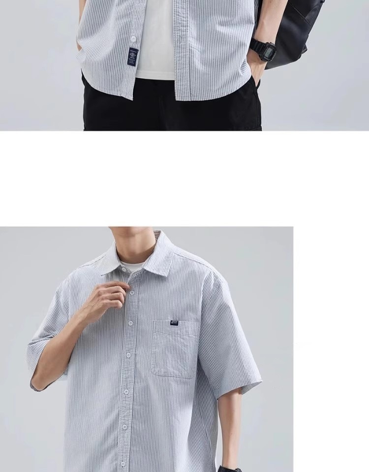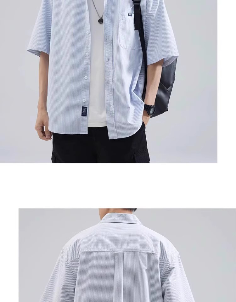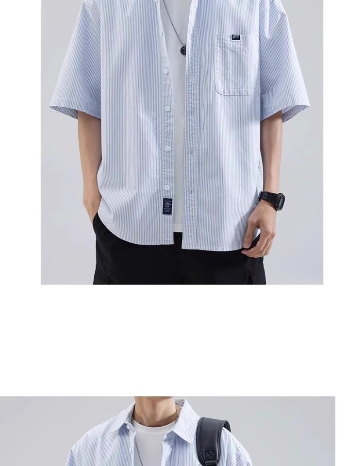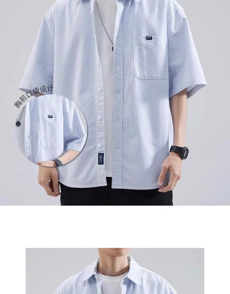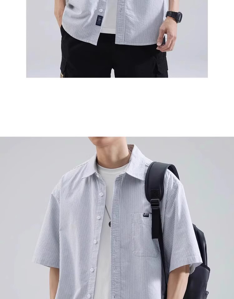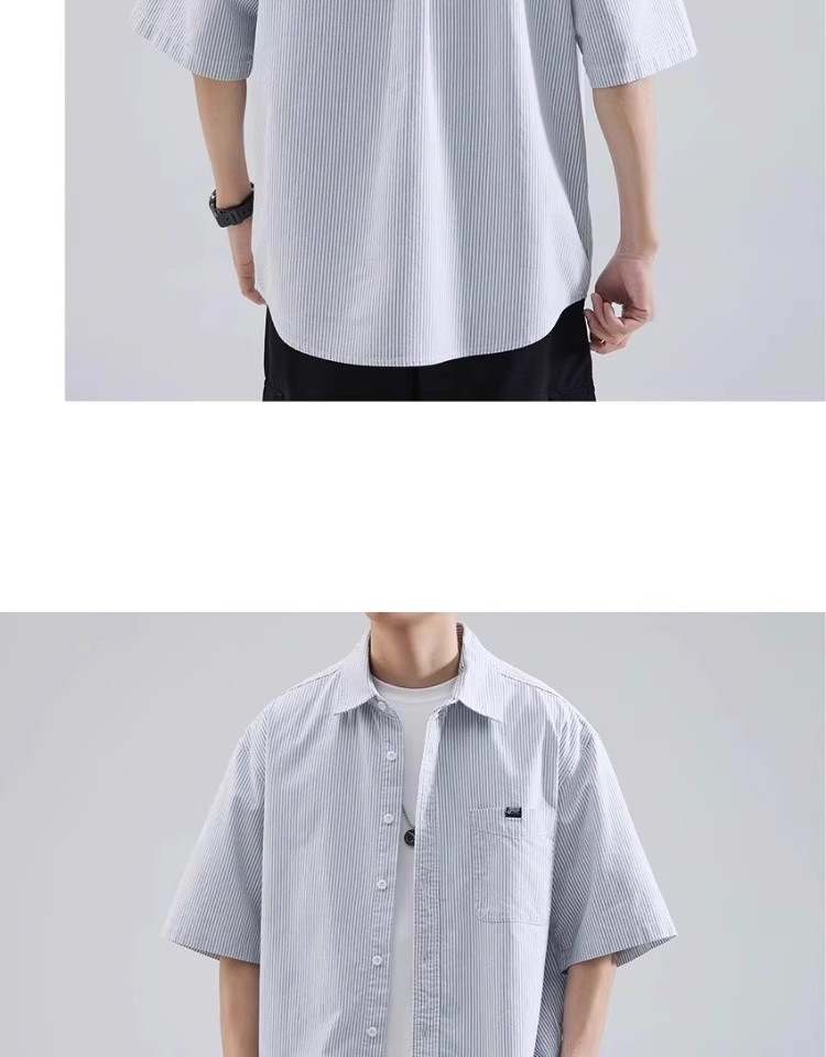 줄무늬 반팔 셔츠 여름 트렌디 한 레트로 느슨한 플러스 사이즈 플러스 사이즈 캐주얼 올 매치 남자 셔츠 재킷 트렌디스토어 가기