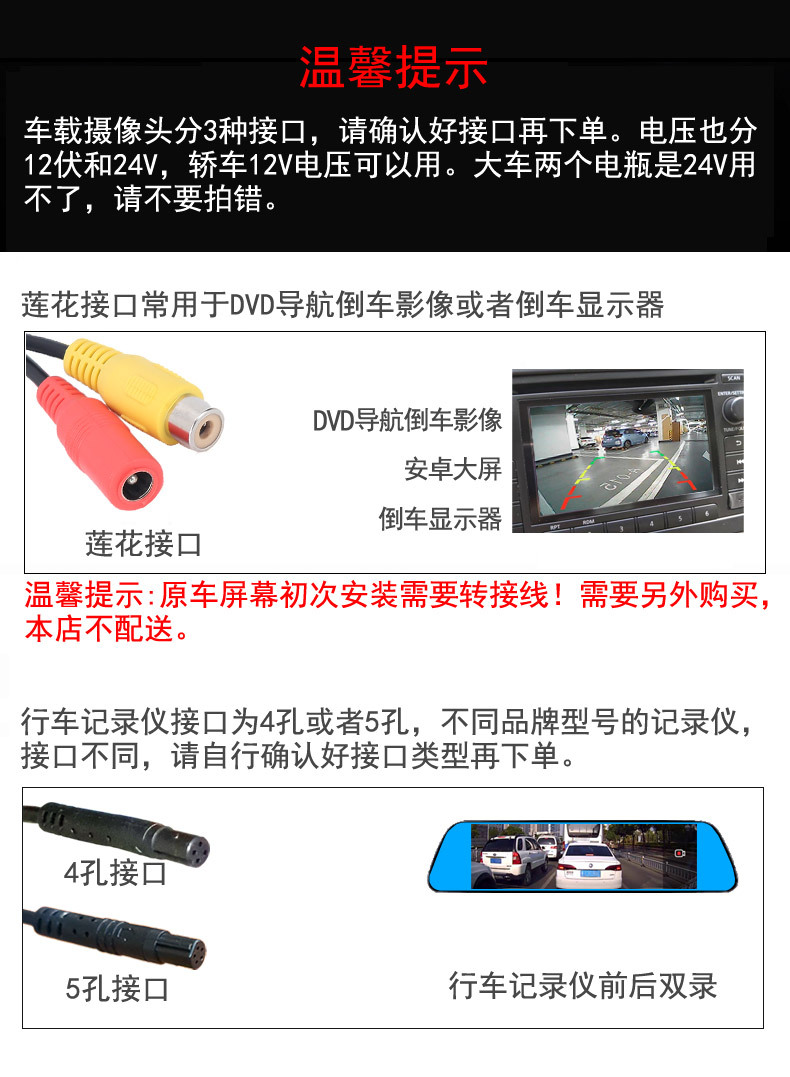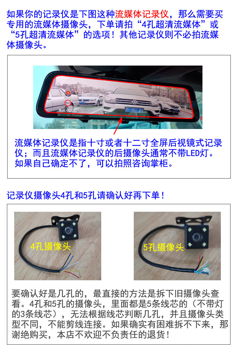 운전 레코더 후방 카메라 HD 반전 카메라 4 구멍 5 홀 전면 및 후면 이중 녹화 이미지 자동차 스트리밍 미디어스토어 가기