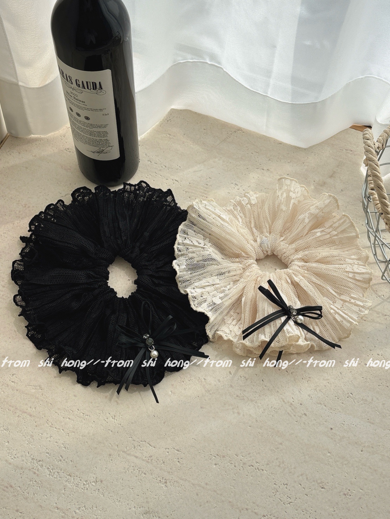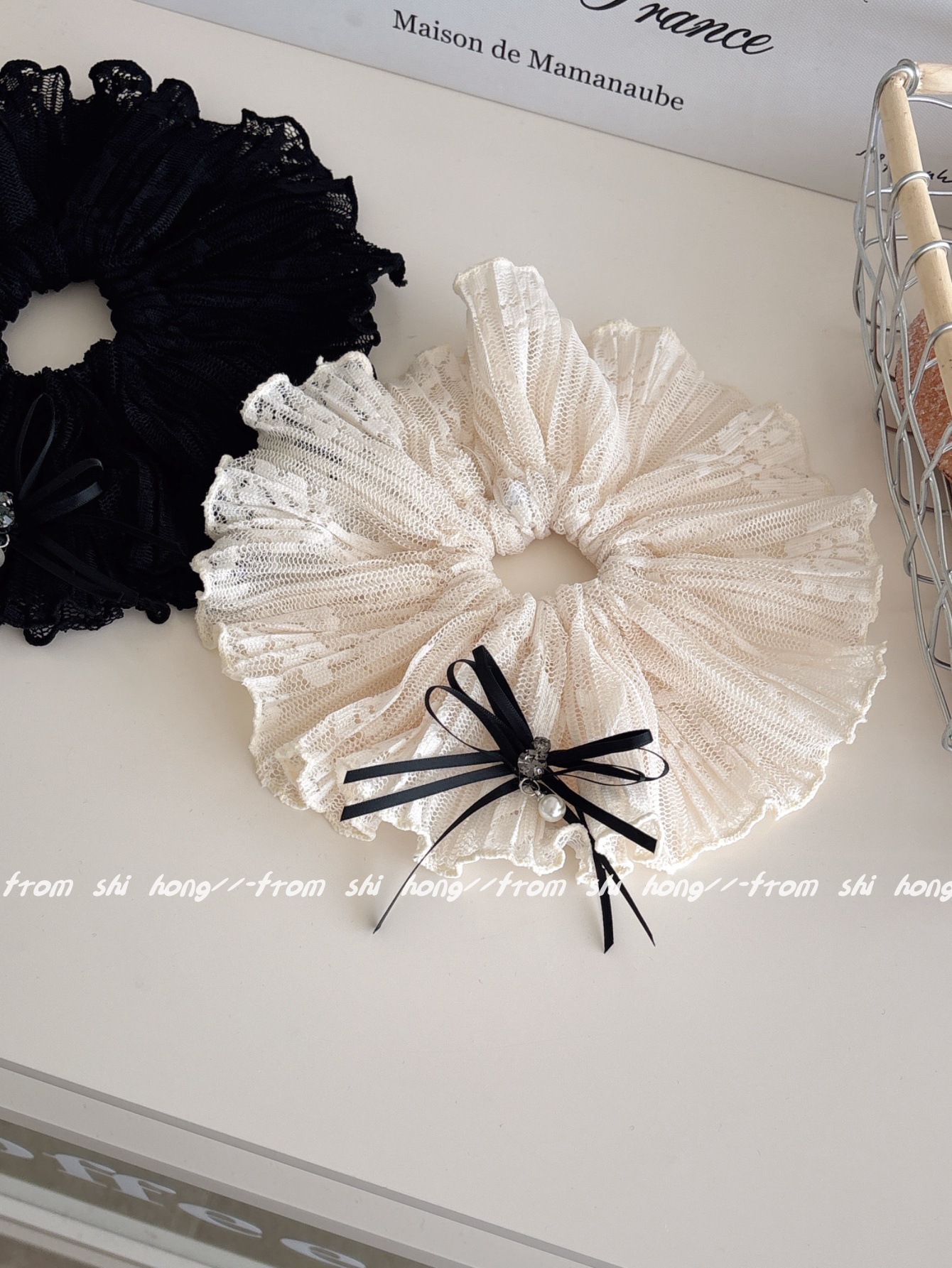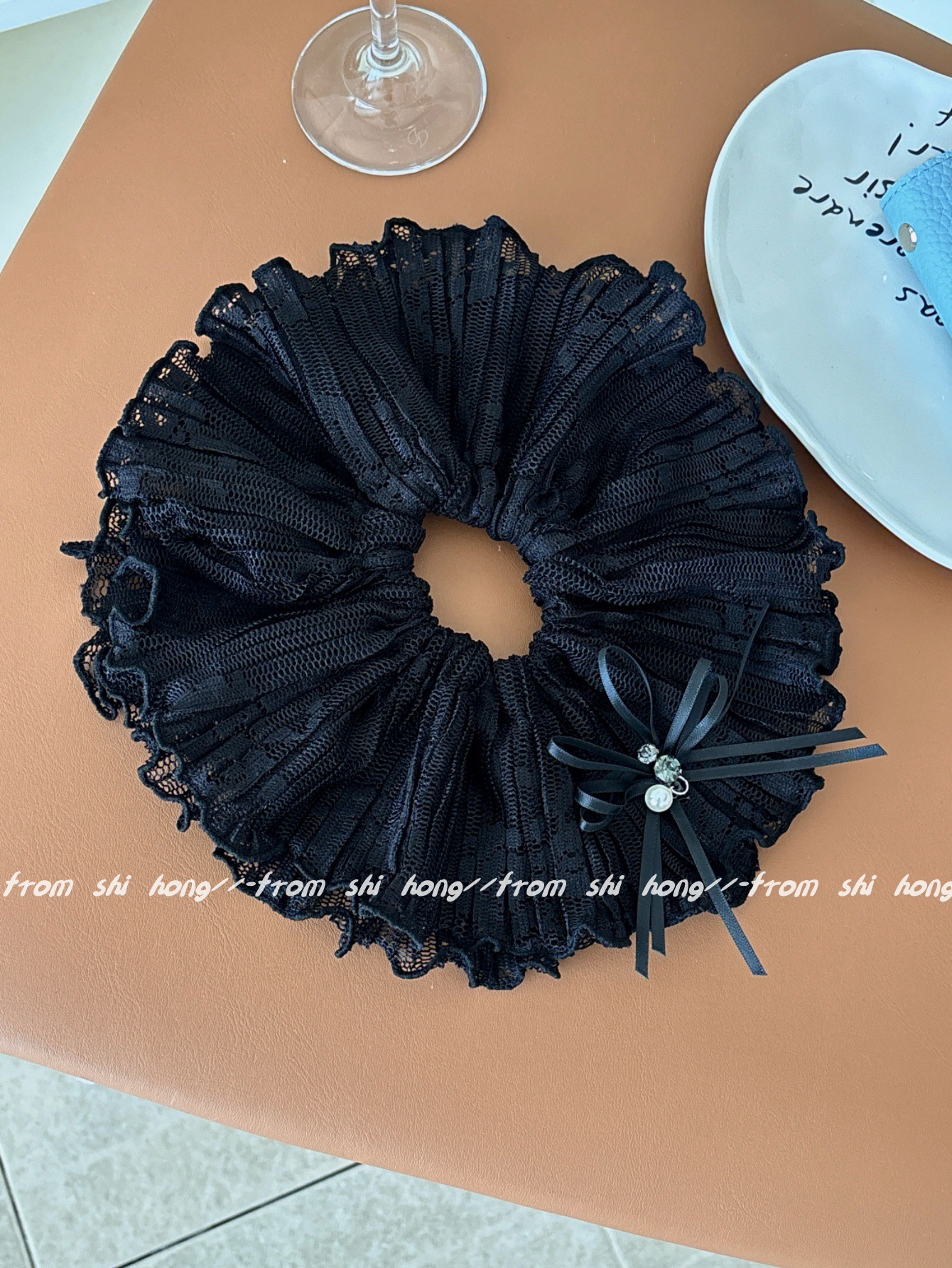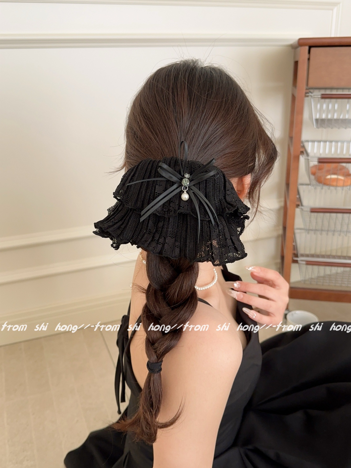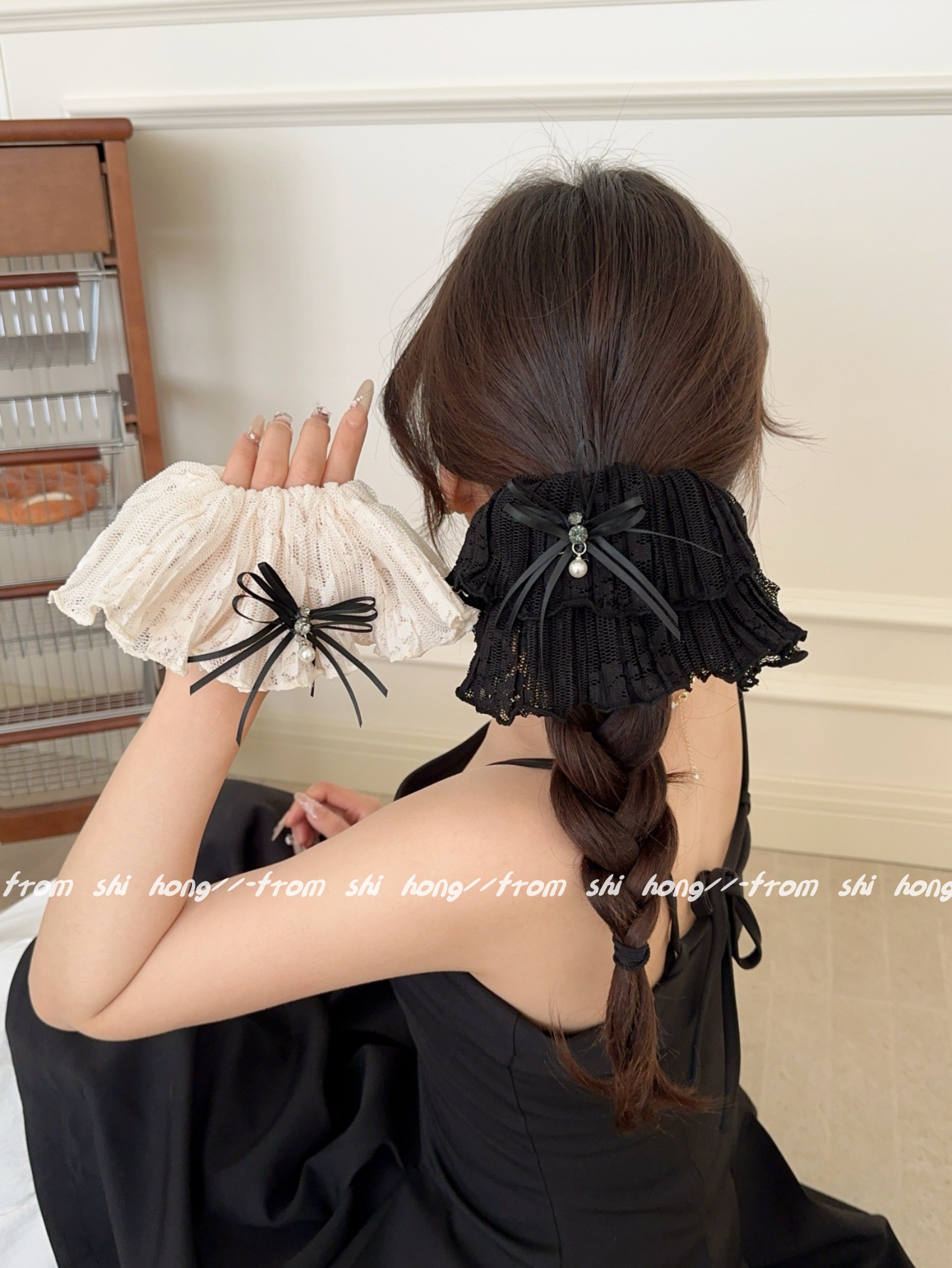 • 블랙 레이스 나비 머리끈
