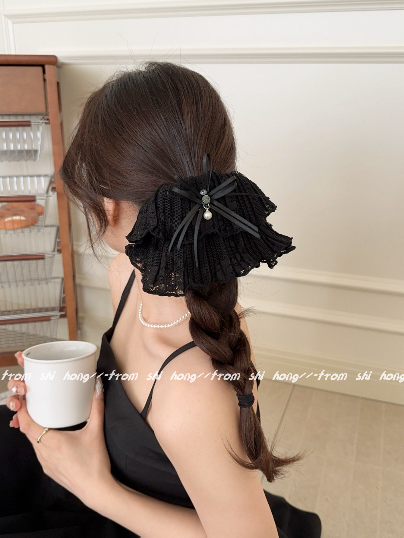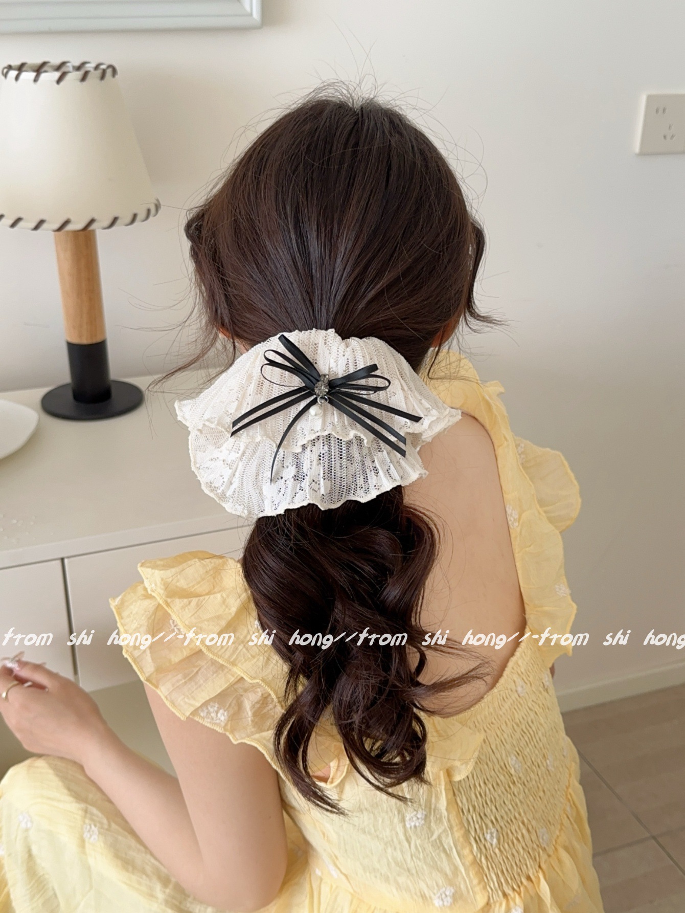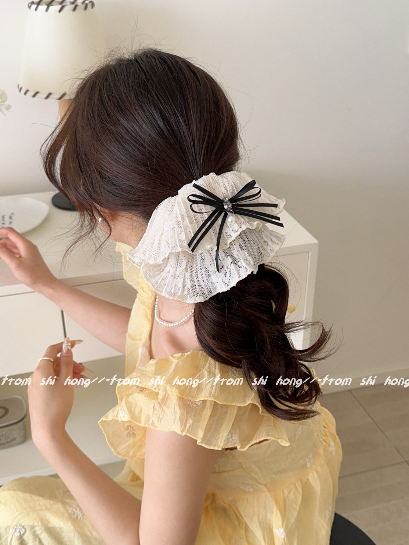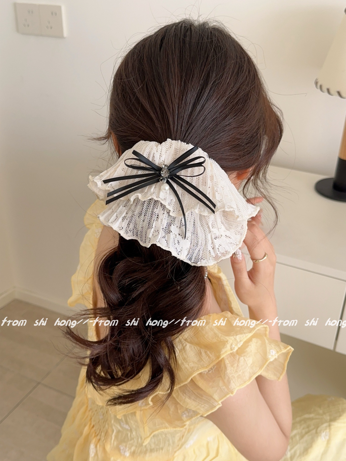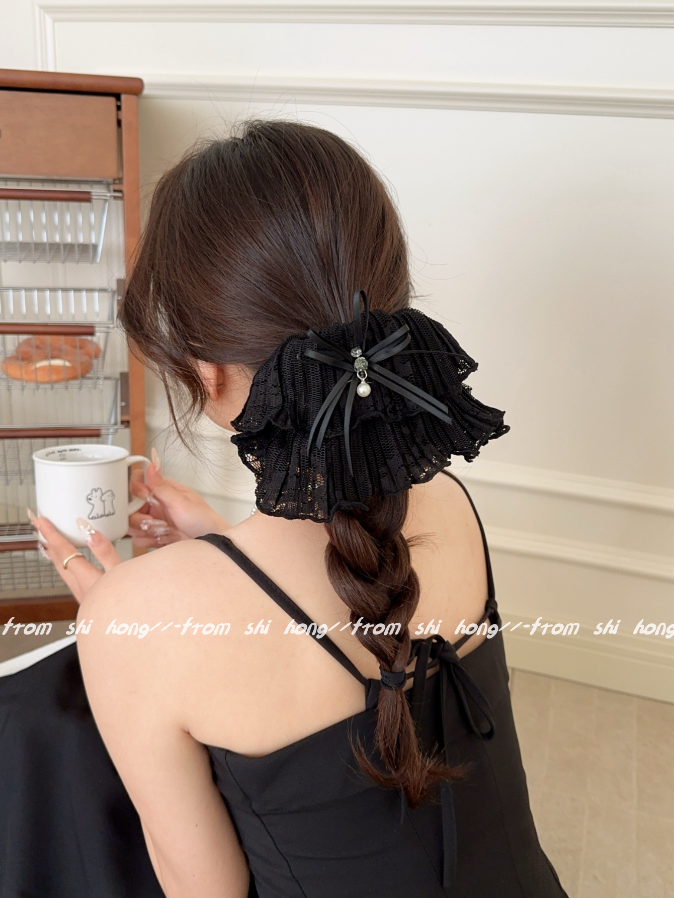 • 블랙 레이스 나비 머리끈