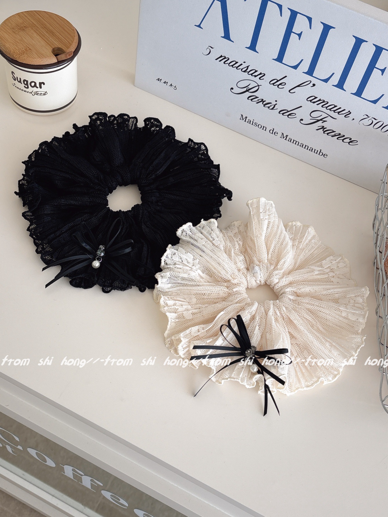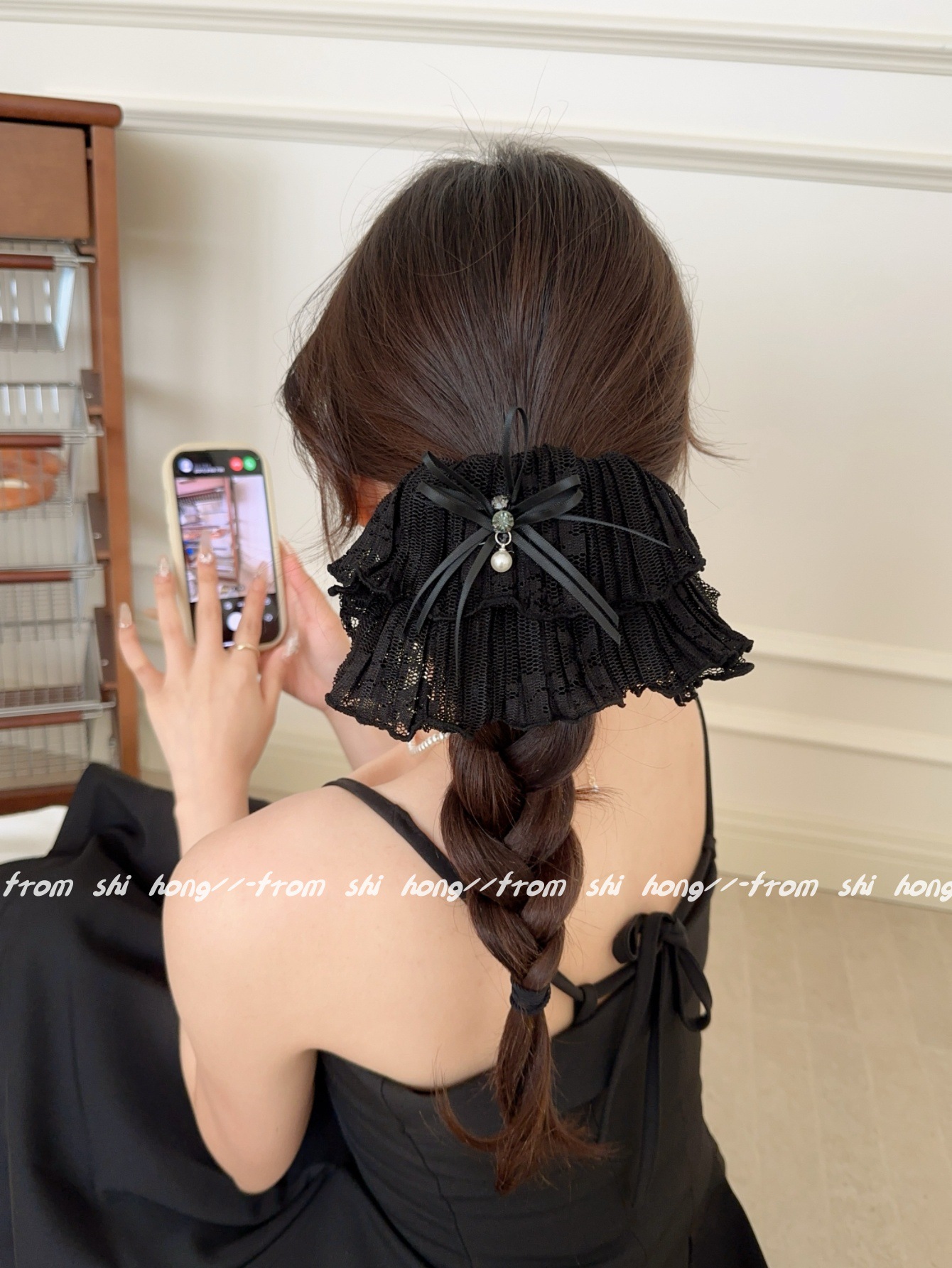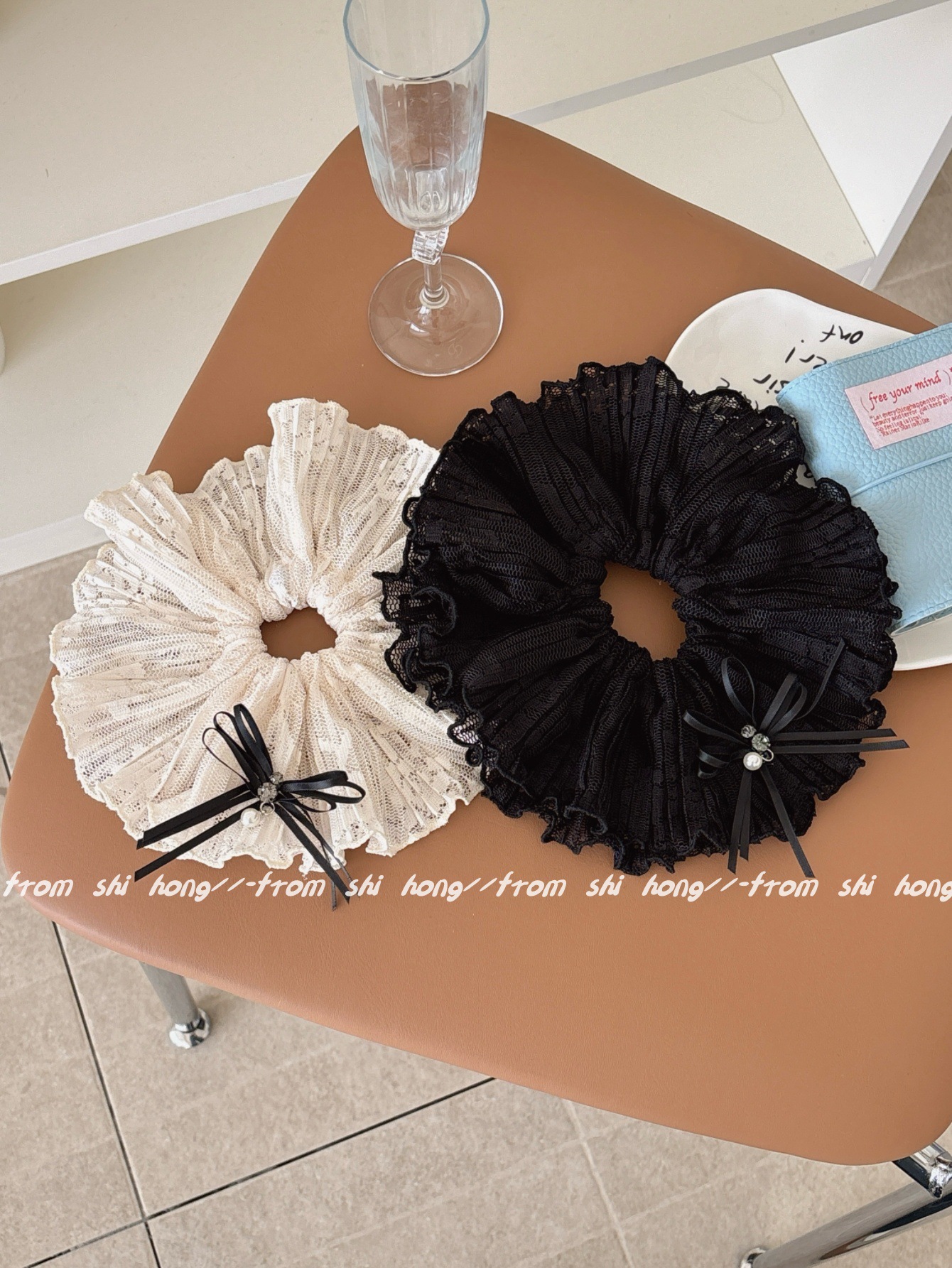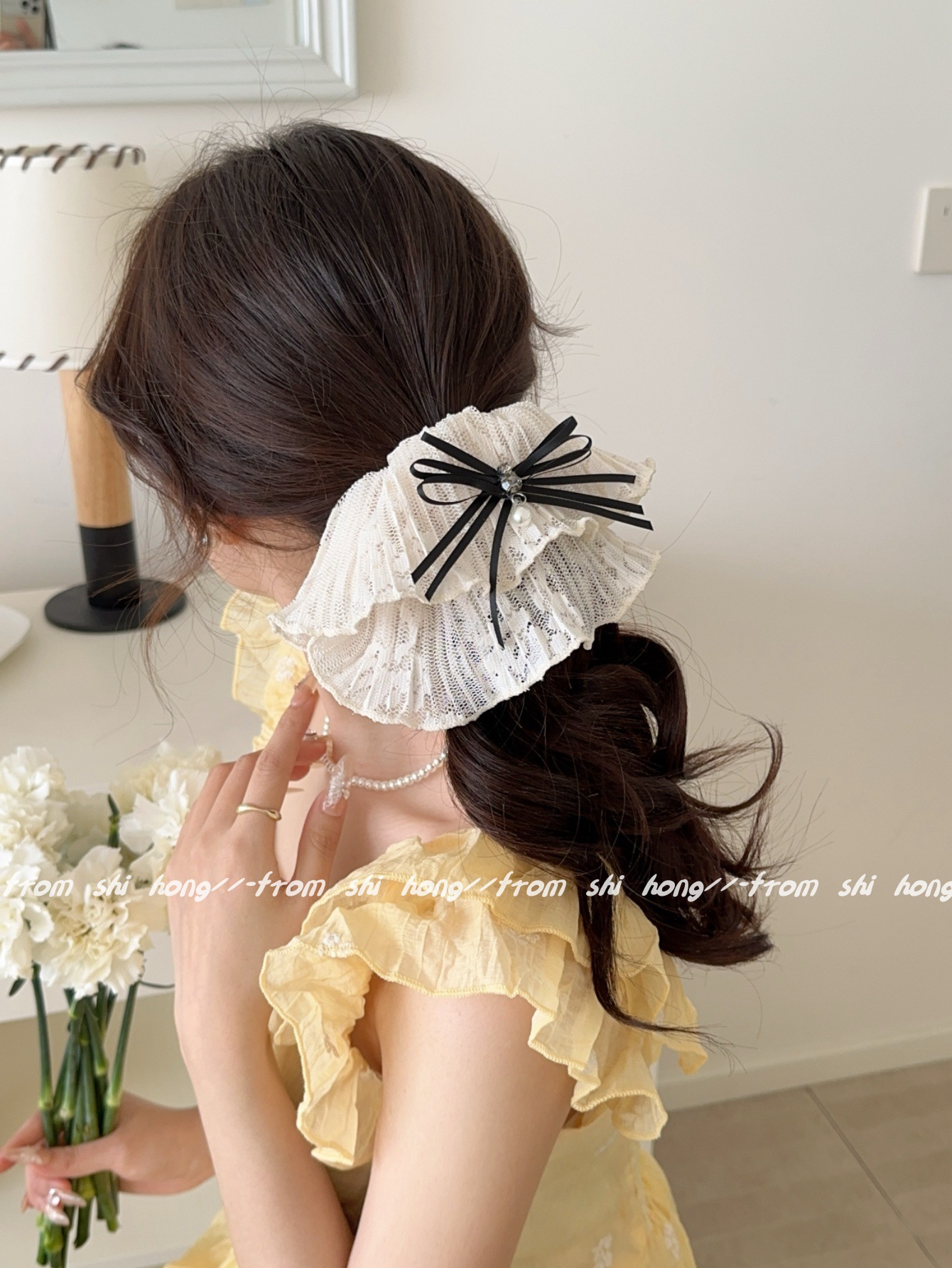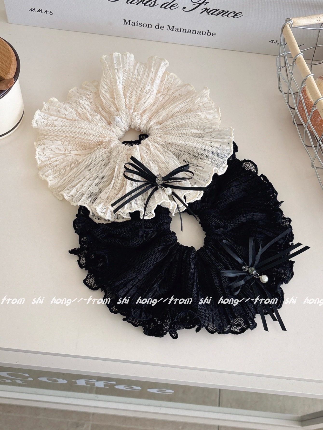 • 블랙 레이스 나비 머리끈