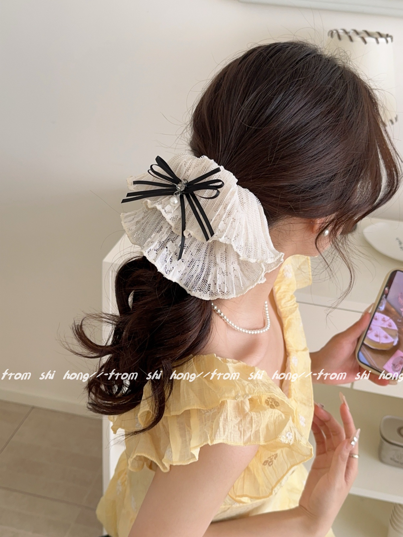 기질 슈퍼 대형 공주 가을 레이스 대형 장내 헤어 링 여성 하이 엔드 센스 여름 넥타이 헤어 헤드 라인 낮은 포니 테일 헤어 로프스토어 가기