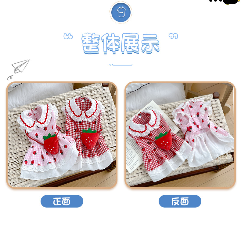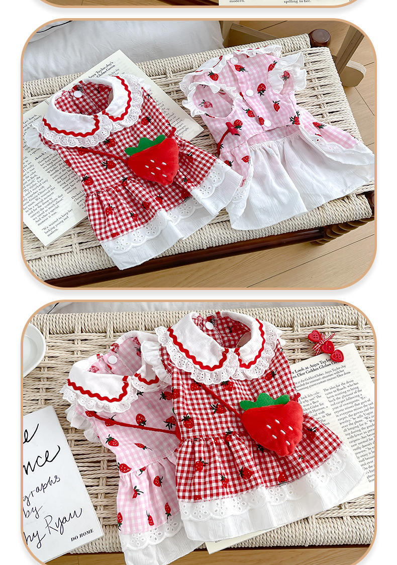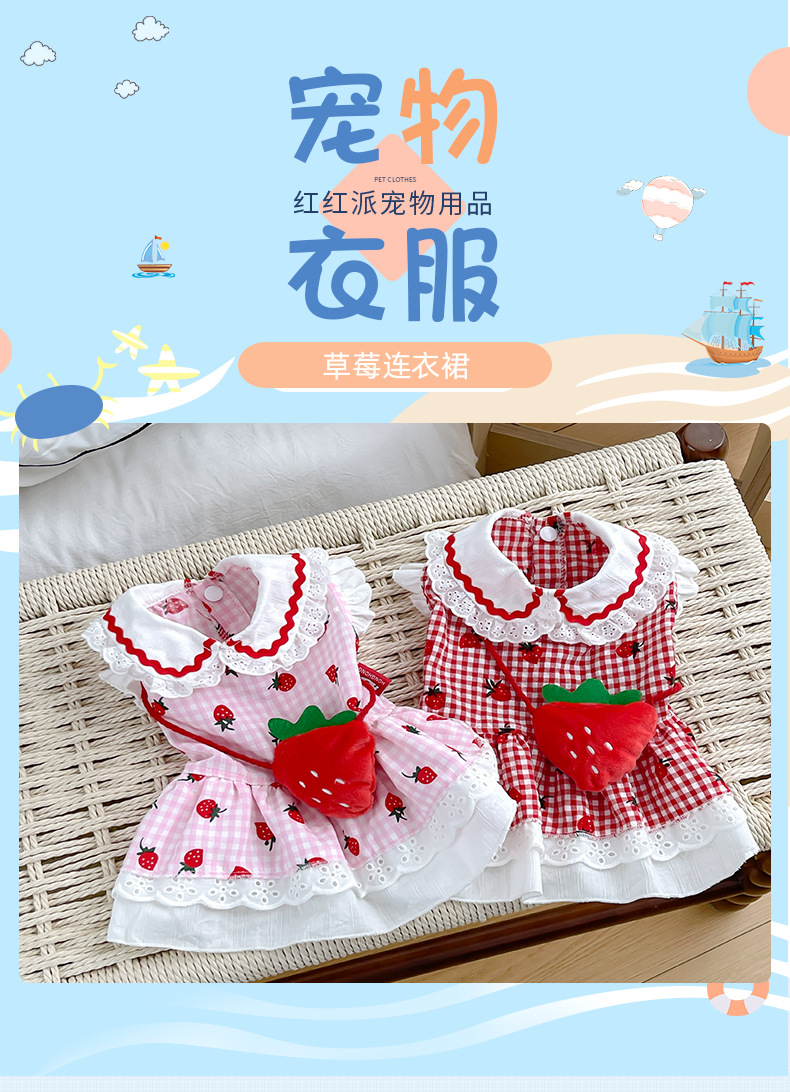 국경 간 ins 스타일 봄과 여름 새로운 딸기 드레스 귀여운 만화 개 작은 개 애완 동물 옷 도매