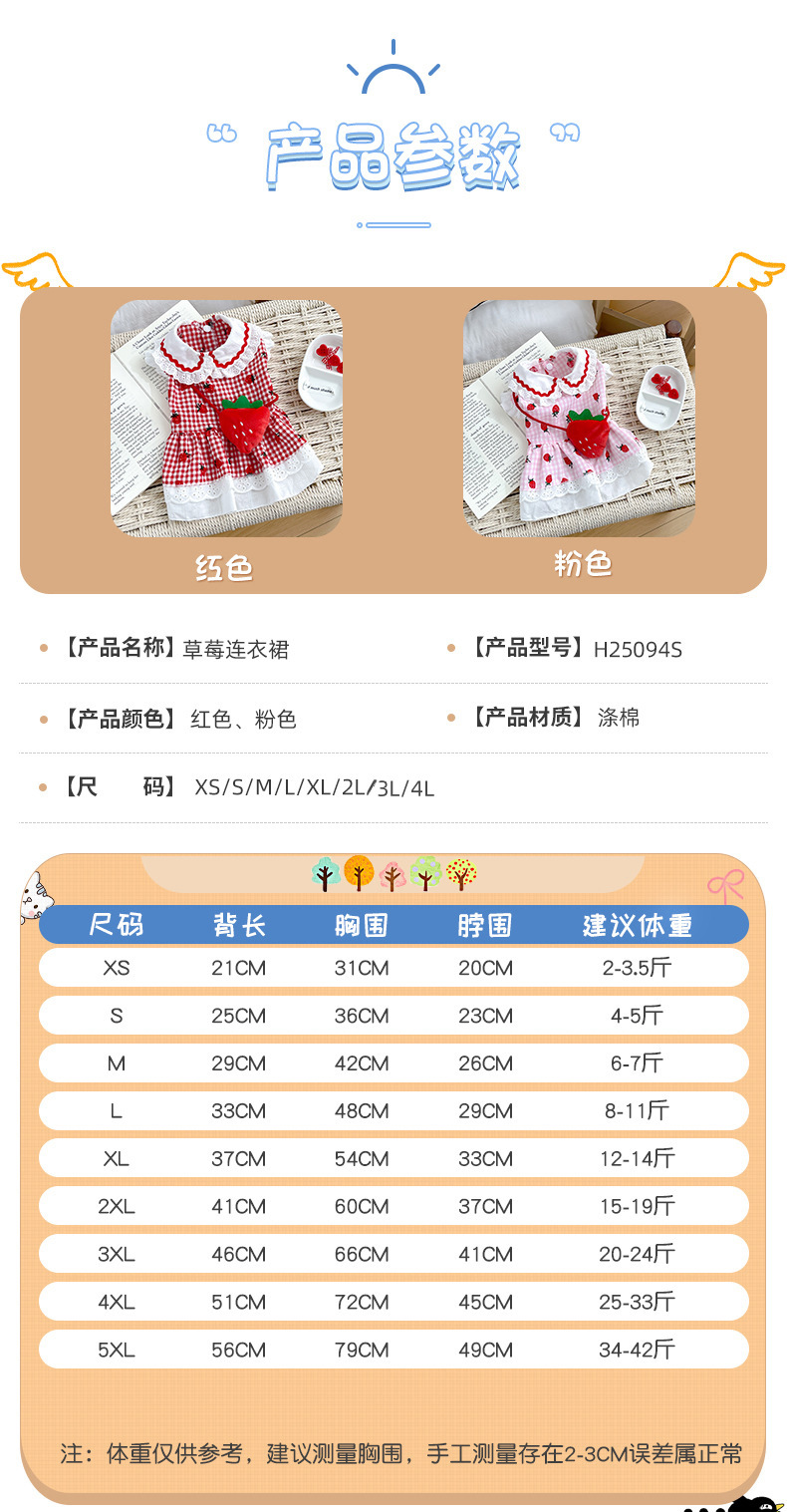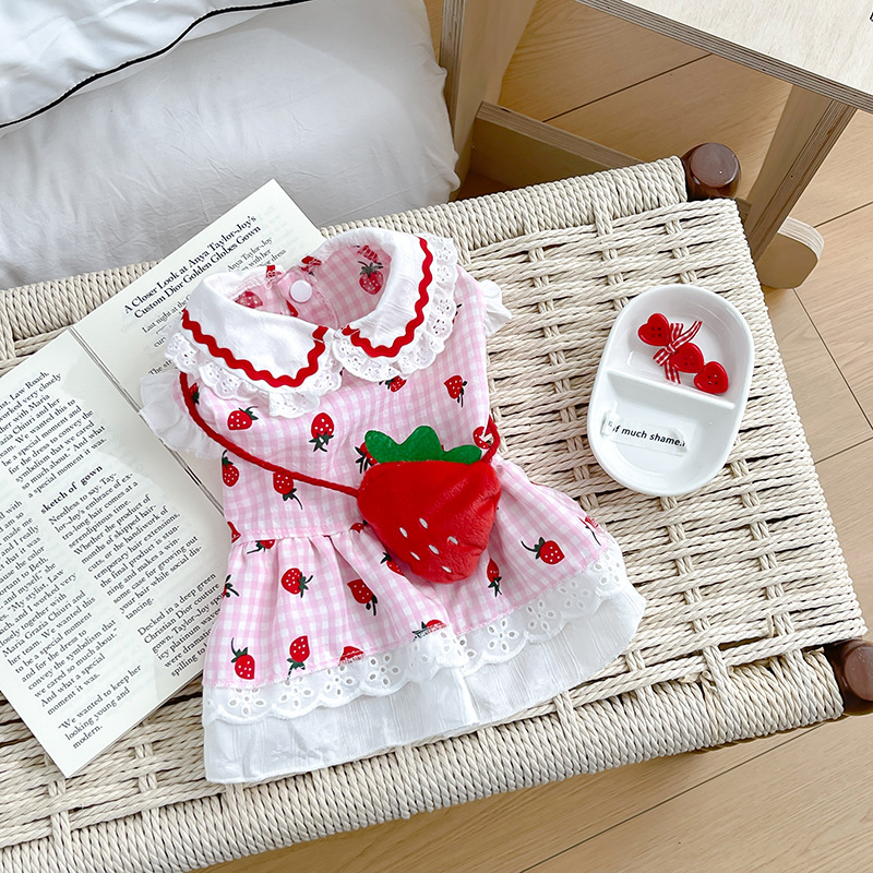 국경 간 ins 스타일 봄과 여름 새로운 딸기 드레스 귀여운 만화 개 작은 개 애완 동물 옷 도매스토어 가기